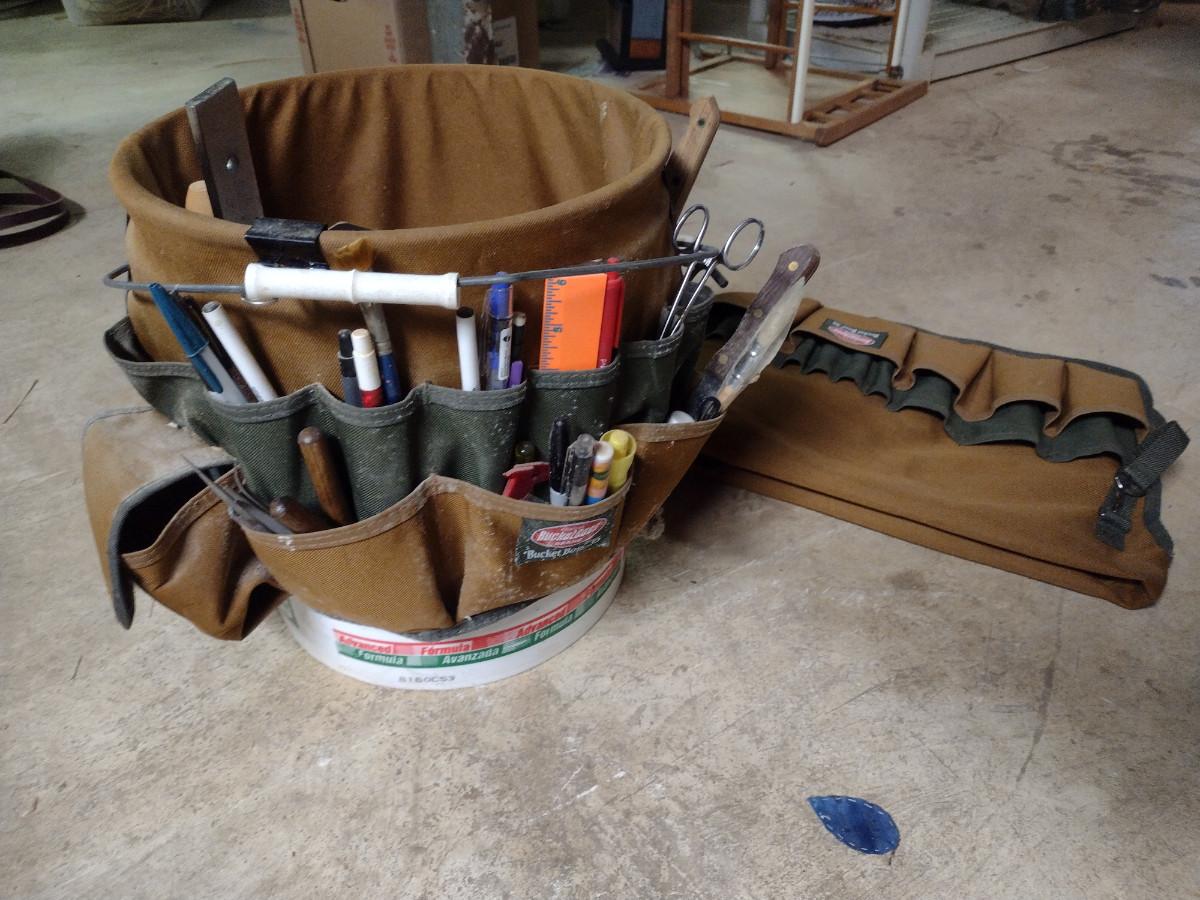 Two Bucket Tool Organizers with Contents