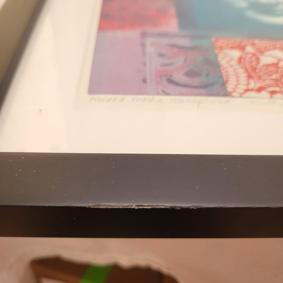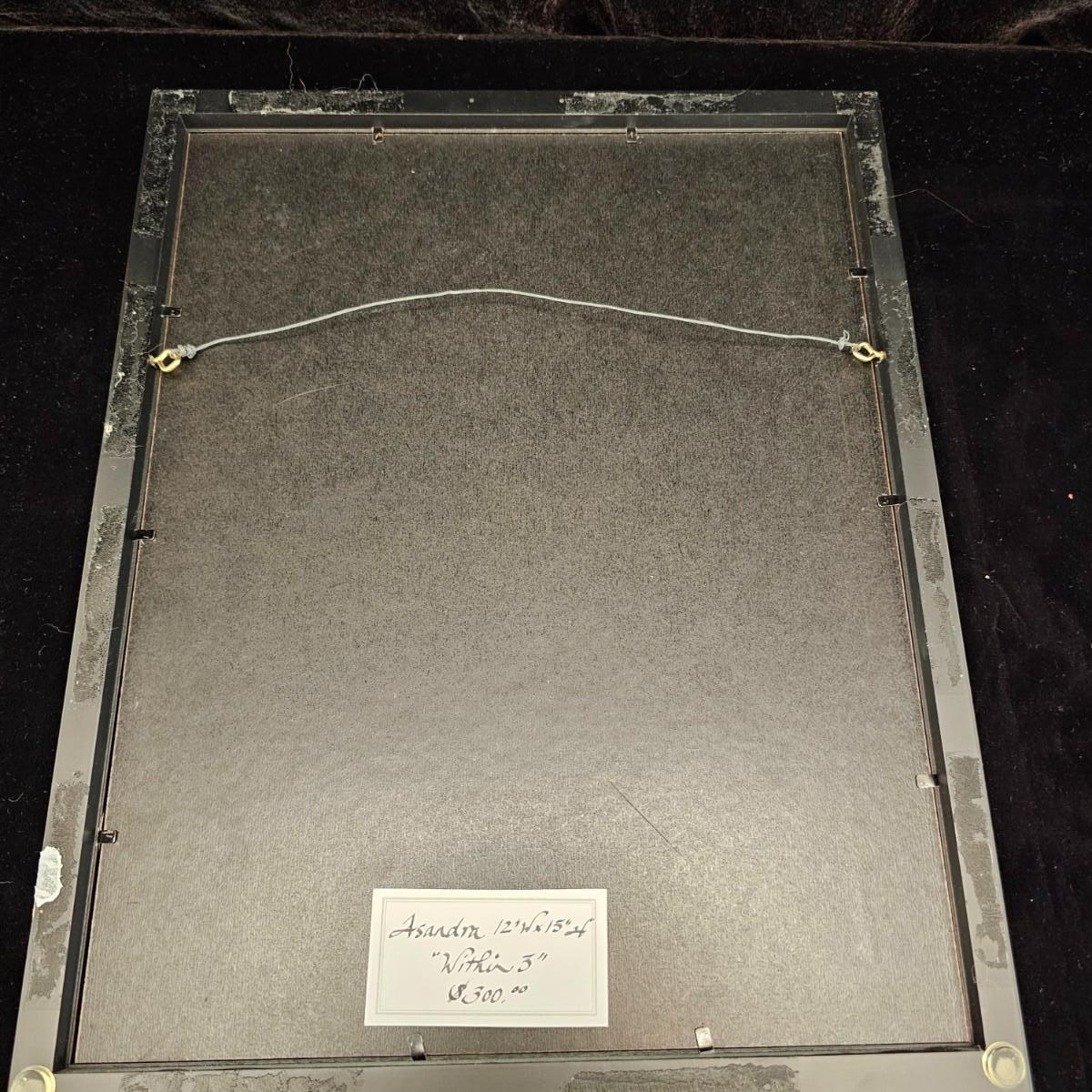 Two framed and signed prints by Asandra, larger one is written as “Within 3”, smaller one is written as “East/West 7.” Slight scuffing on larger frame (see photo). Larger frame measures approximately 12.5” x 15.5.” Shipping available. Shipping art can be costly. We suggest contacting our preferred local shipping provider, Postage Express, with dimensions and getting an estimate before bidding: (828) 670-5501 or postageexpress@yahoo.com.