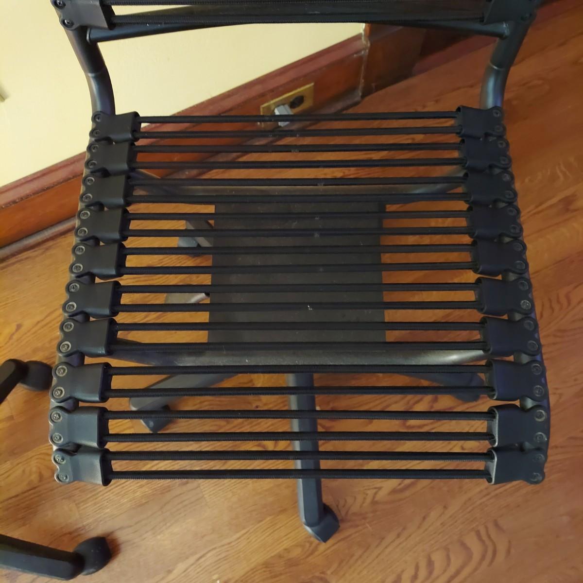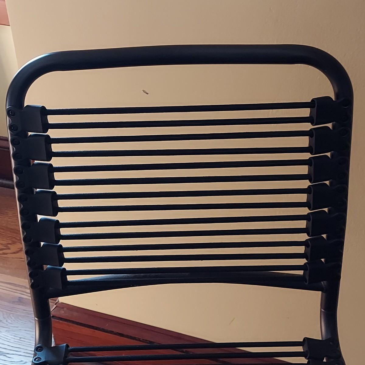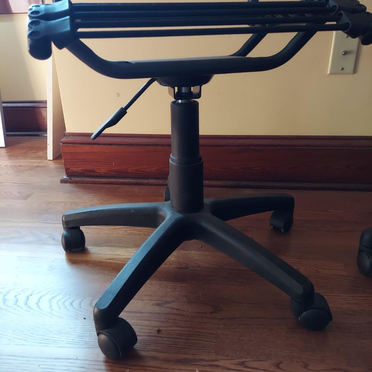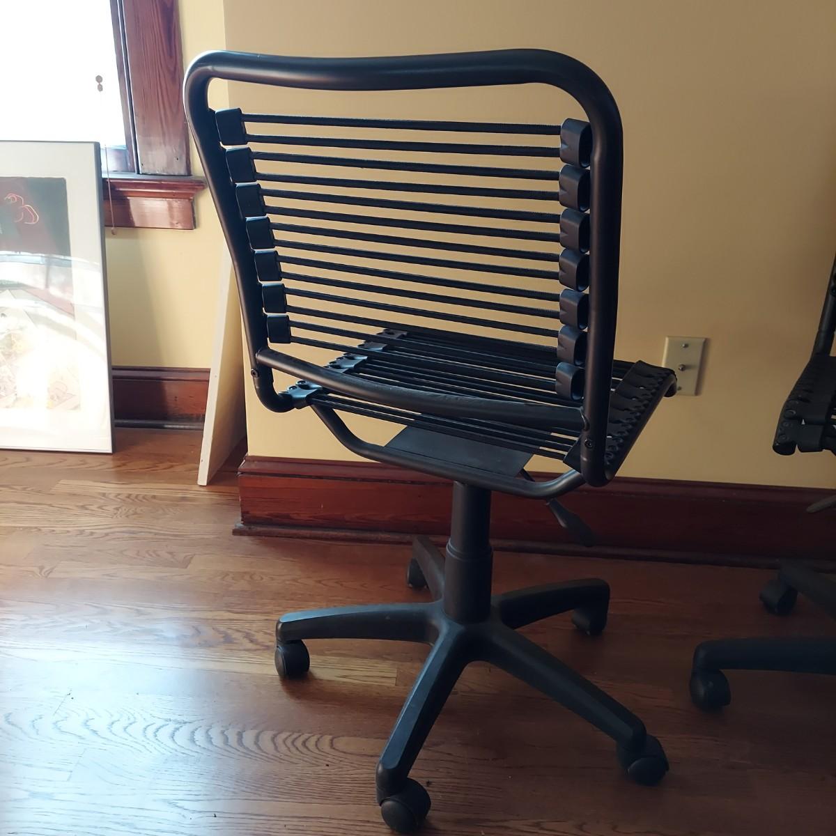 Two black rolling office chairs with stretch support. Label shows that they are Euro Style Inc. brand. Each chair is adjustable and measures 18” x 24” x 36"H with a 21"H seat height at its highest and a 16”H seat height at its lowest. Please see photos for details. Local Pickup Only