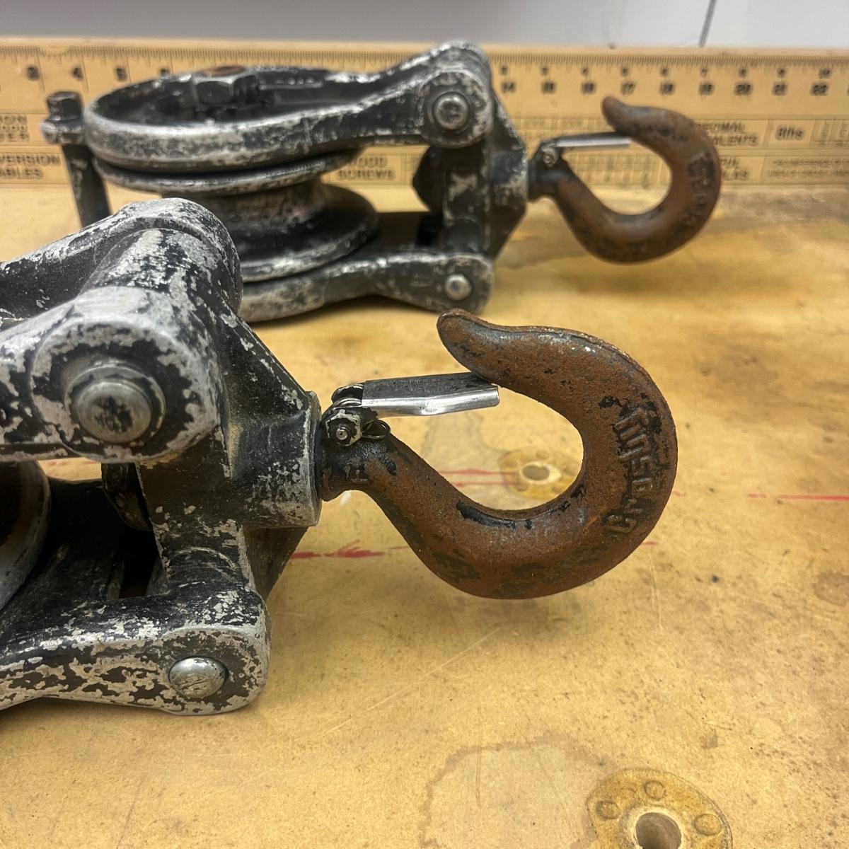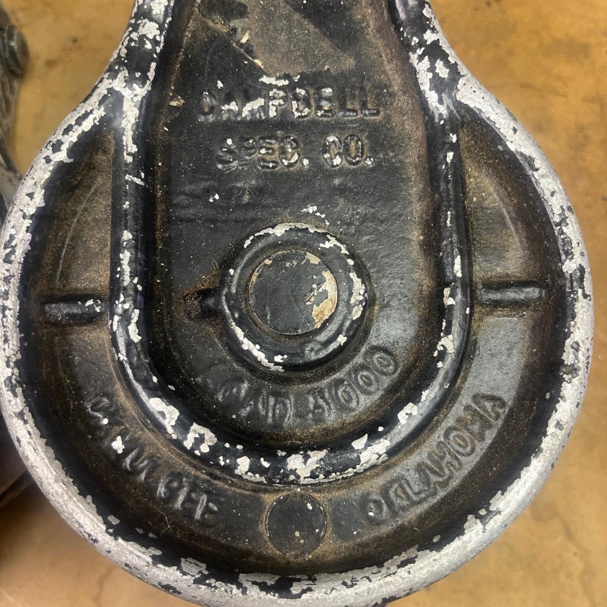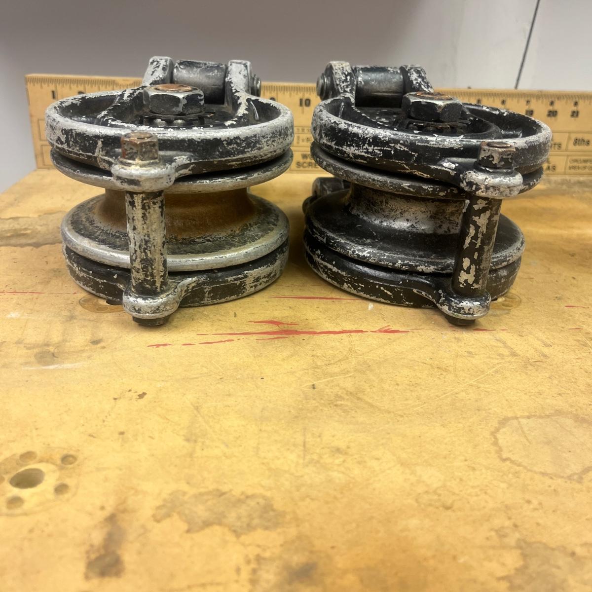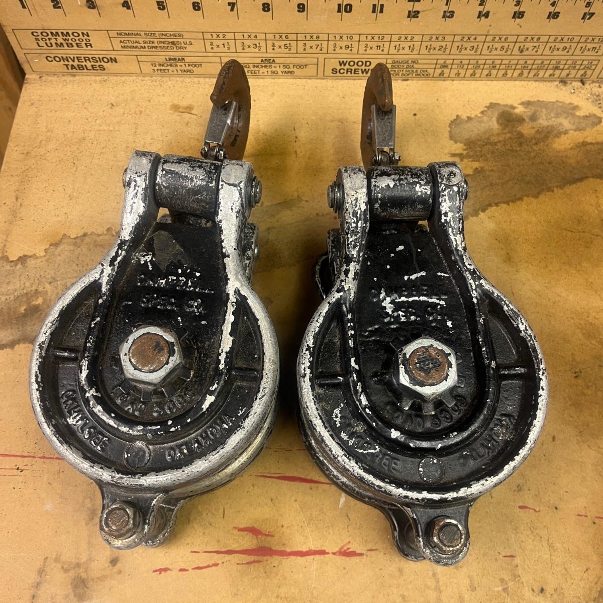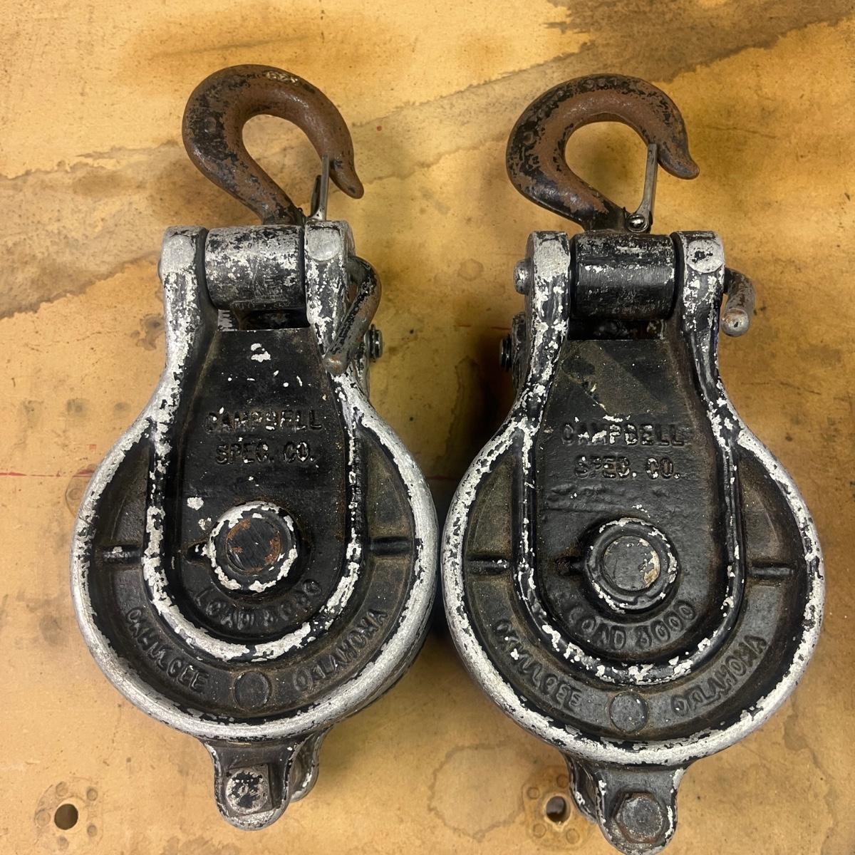 Lot includes two Campbell aluminum pulleys that each measure 5” x 12” x 4.5”H.