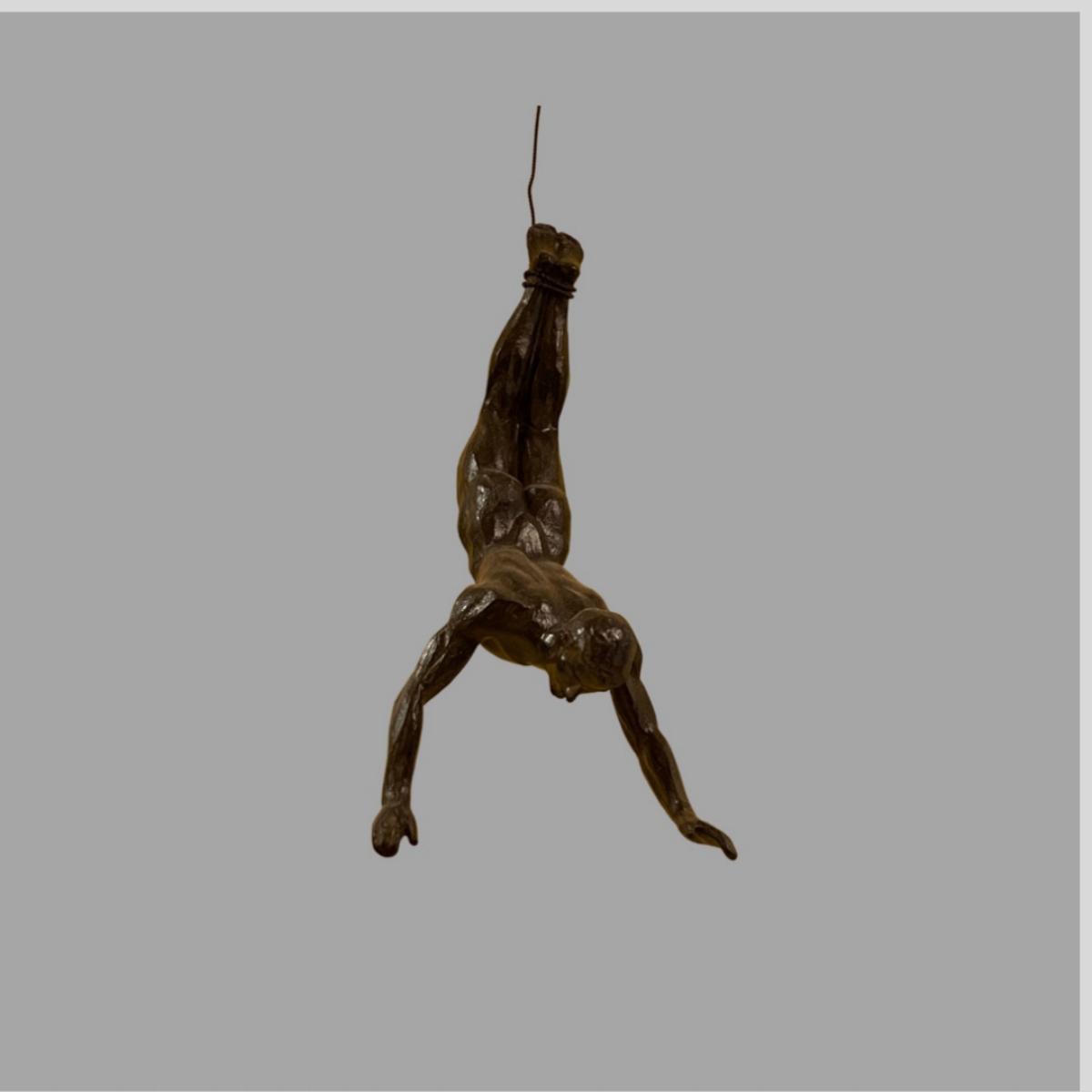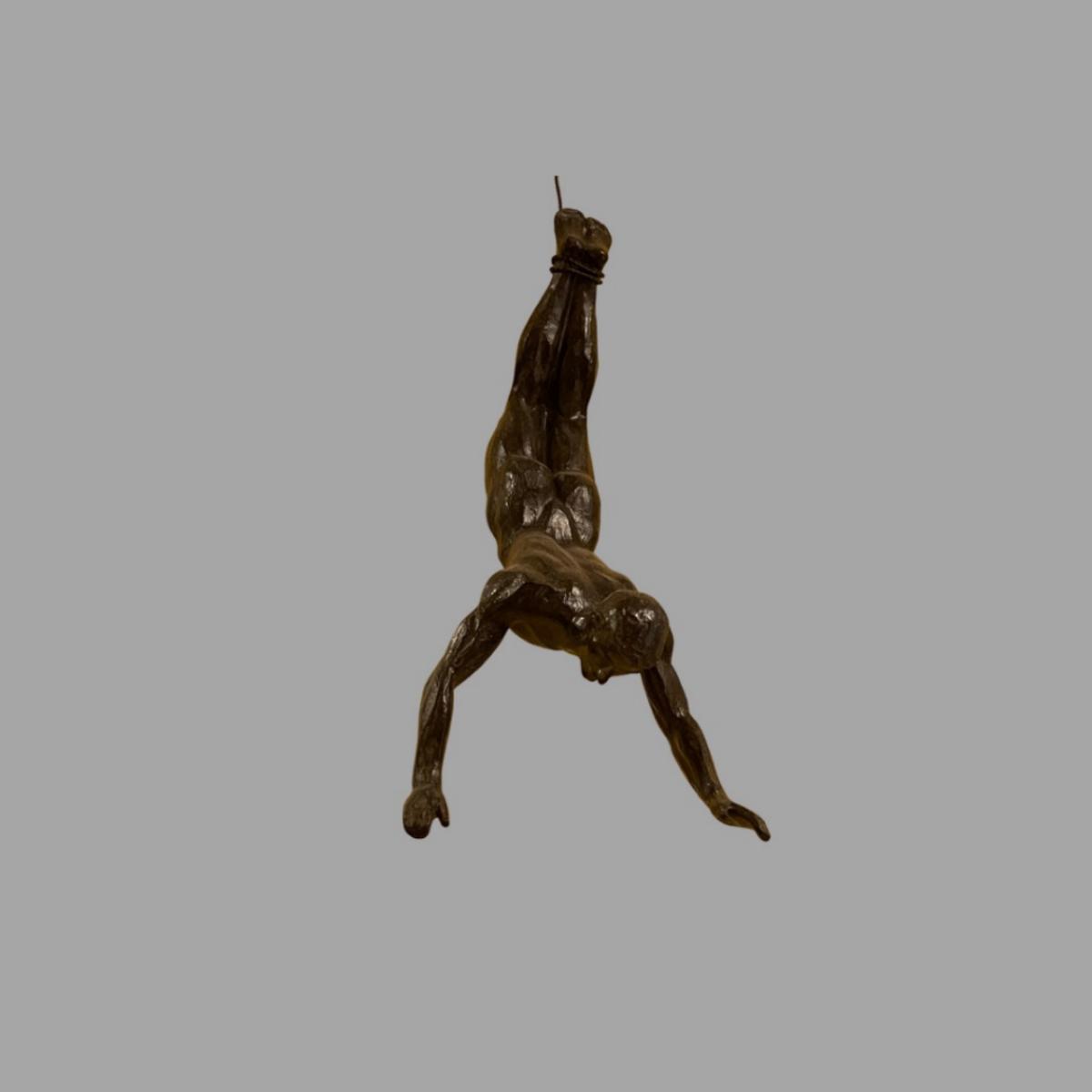 Two Cappetelli Sculptures - Two Bronze Bungee Jumping Men Hanging from a Wire - 13"
