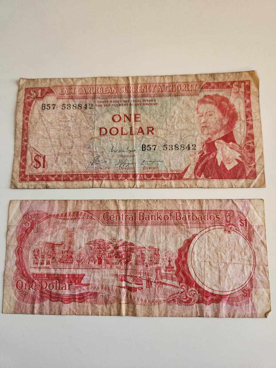 This lot is for Two Caribbean Currency Notes. One note is for the East Caribbean Currency Authority with the likeness of Queen Elizabeth of England, the other is for the Central Bank of Barbados with the likeness of Samuel Jackman Prescod. Both notes have been well tendered but are ready for collection or display at this point. This item is KY sales tax-exempt.