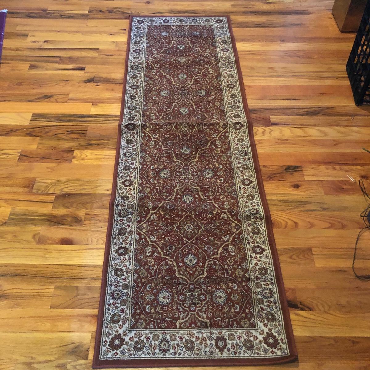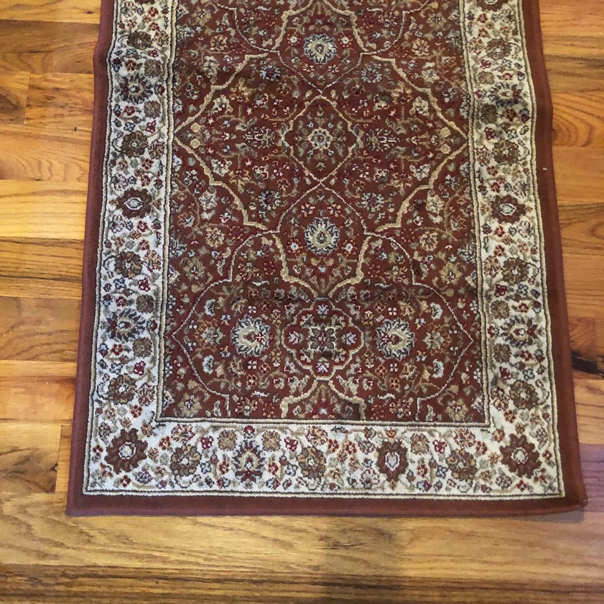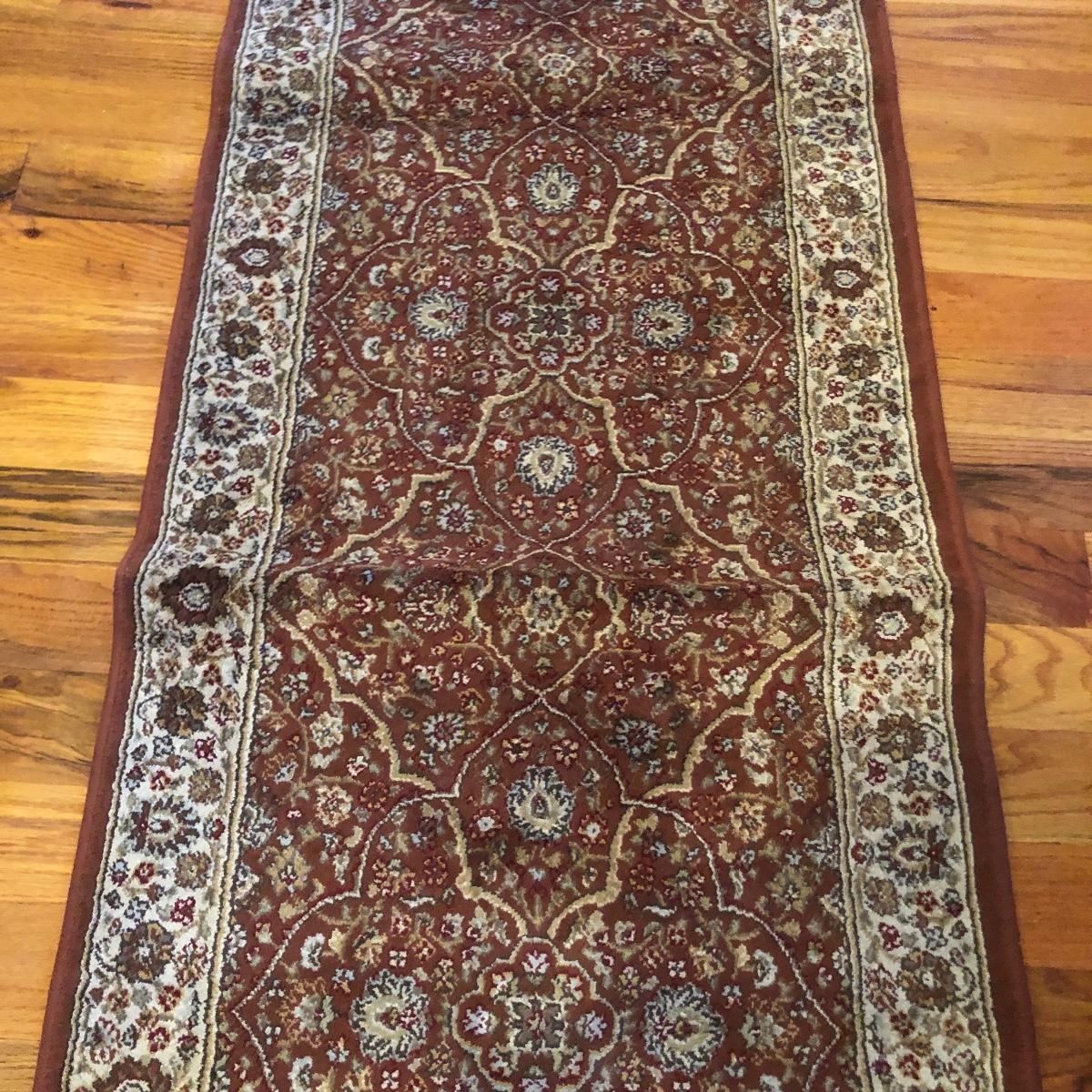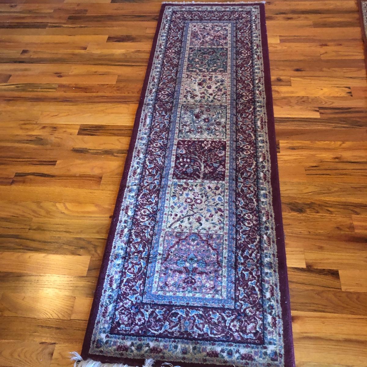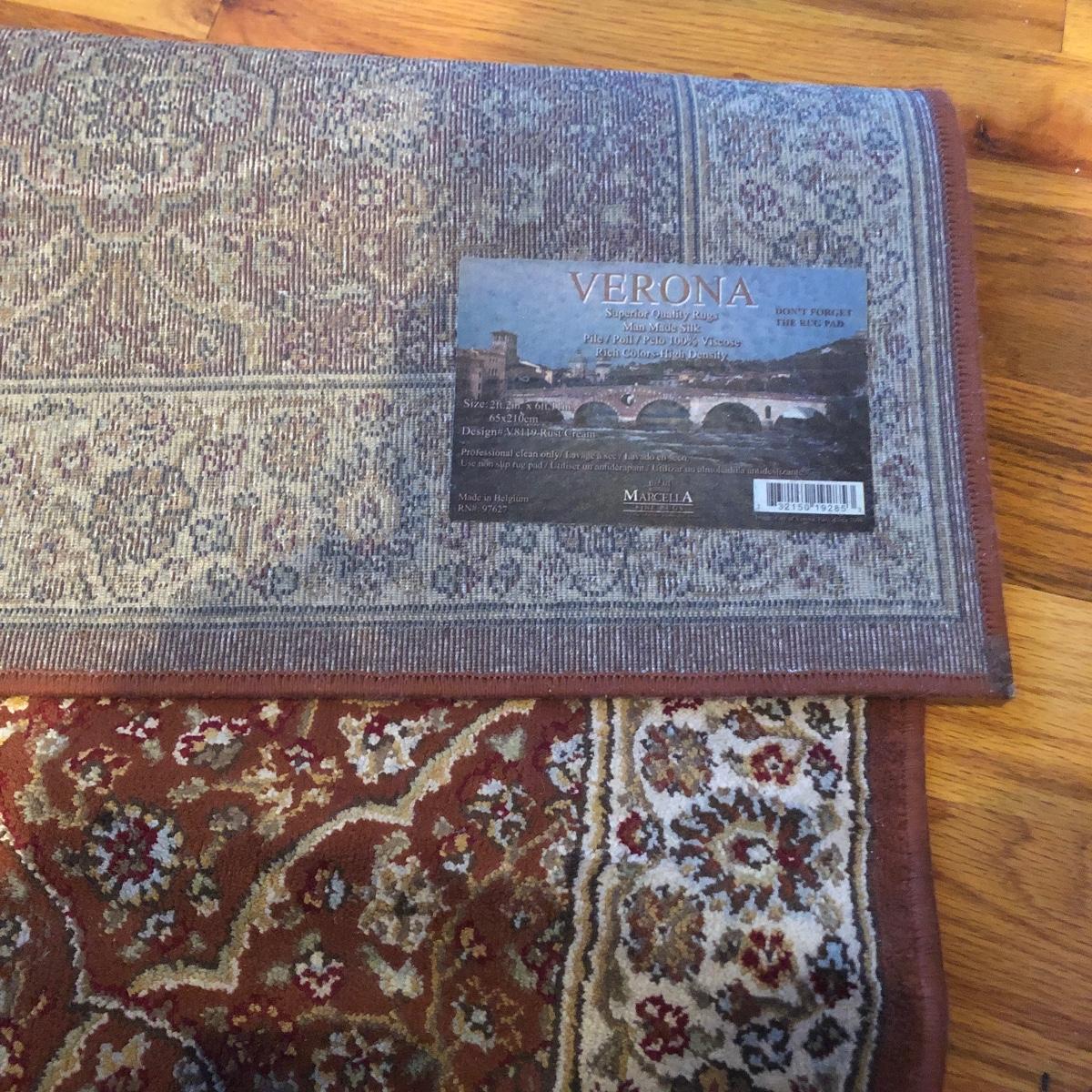 Lot includes a Verona carpet runner made in Belgium of man made silk and a Patrician carpet runner that is 100% polypropylene and made in the USA.