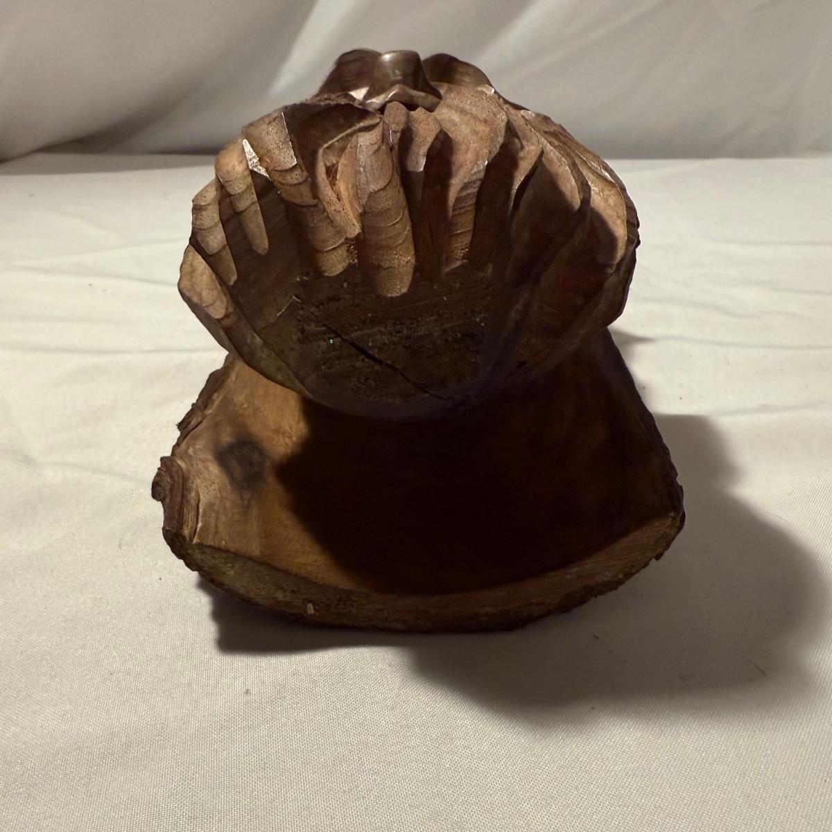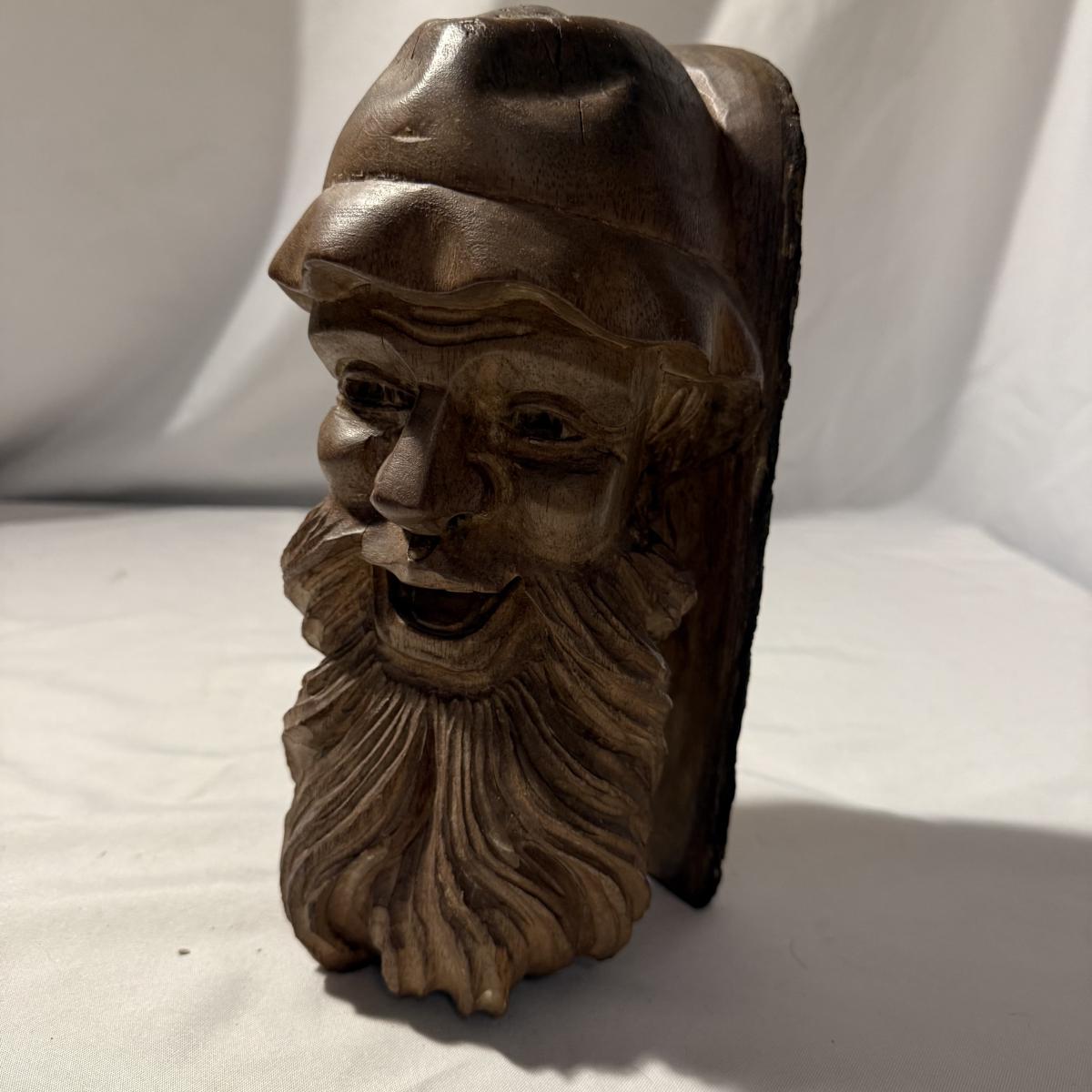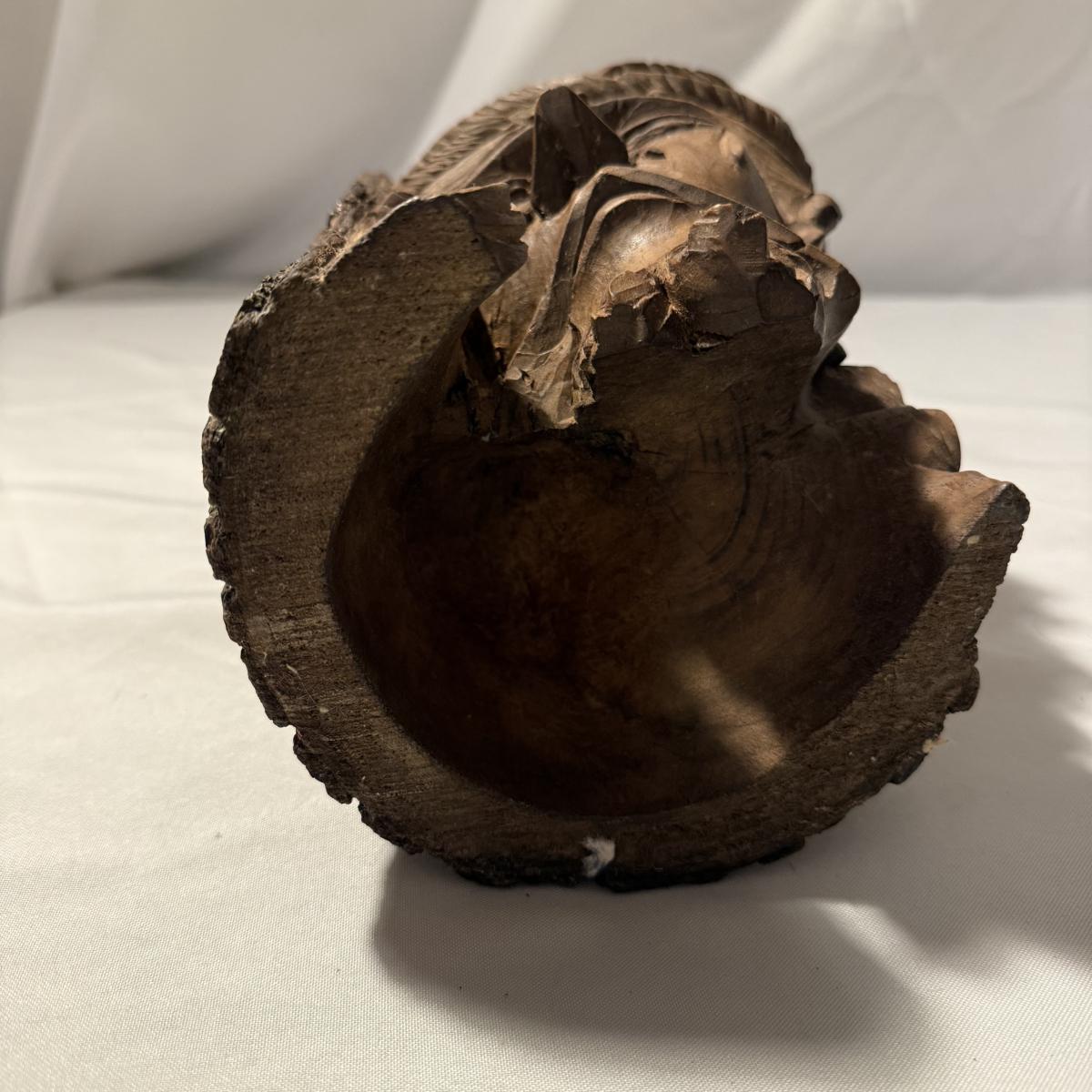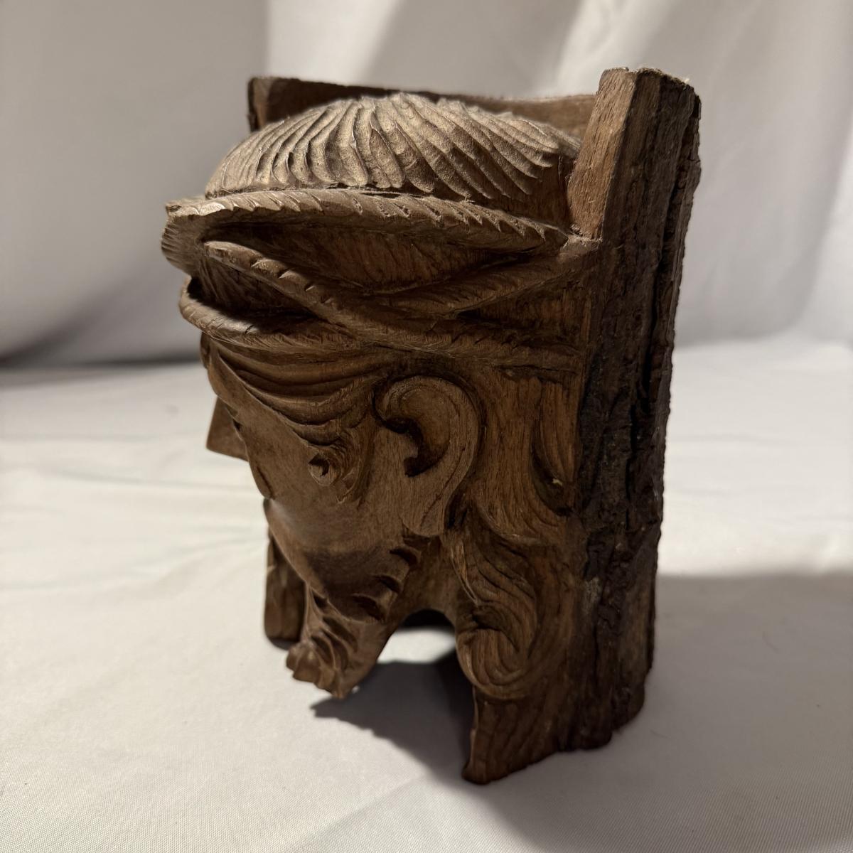 This lot contains what appears to be an emotional depiction of Jesus carved into wood as well as a happier wood face carving. The piece akin to Jesus measures 6.5” x 6.5” x 8.25”H. The taller piece measures 5” x 5” x 10”H