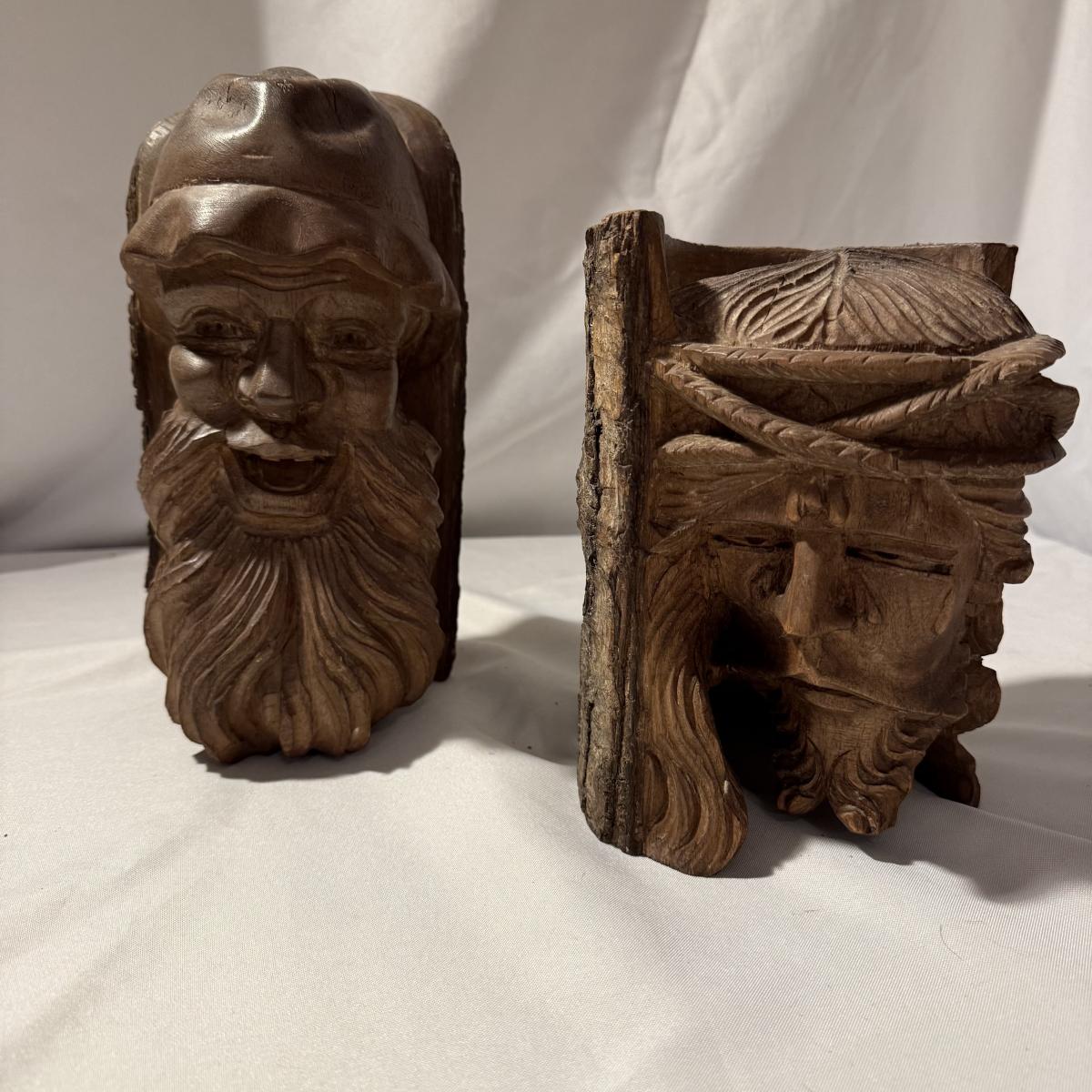 Two Carved Wooden Heads (LR-BM)