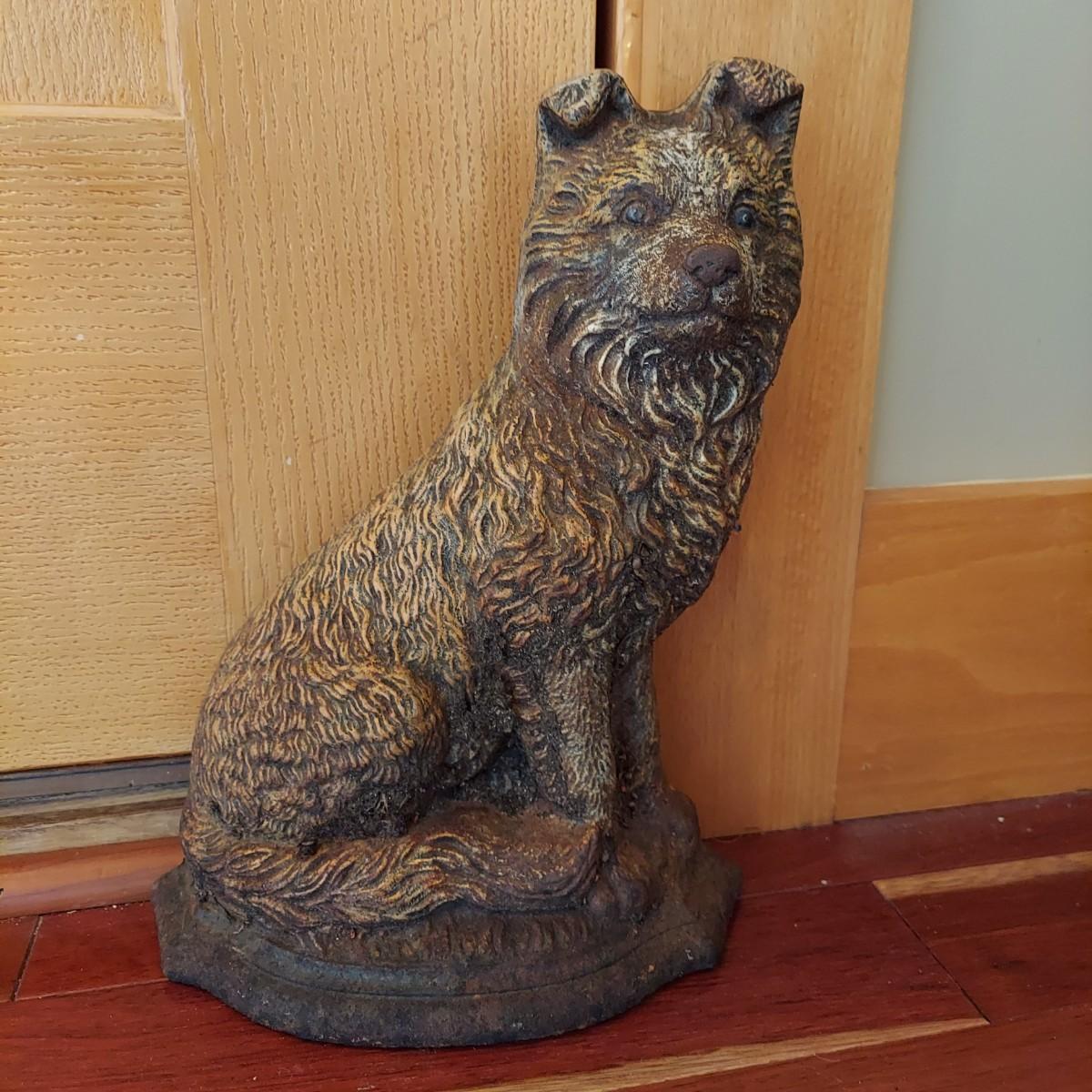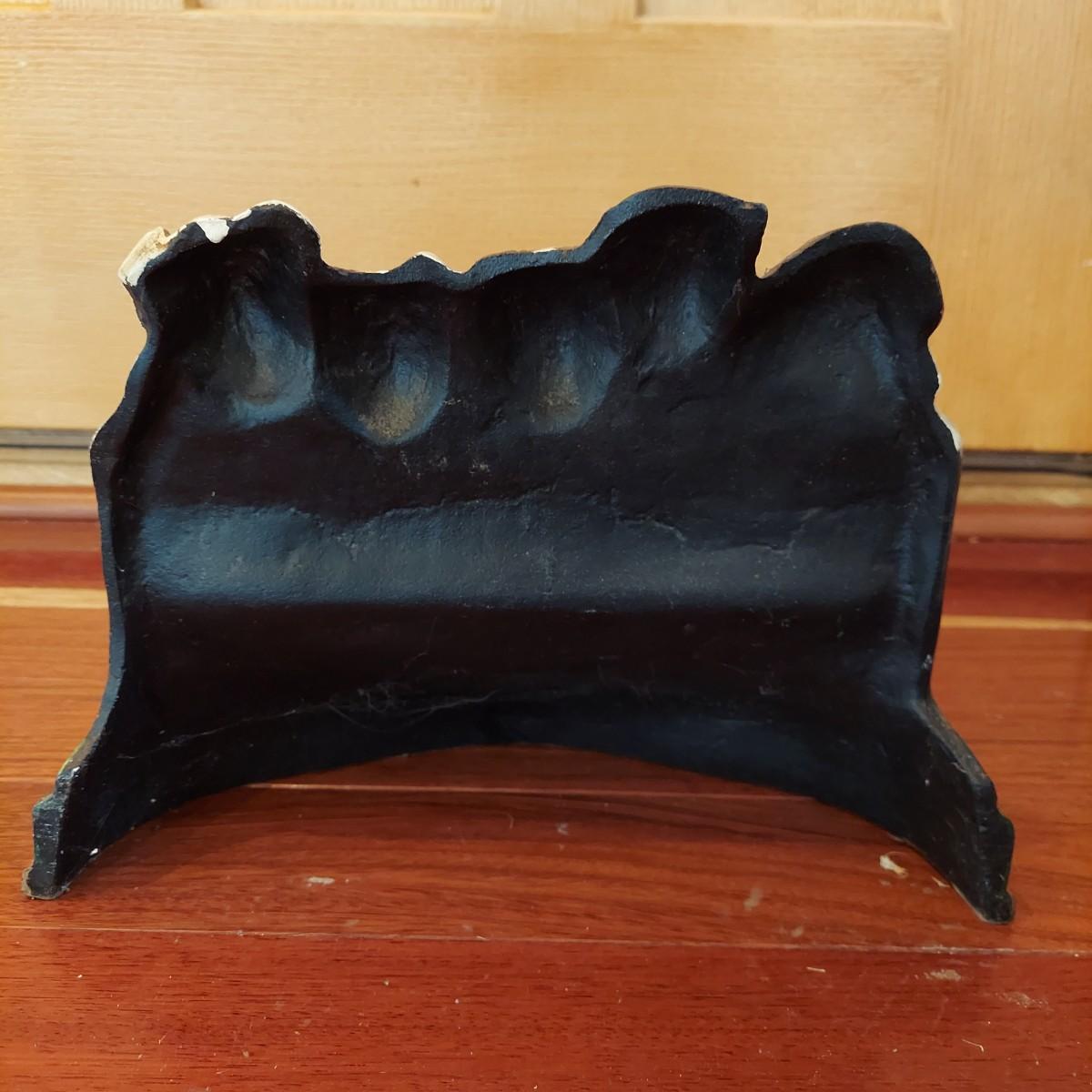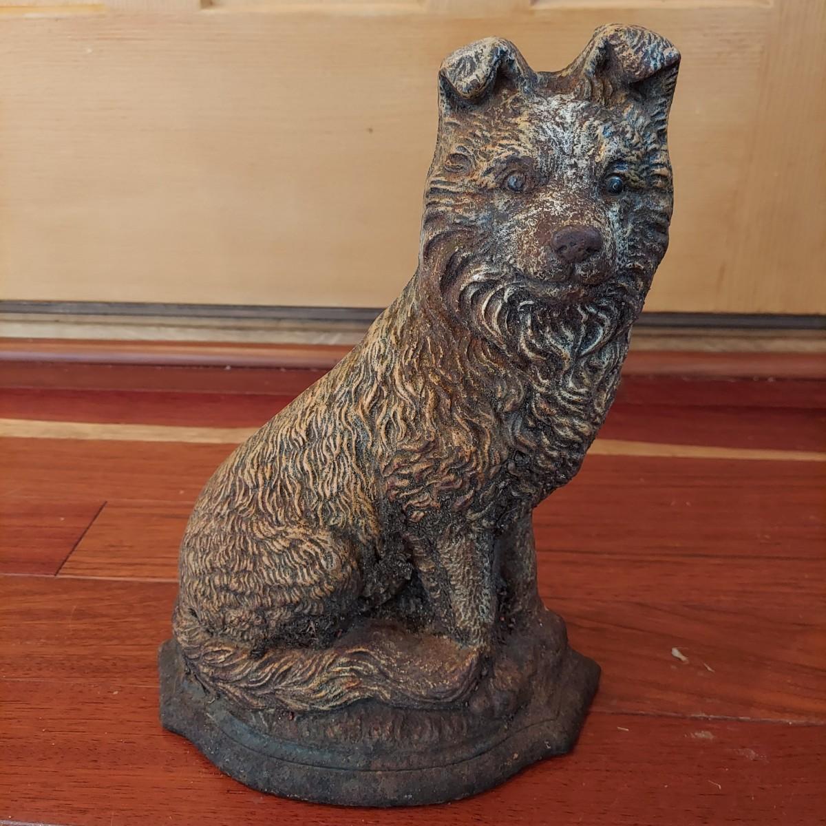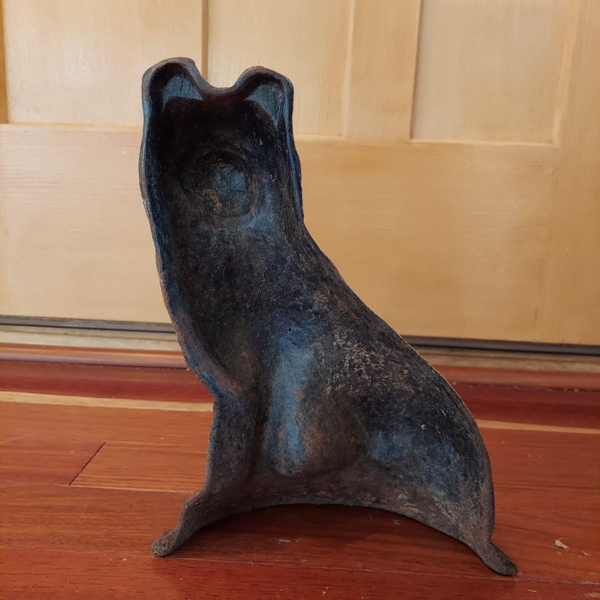 Two cast iron door stops. One is a single dog that measures approximately 9 x 3.5 x 12"H. The other is a group of puppies that is approximately 12 x 3.5 x 8"H. They need cleaned up some. Shipping available. Shipping certain items can be costly. We suggest contacting our preferred local shipping provider, Postage Express, with dimensions and getting an estimate before bidding: (828) 670-5501 or postageexpress@yahoo.com.