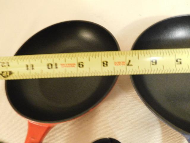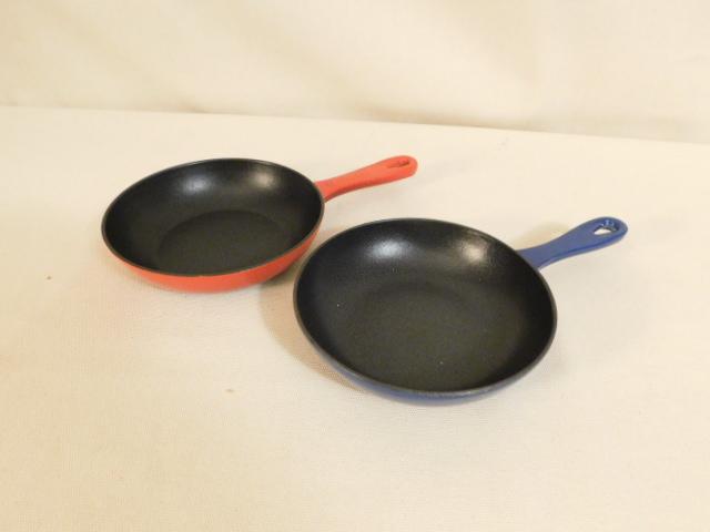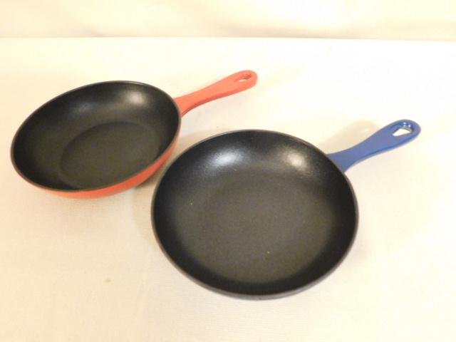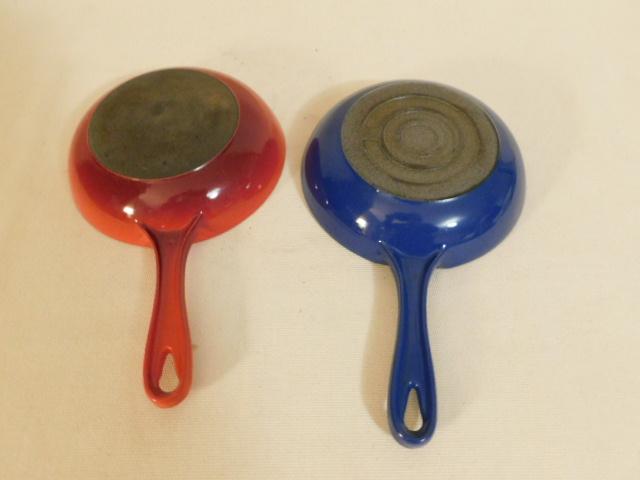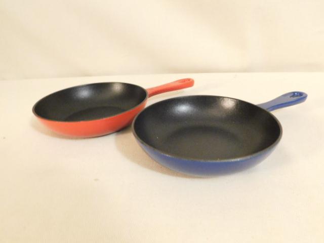 Two Cast Iron Enamel Skillets One Marked Le Creuset