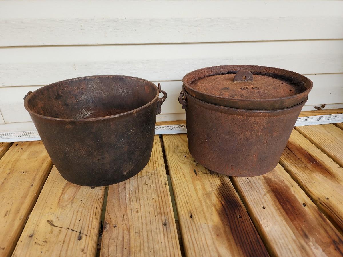 As is, please inspect photos carefully. This listing is for both pots and one lid.