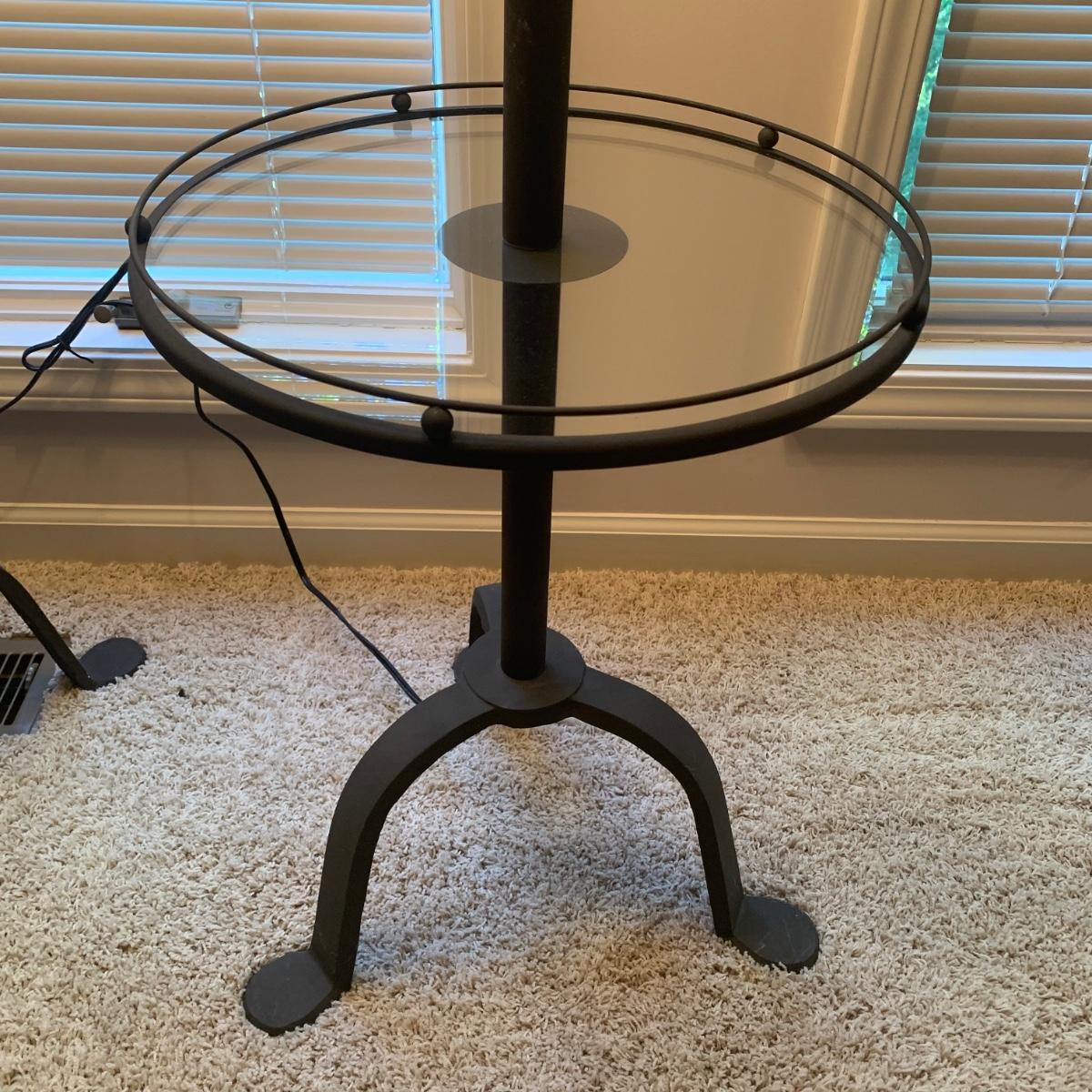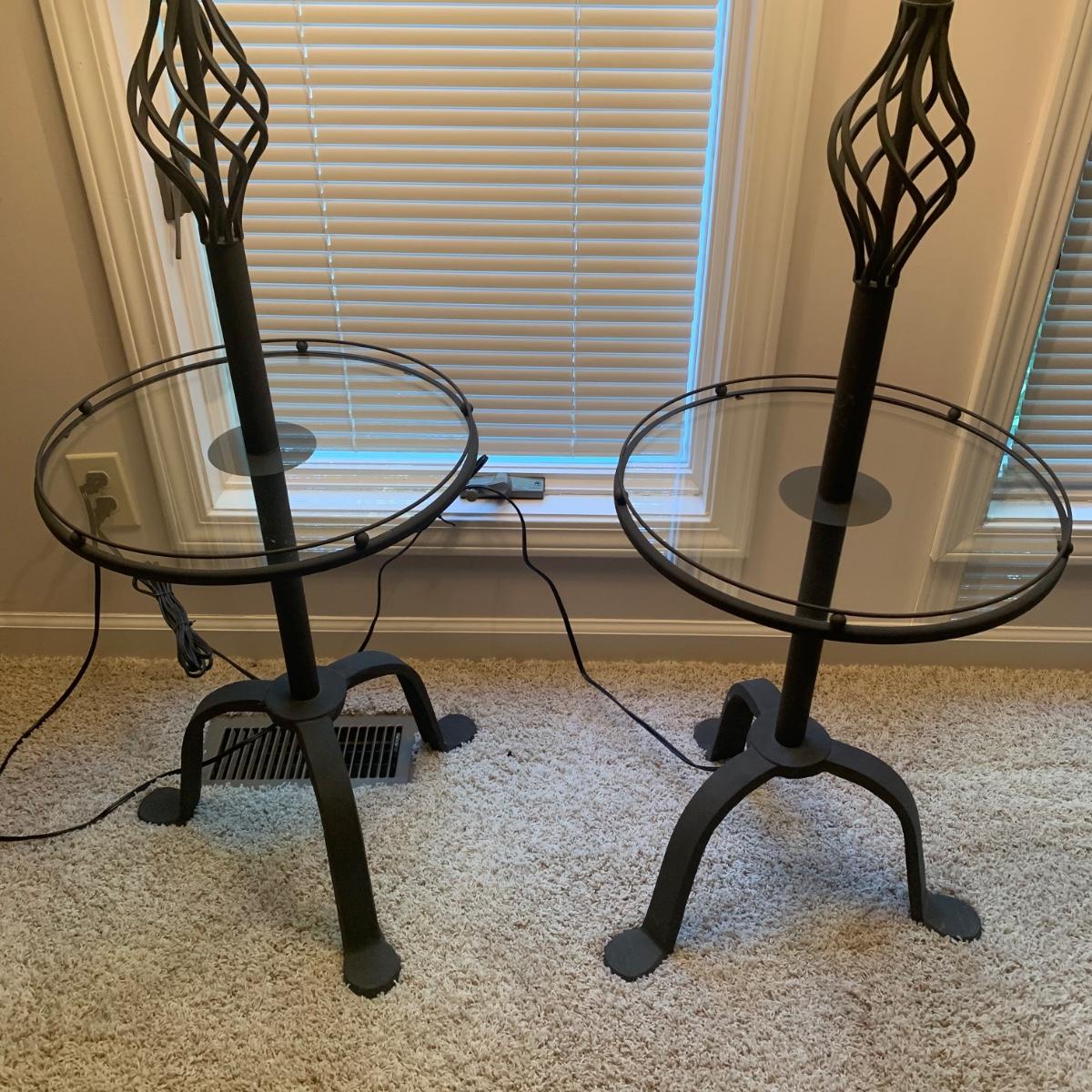 Two Cast-Iron Style Floor Lamps/Glass Tables (D2-KW)