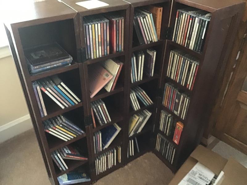 Great collection of CD’s and fold together cabinet with hinges. 29”Wx6.5”Dx34”H. Great condition.