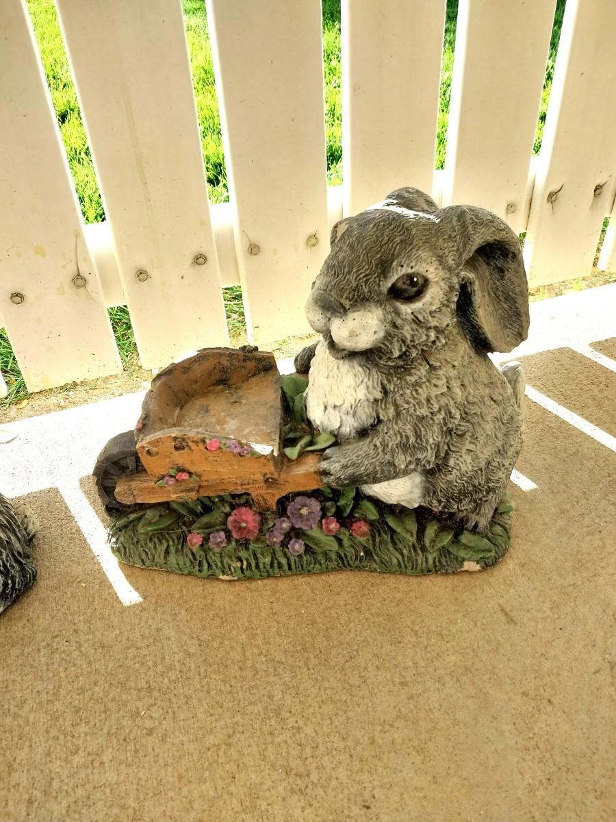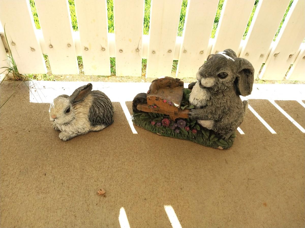 TWO CEMENT BUNNY RABBITS