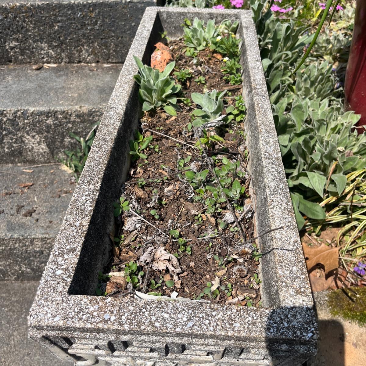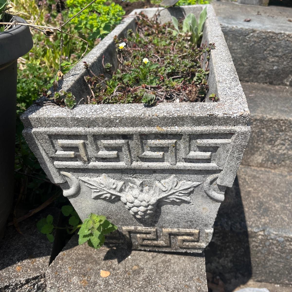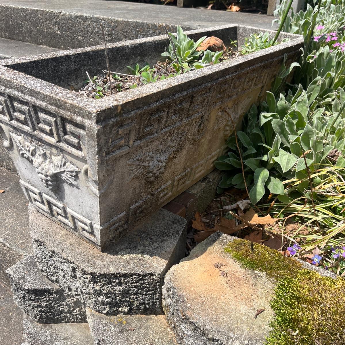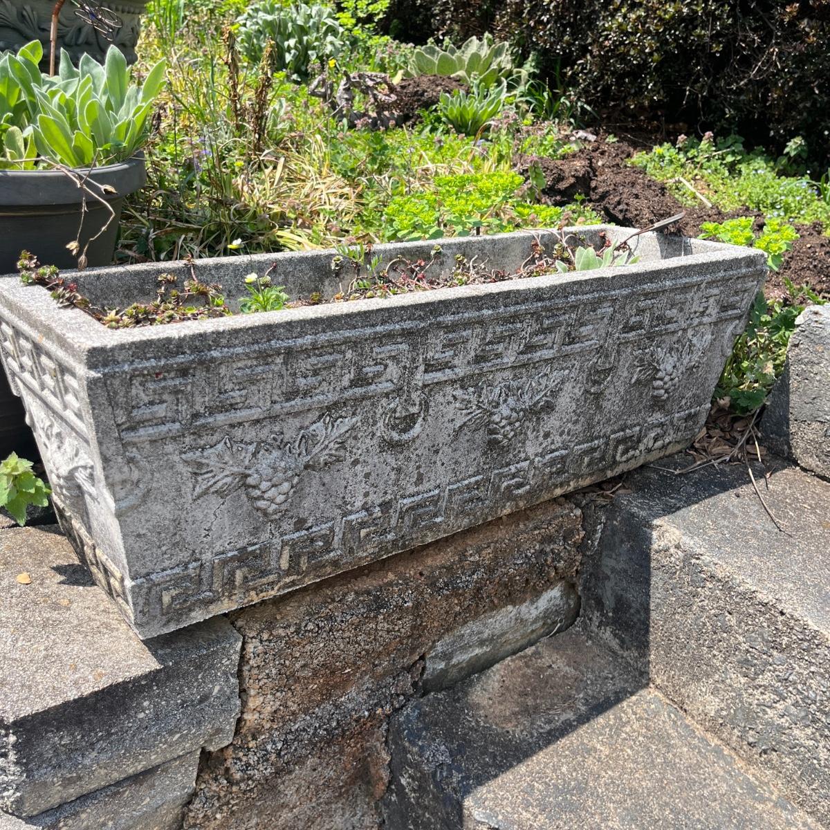 Lot includes two rectangular cement planters. Planters measure 9” x 30” x 10”H.