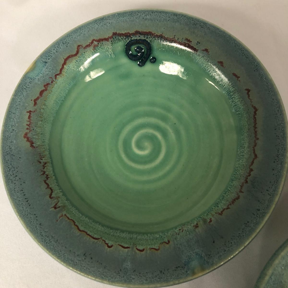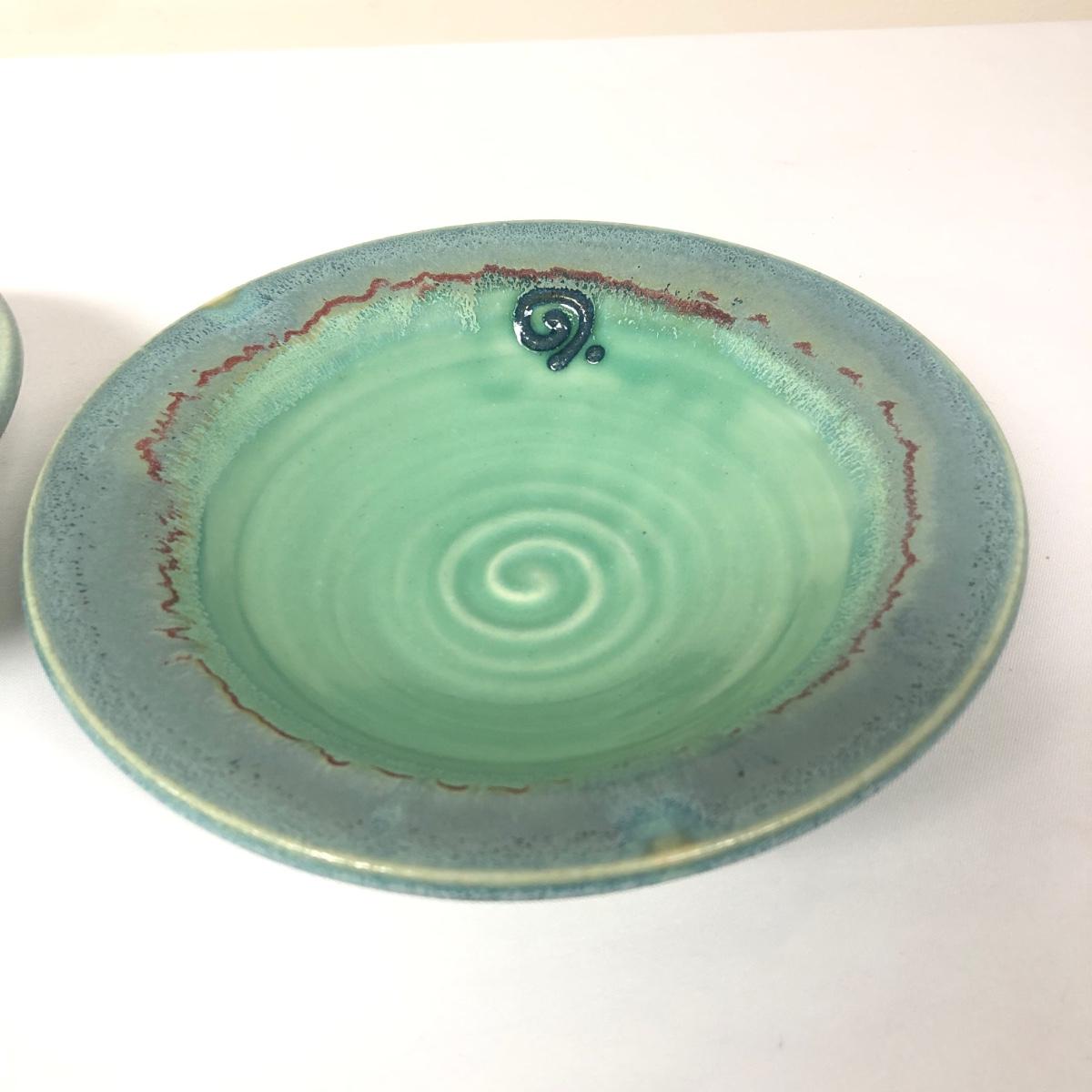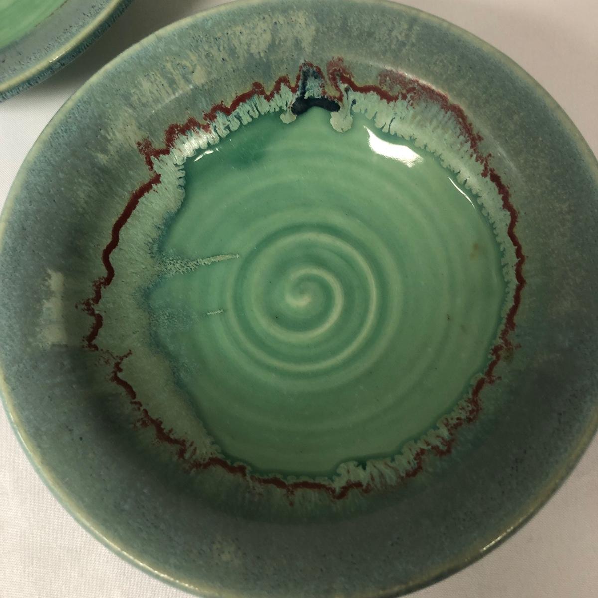 These two handcrafted ceramic bowls measure 8” and 7” in diameter. Both have a mark on the front and “Gabriel” is written on the back of both bowls. Both bowls are in excellent condition with no chips or cracks. Shipping Available.