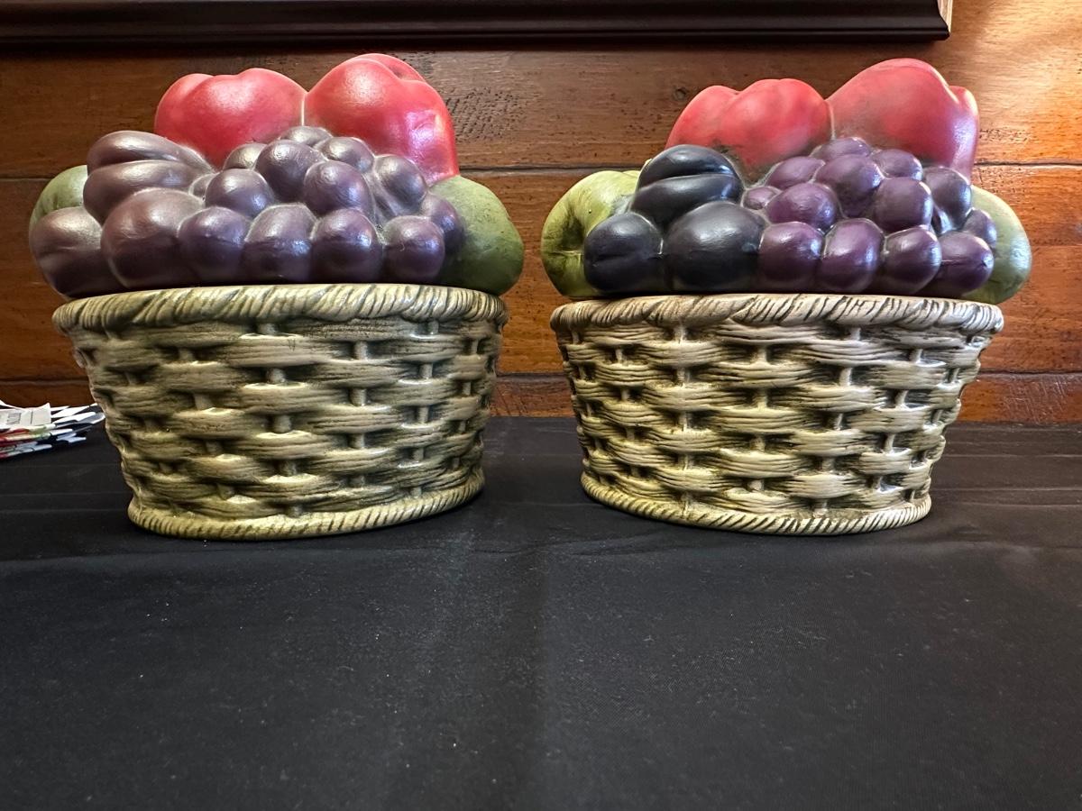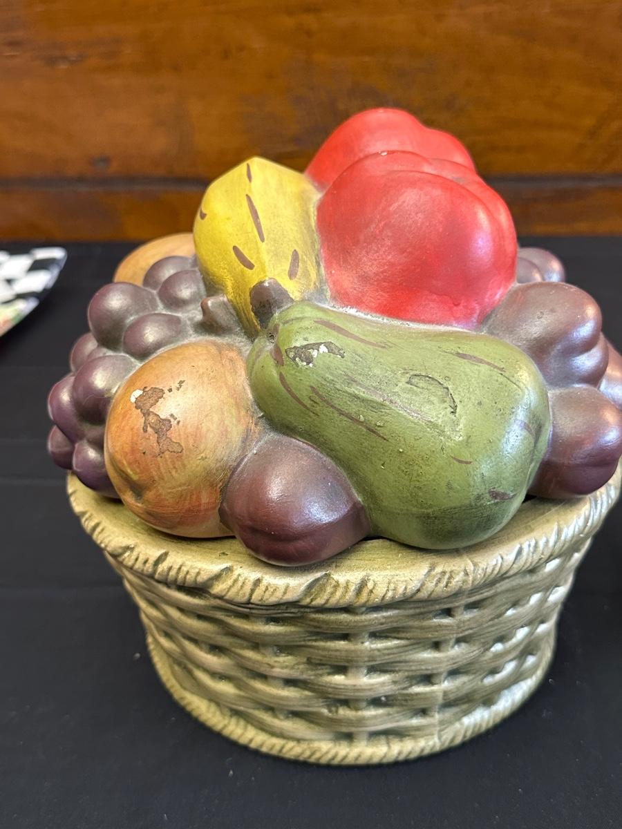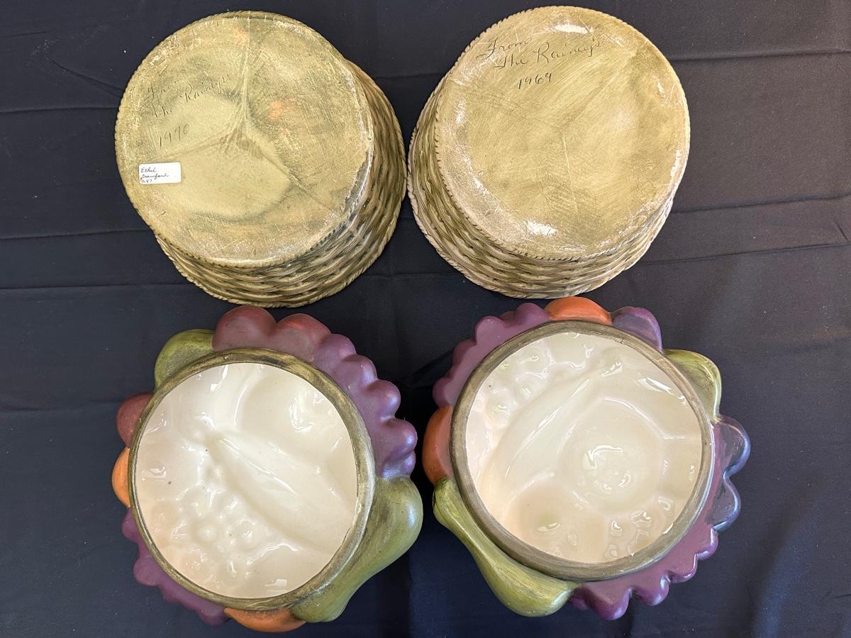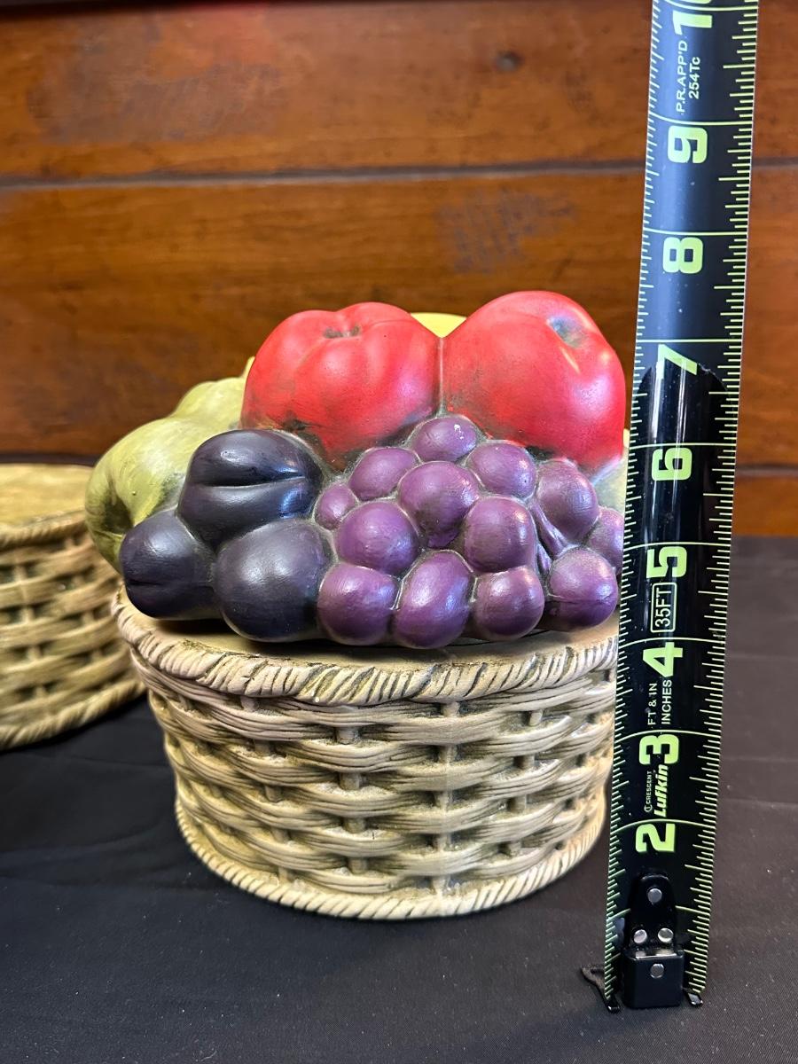 Two Ceramic Fruit Holders with Removable Lids & Dish Towels