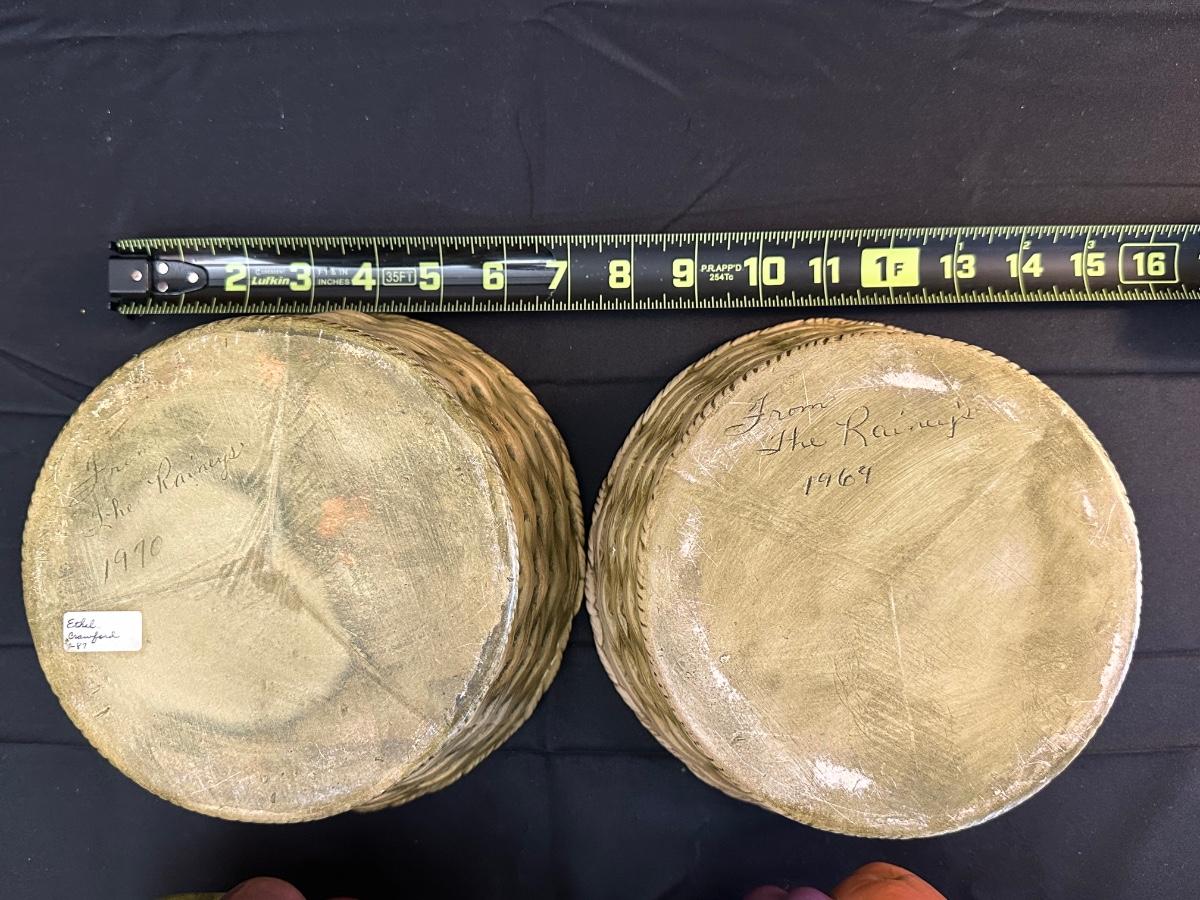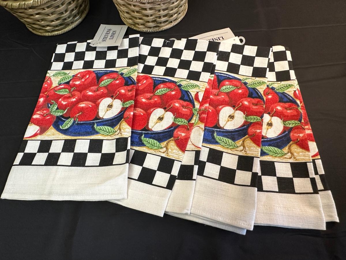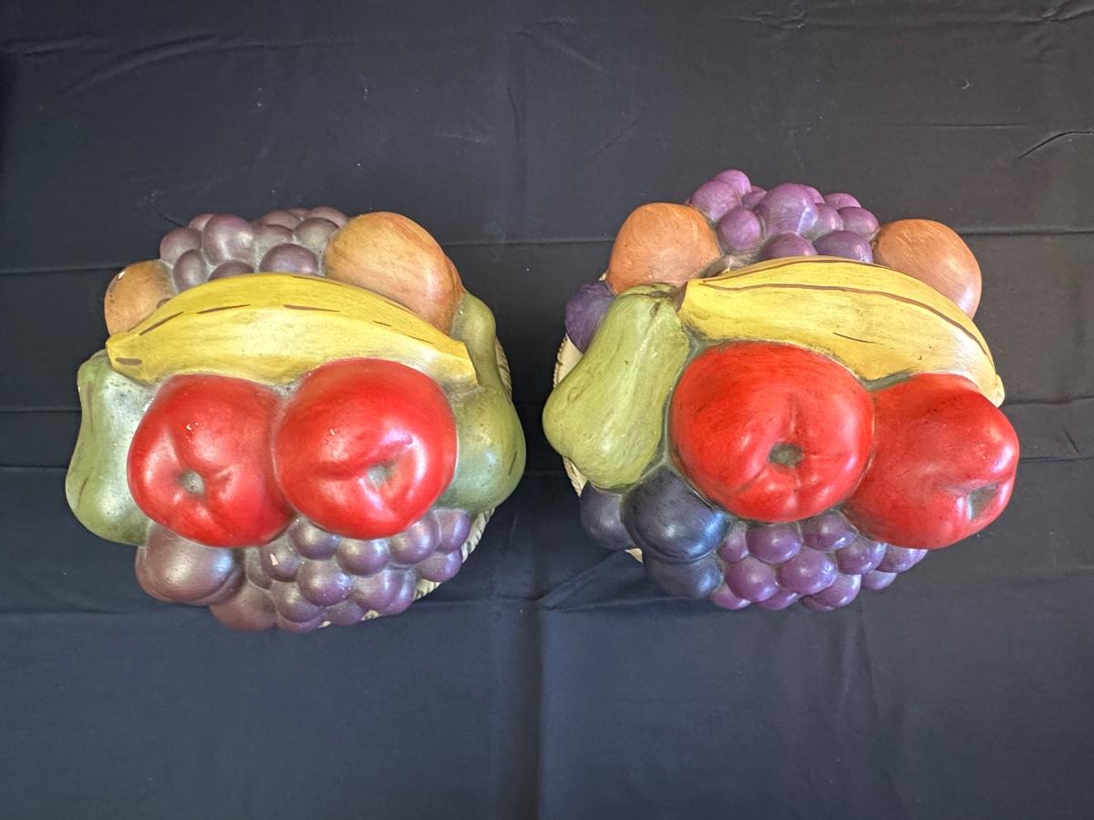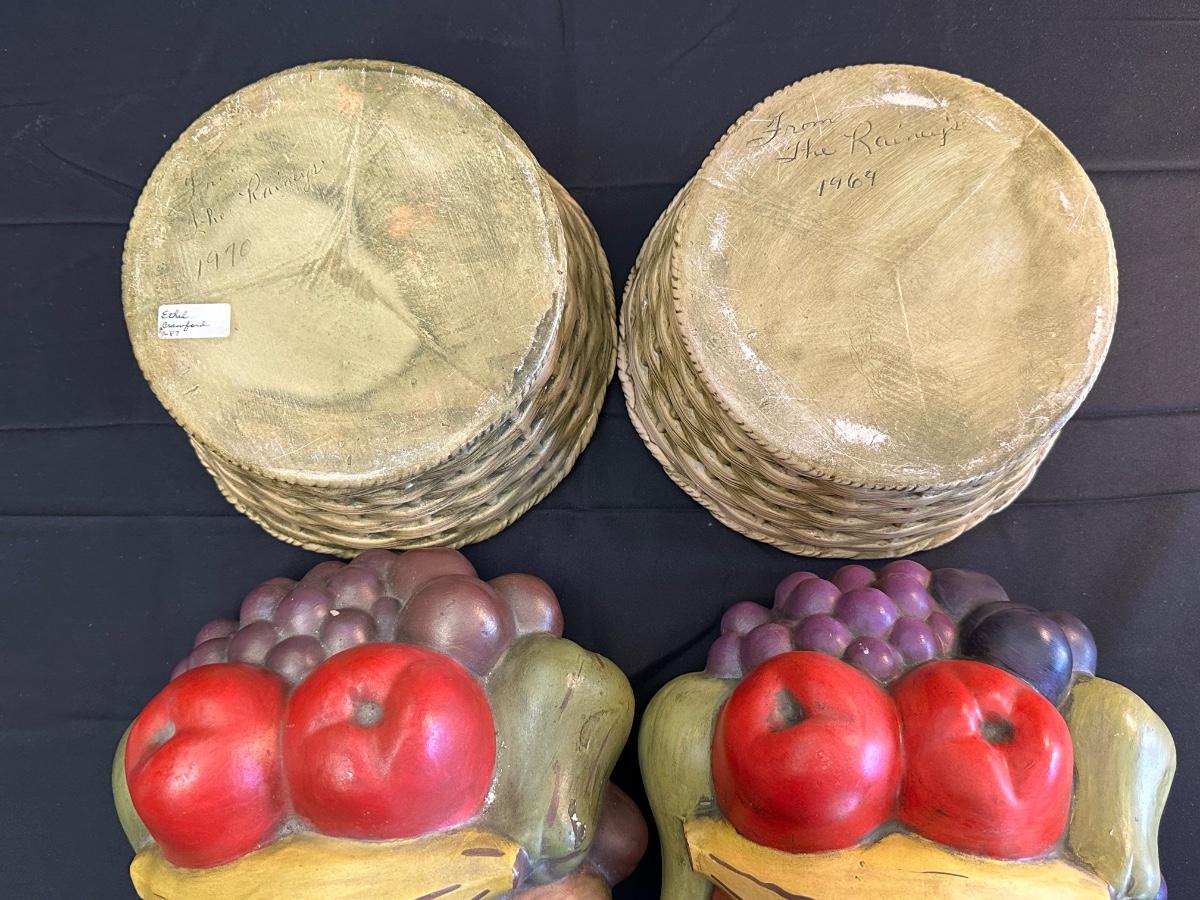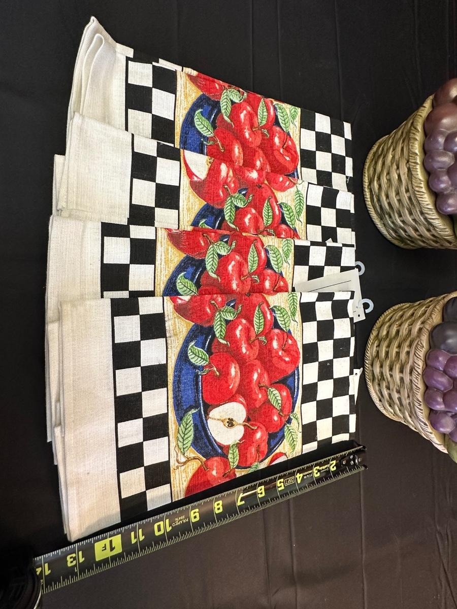 Two Ceramic Fruit Holders with Removable Lids & Dish Towels