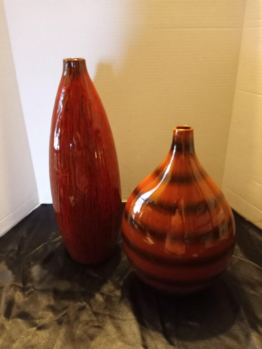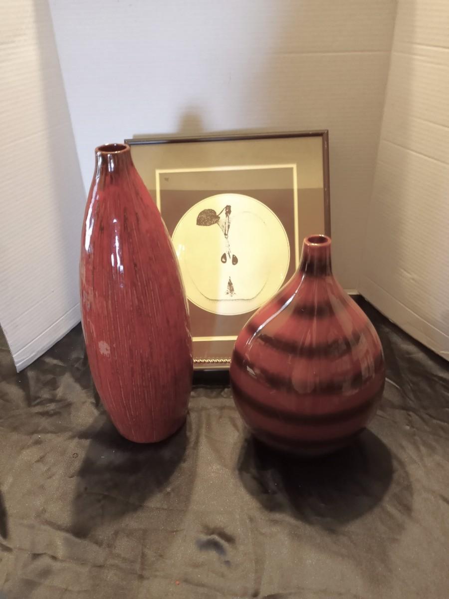 TWO CERAMIC VASES AND WALL CLOCK