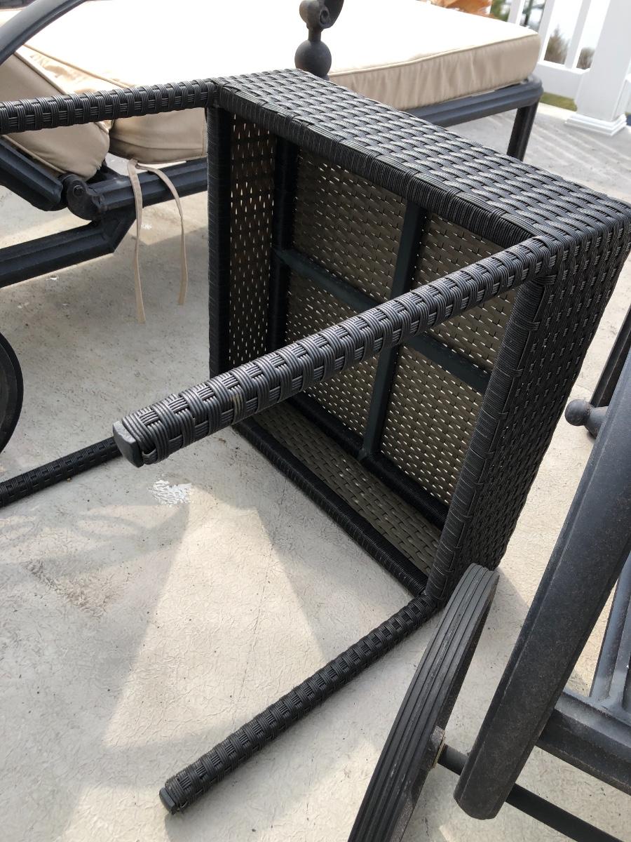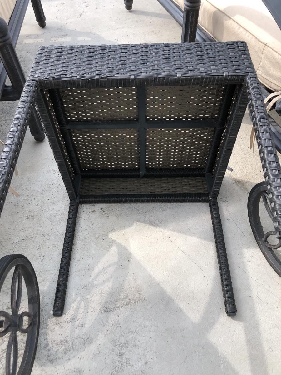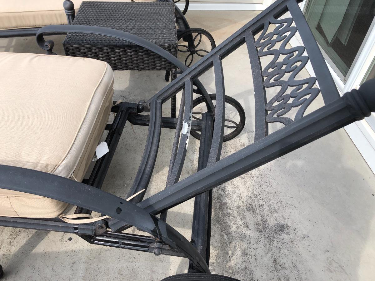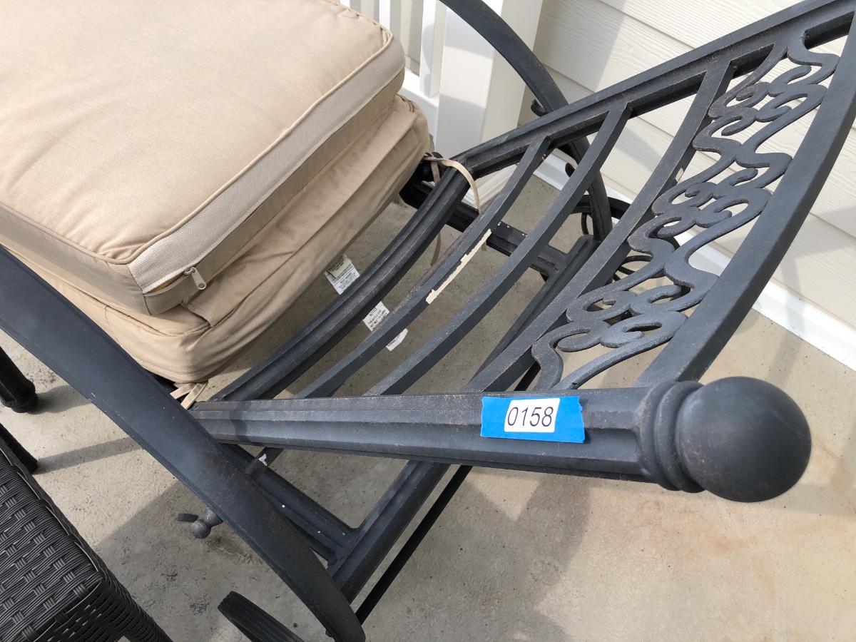 Two Chaise Outdoor Lounge Chairs w/ Frontgate Cushions and Table