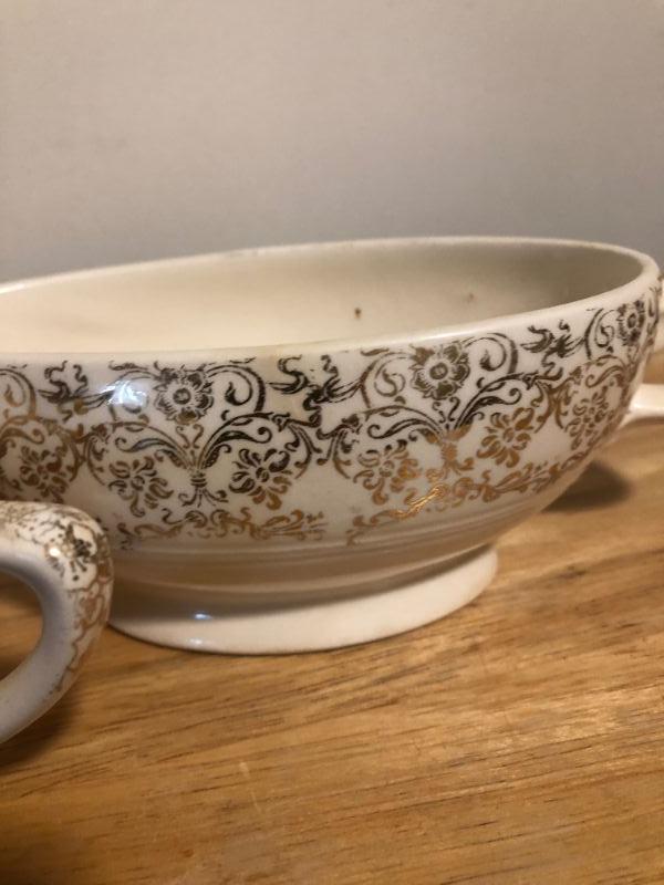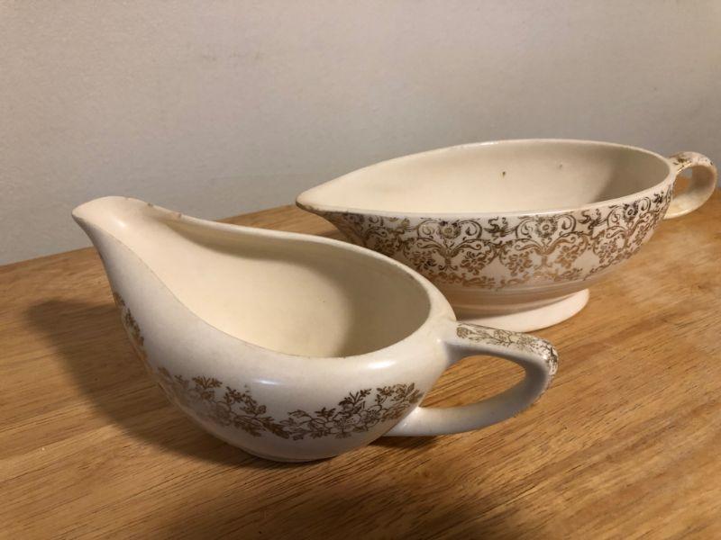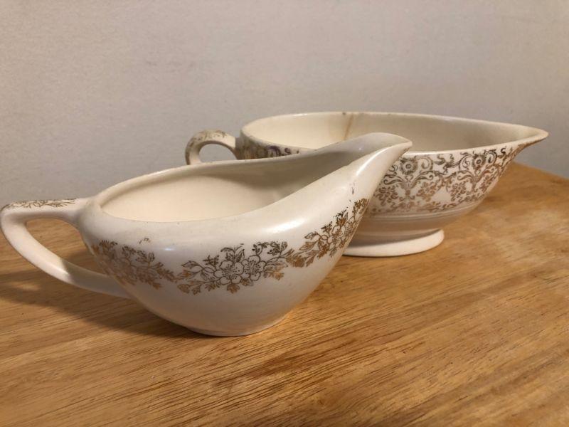 Two China Gravy Boats with Gold Gilding **Please read Terms and Conditions before placing a bid. Pick up is Thursday, August 15, 2019 from 4pm to 7pm or Sunday, August 18 from 11am-2pm in Mullica Hill. All sales are final. All sales are as is, where is. Please review all photos. Any props included in photos are not included in listing. All measurements are approximate.