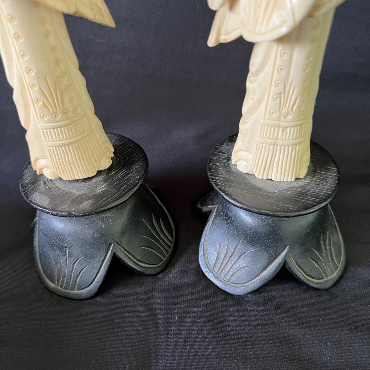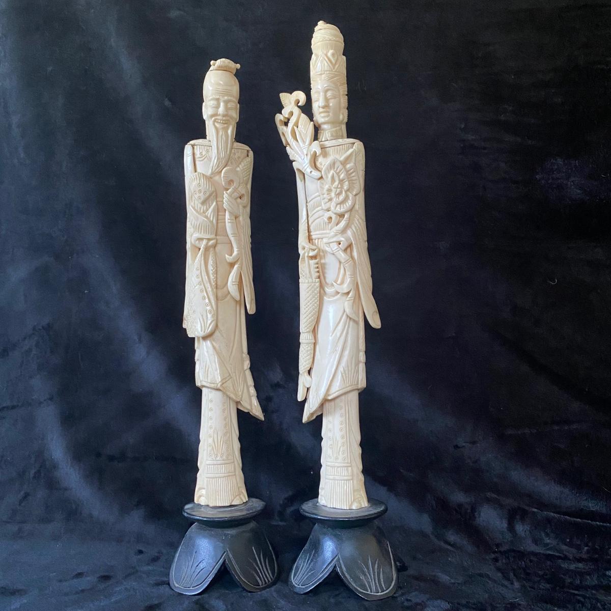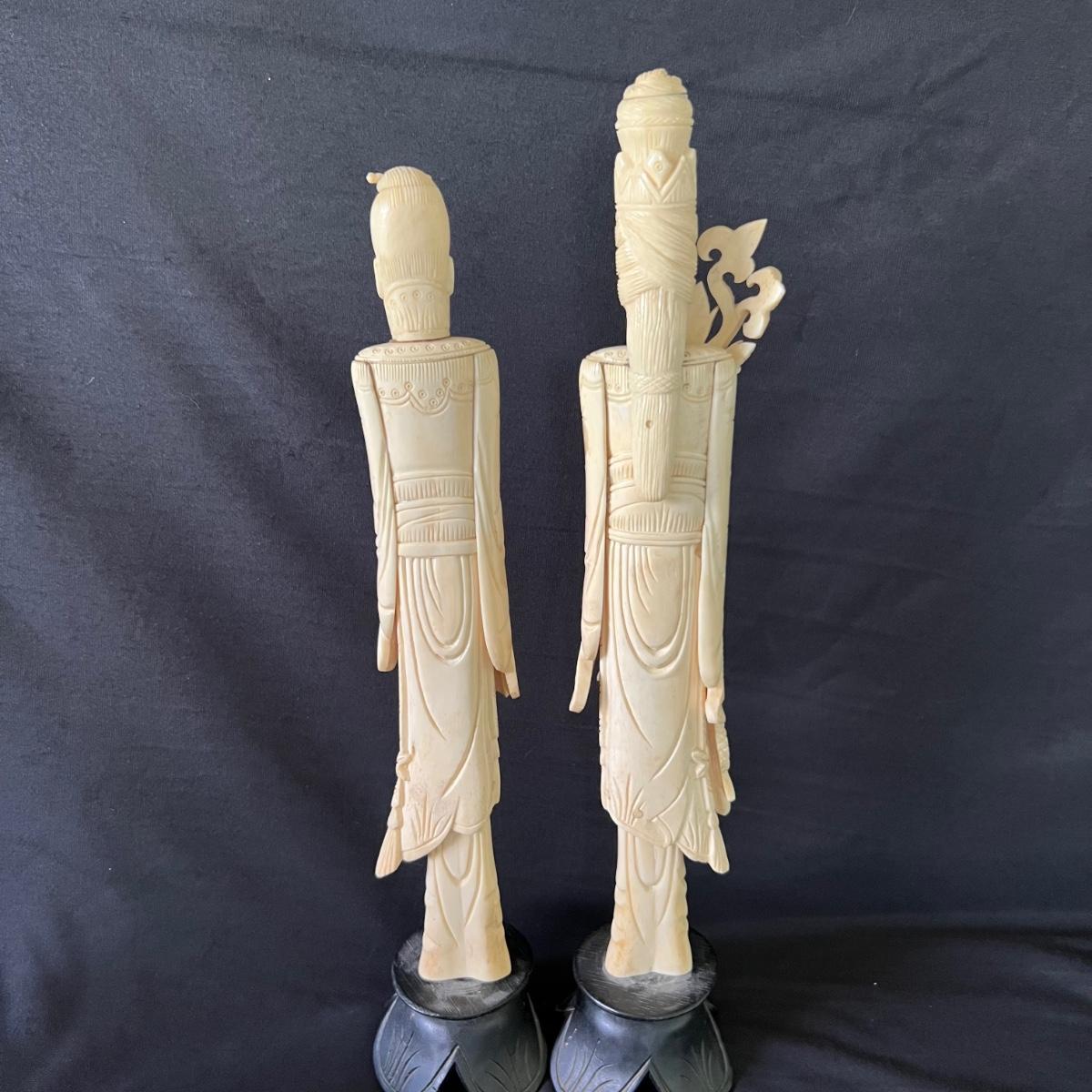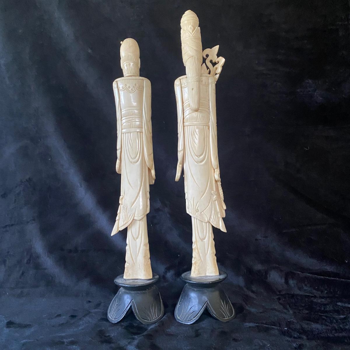 Two Chinese statues 18”H. Made of hard plastic or resin with wood bases.
