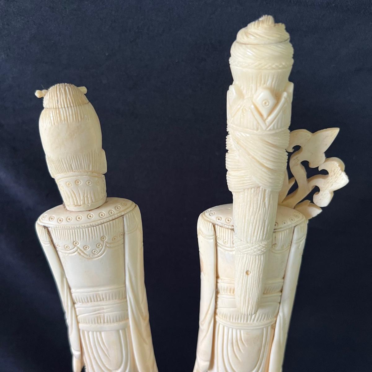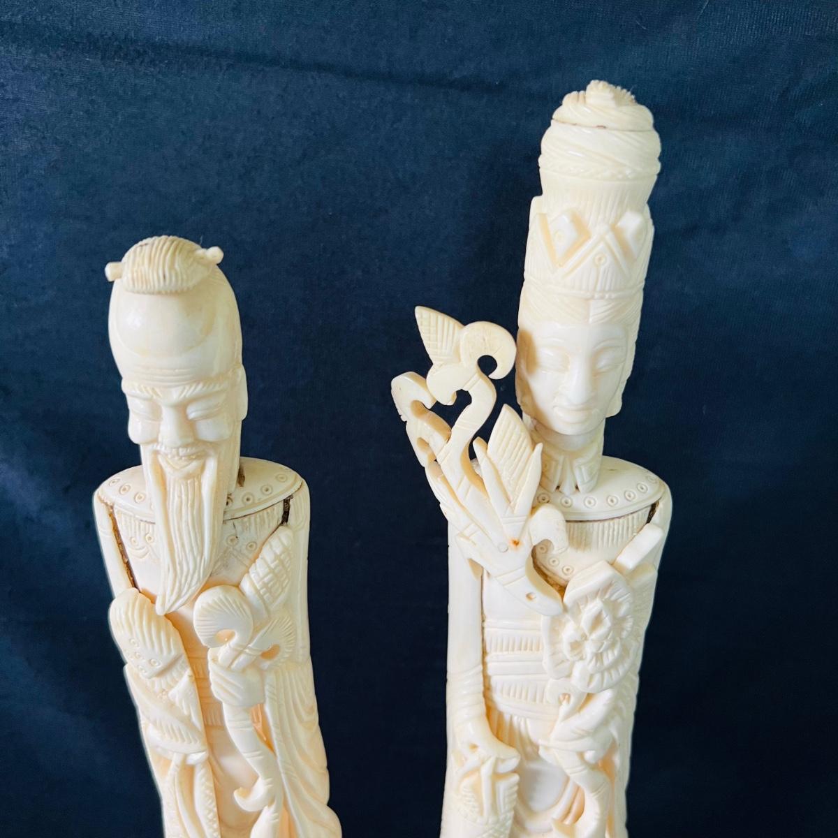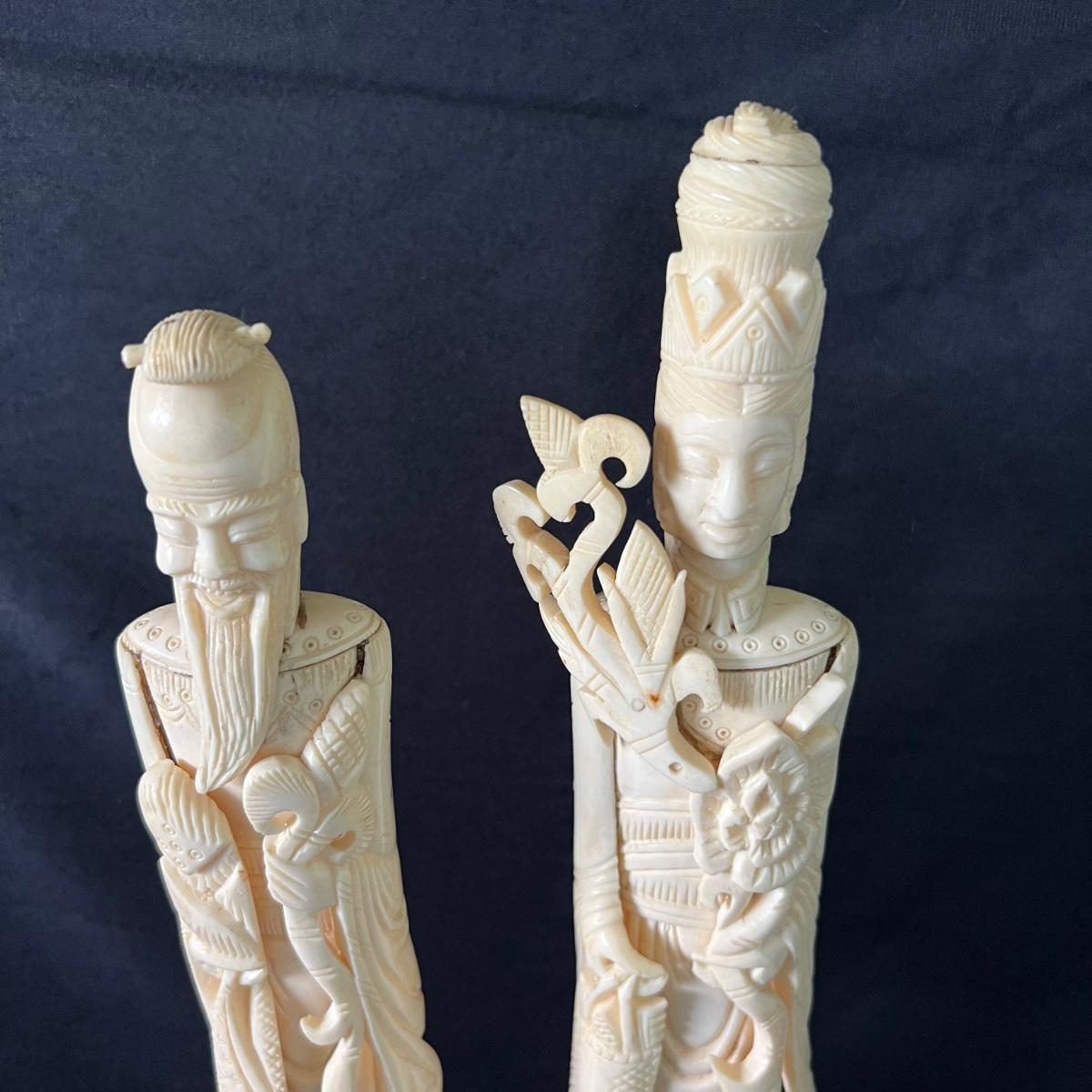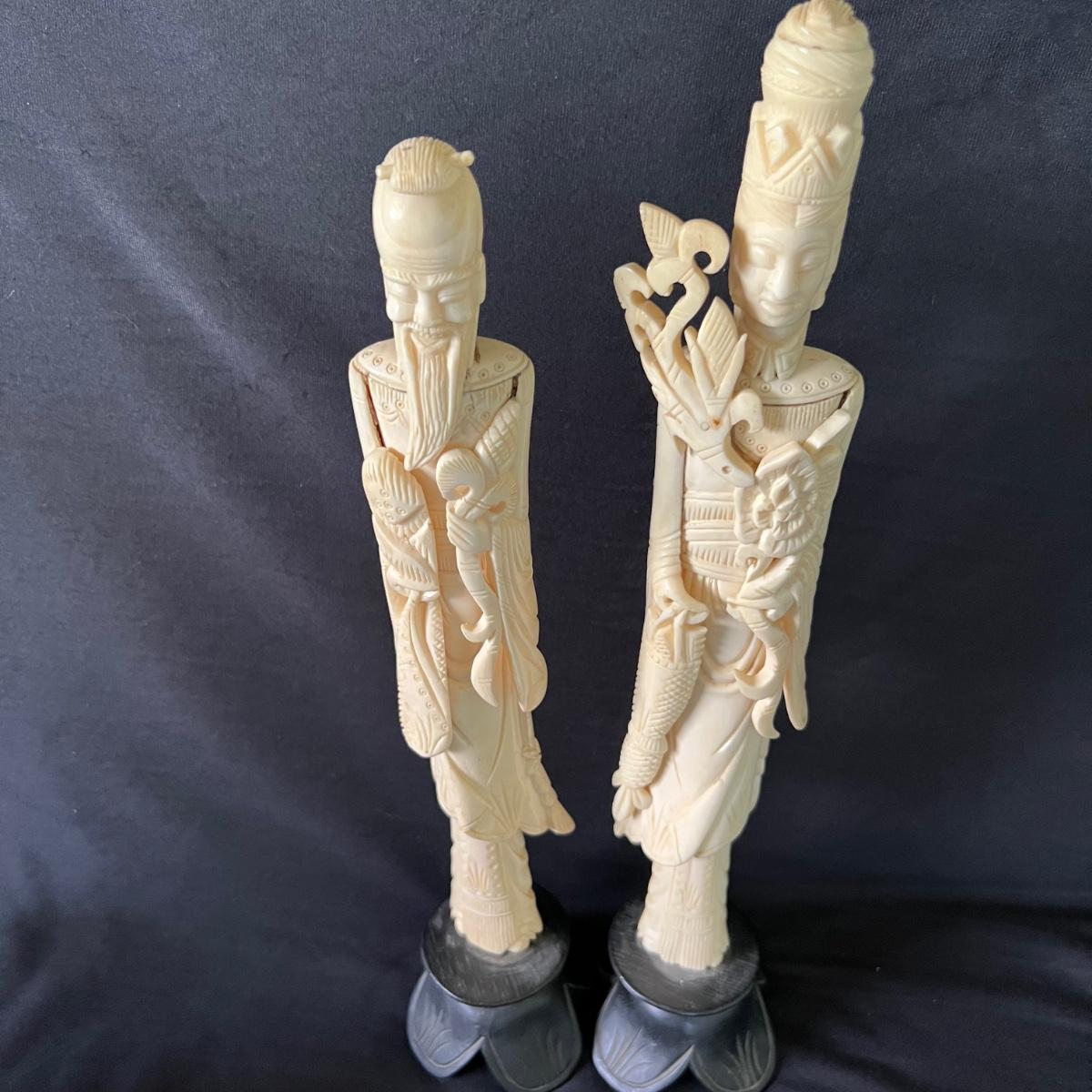 Two Chinese statues 18”H. Made of hard plastic or resin with wood bases.