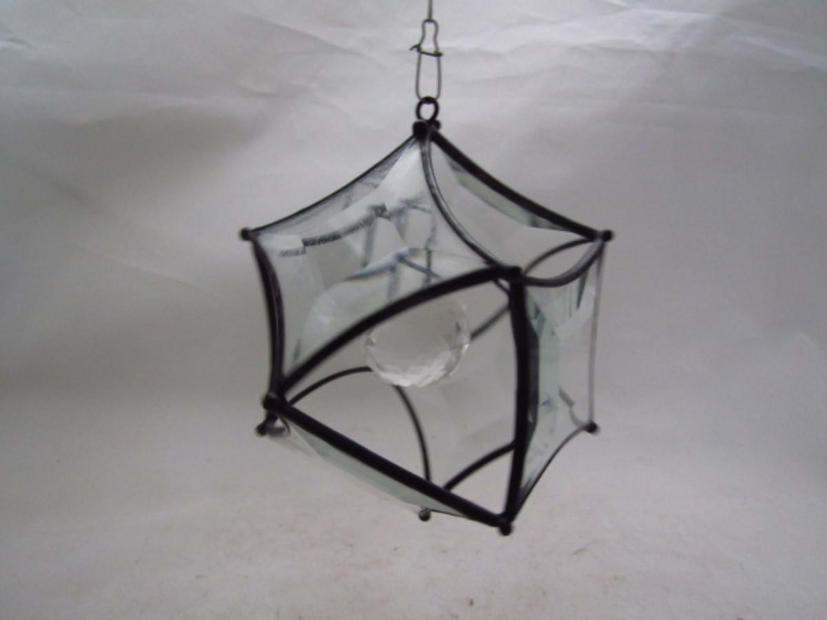Two Clear Beveled Glass Geometric Hanging Sun Catchers