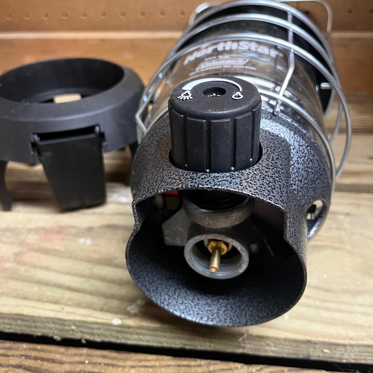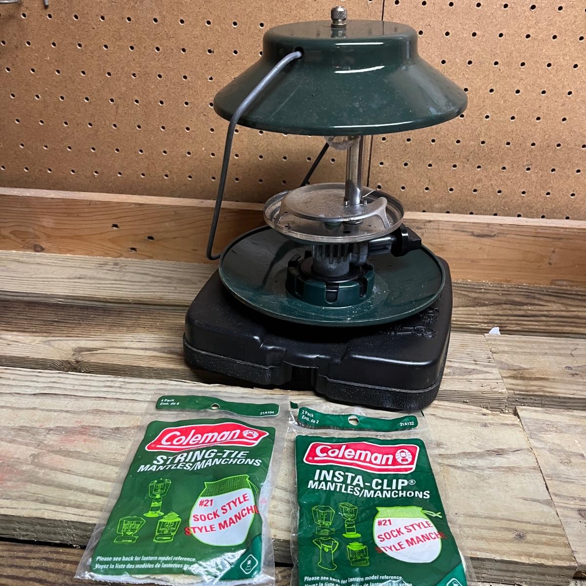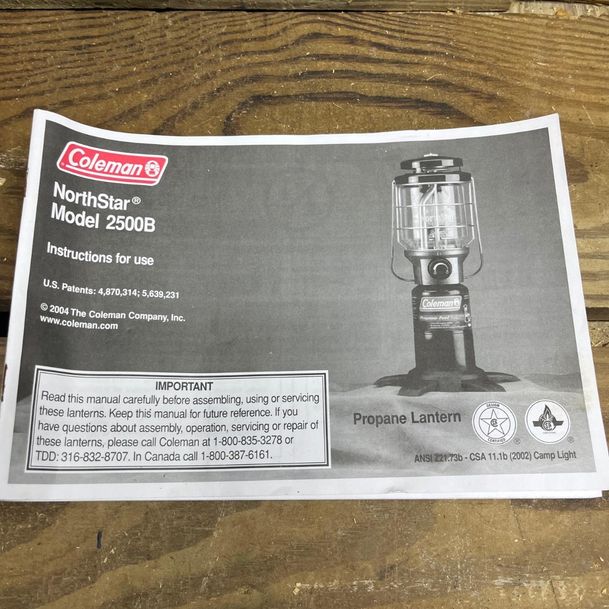 Lot includes a Coleman propane lantern in plastic carrying case and a Coleman Northstar propane lantern. Carrying case measures 8” x 8” x 13”H.