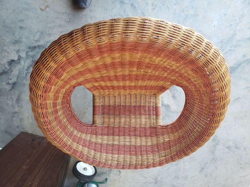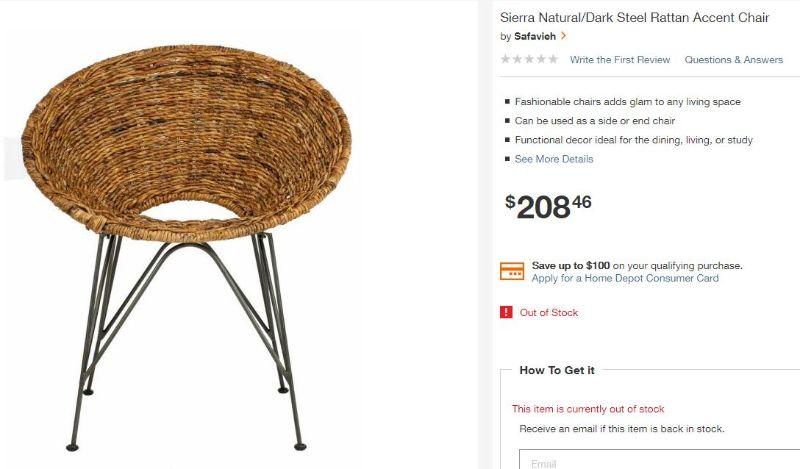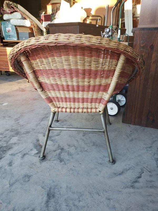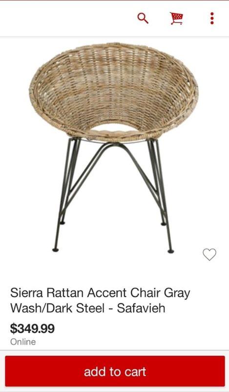 Two color Rattan accent chair with a steel base. Excellent condition. Has always been indoors. (last 2 photos are to compare retail prices for similar)