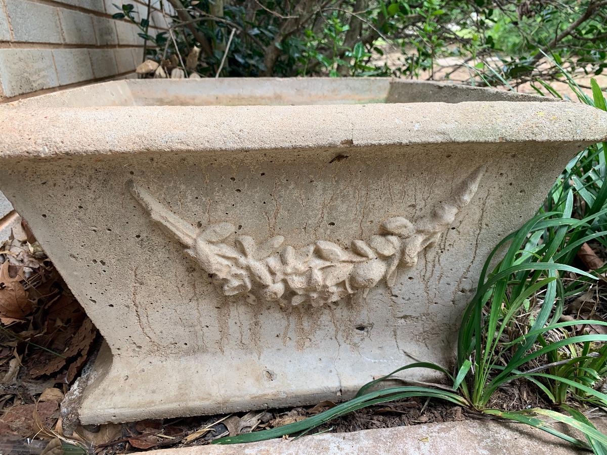 Beautiful and very heavy concrete planters ready to adorn your porch. One of the planters has a chipped corner, but does not affect its performance. Noticed it when unloading them, but had already taken pictures.