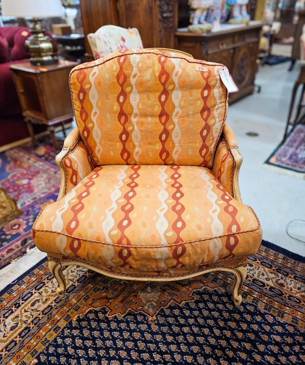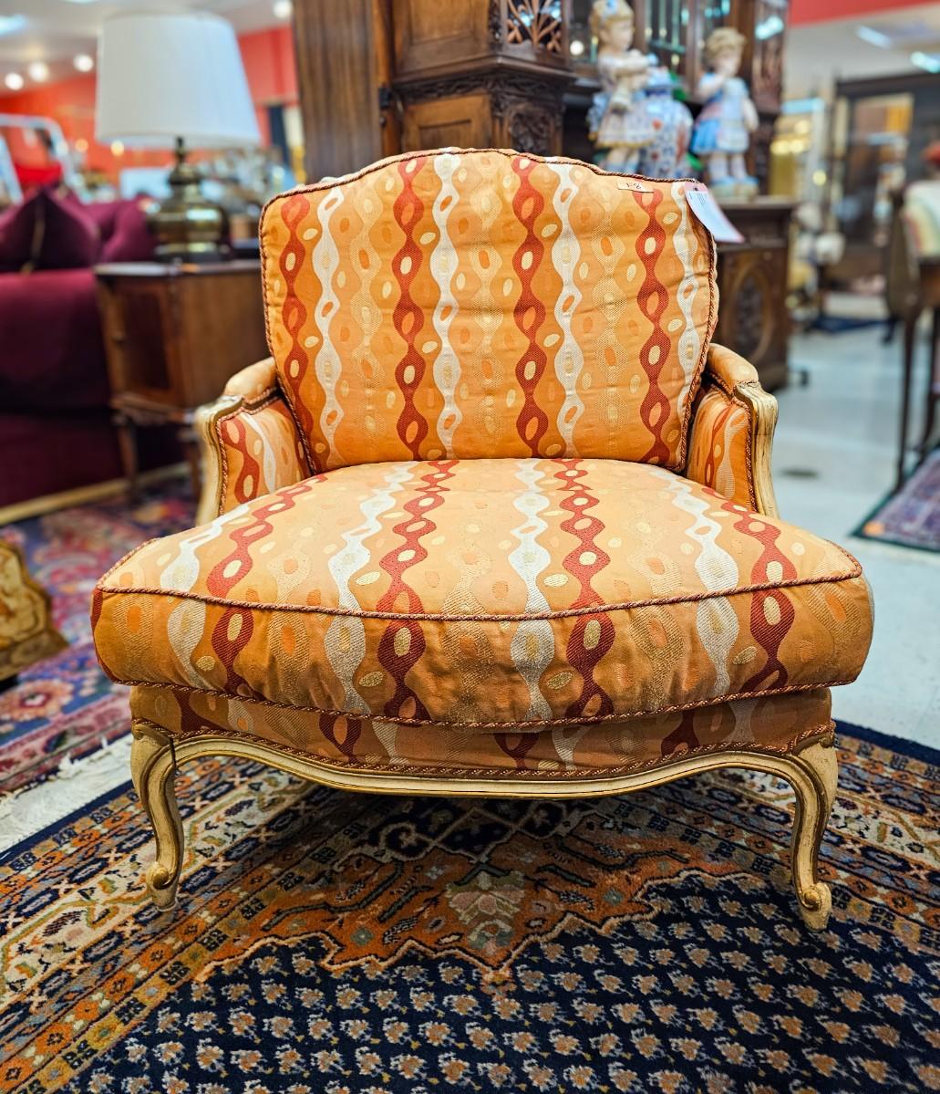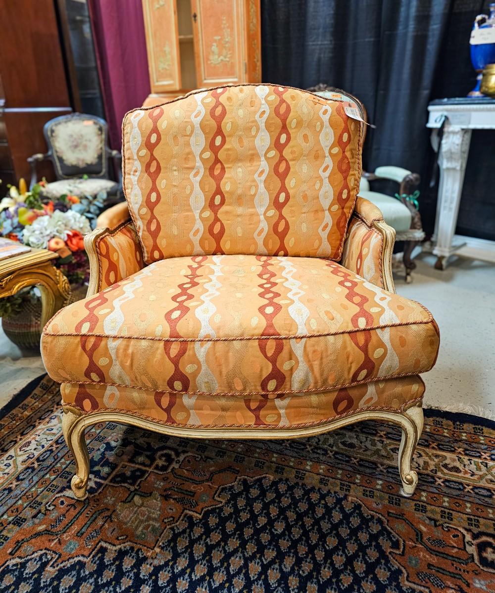 Two Contemporary Louis XV style armchairs in a contemporary upholstery by Century Furniture, 33" W x 35" D x 37" H back, 18" H seat