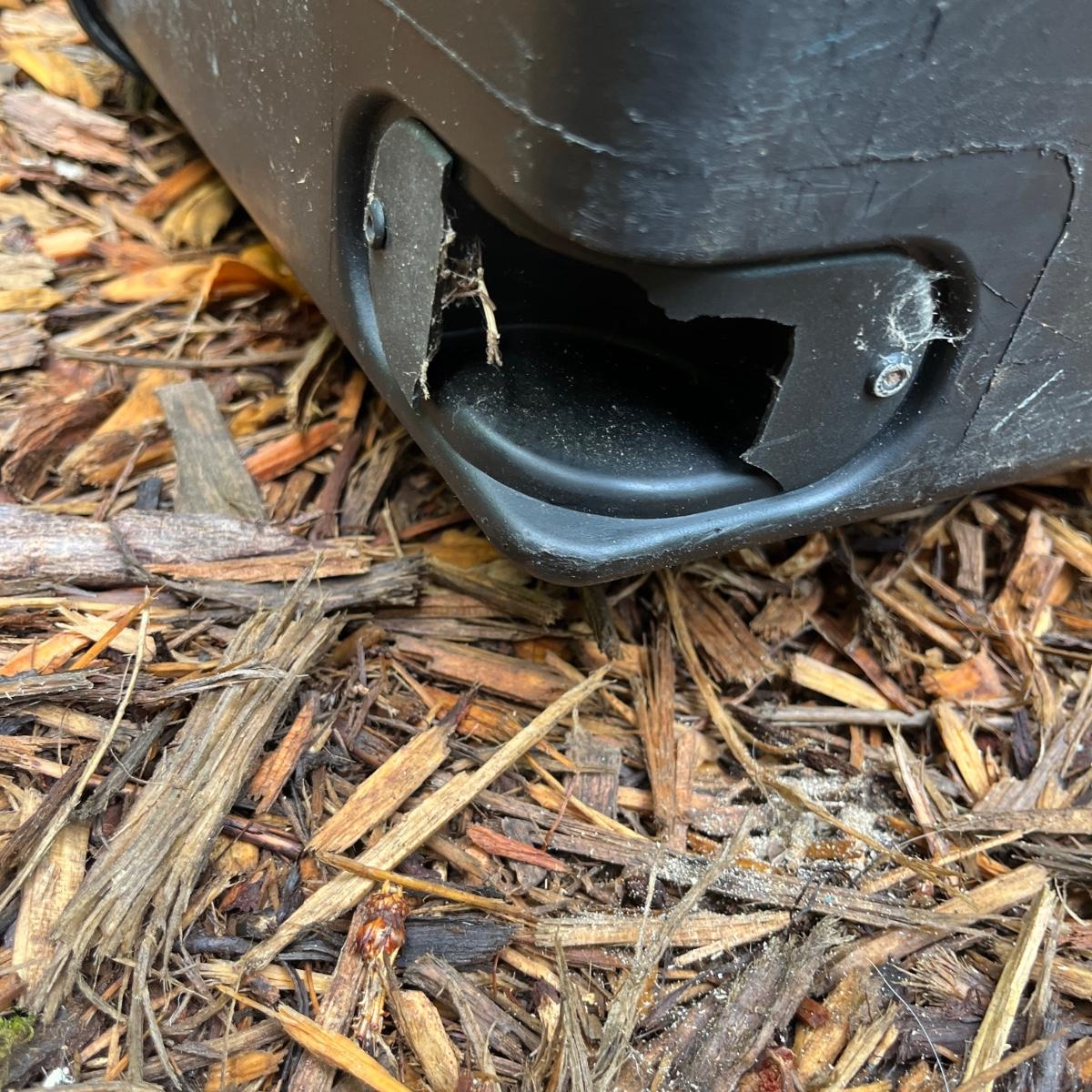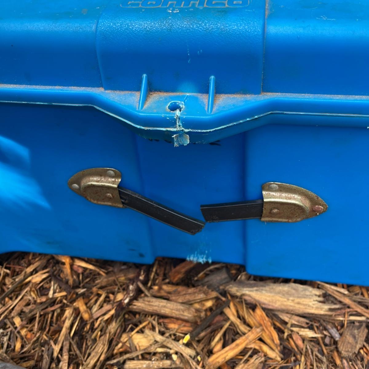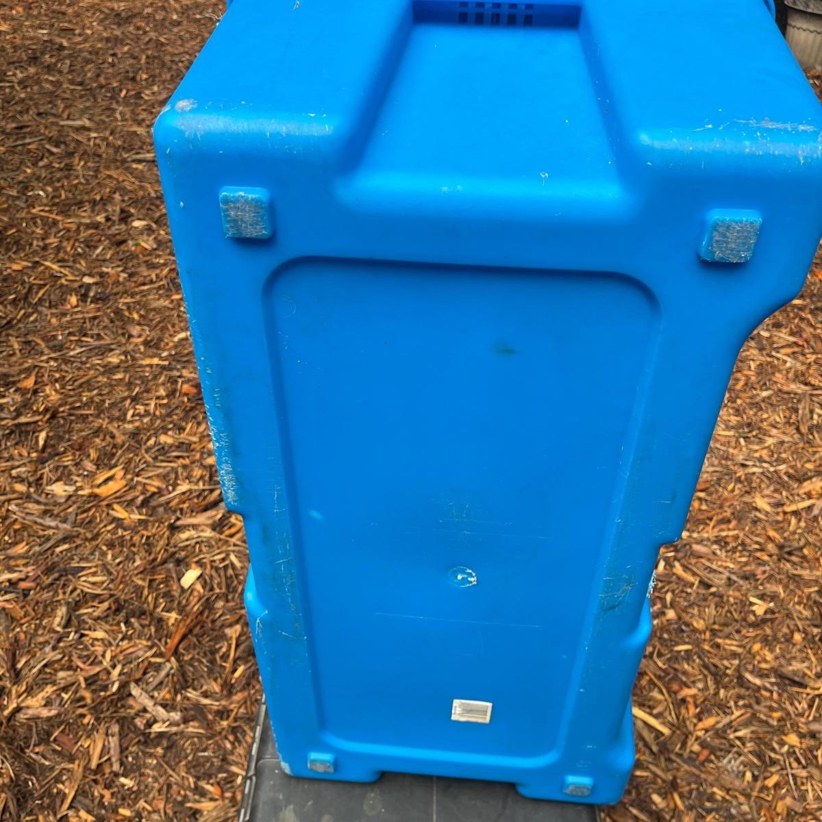 Lot includes two plastic Contico storage trunks that each measure 32” x 17” x 13”H. One trunk is missing wheel and one has broken handle, see pictures.