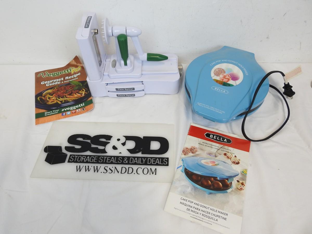 Two Cooking Machines: Bella Cake Pop and Donut Hole Maker, Veggetti Pro Spaghetti Maker