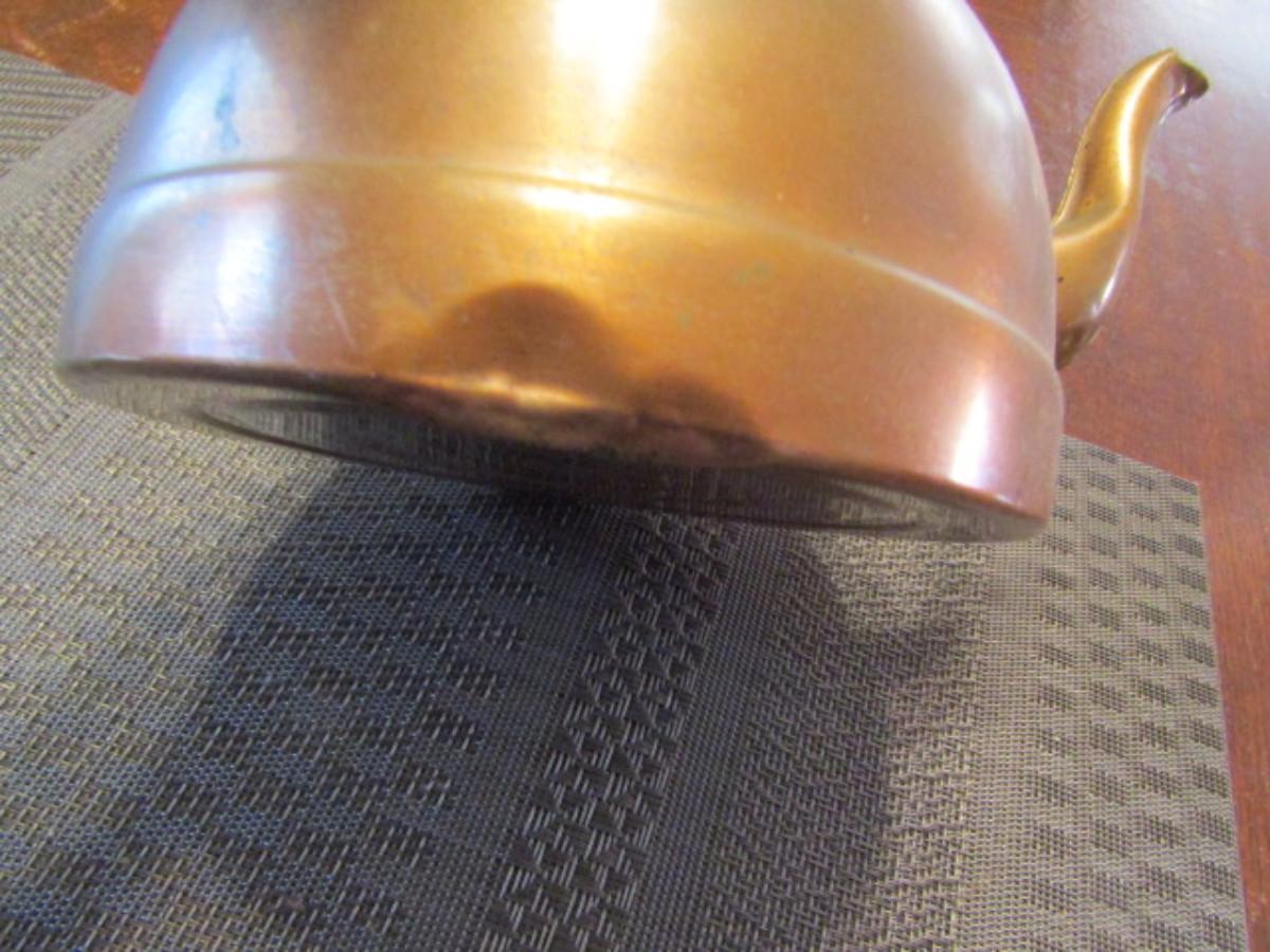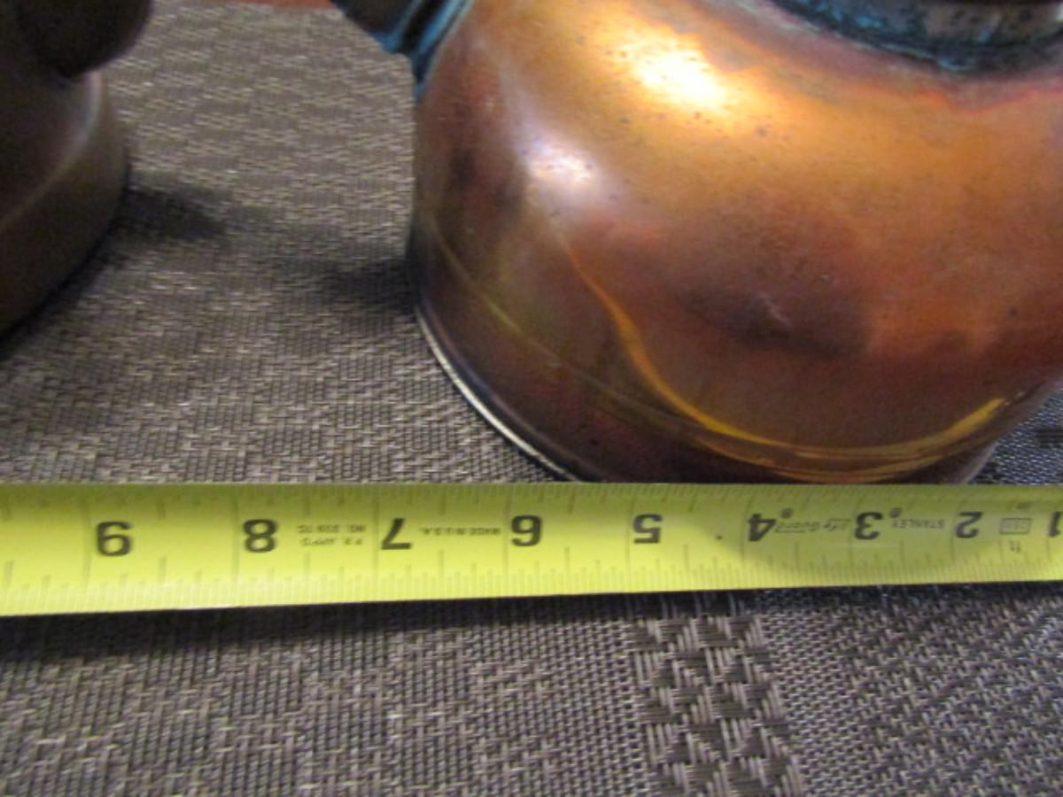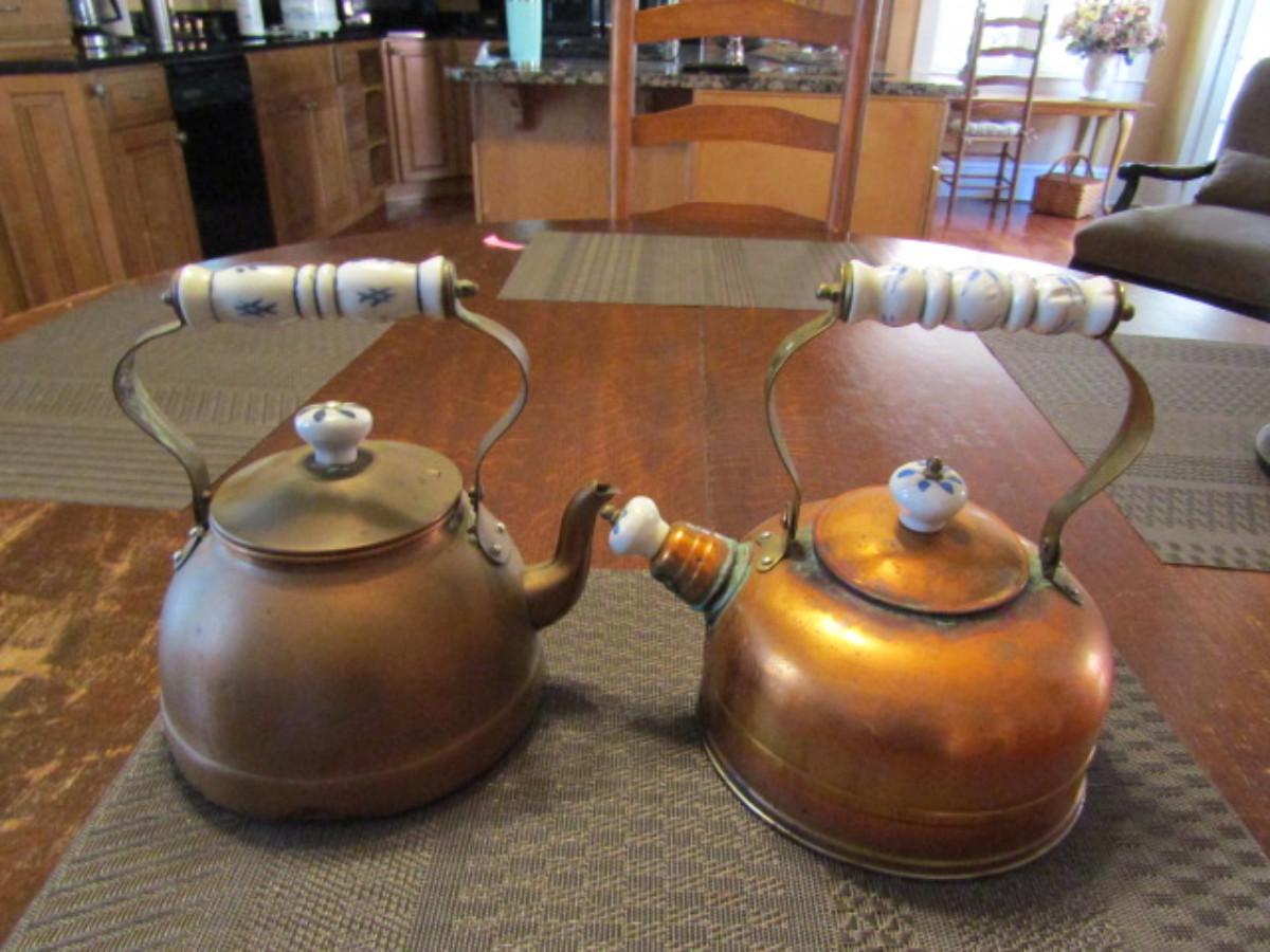 Two Copper Finished Tea Kettles. Please see all pictures- one is dented- both need polishing.