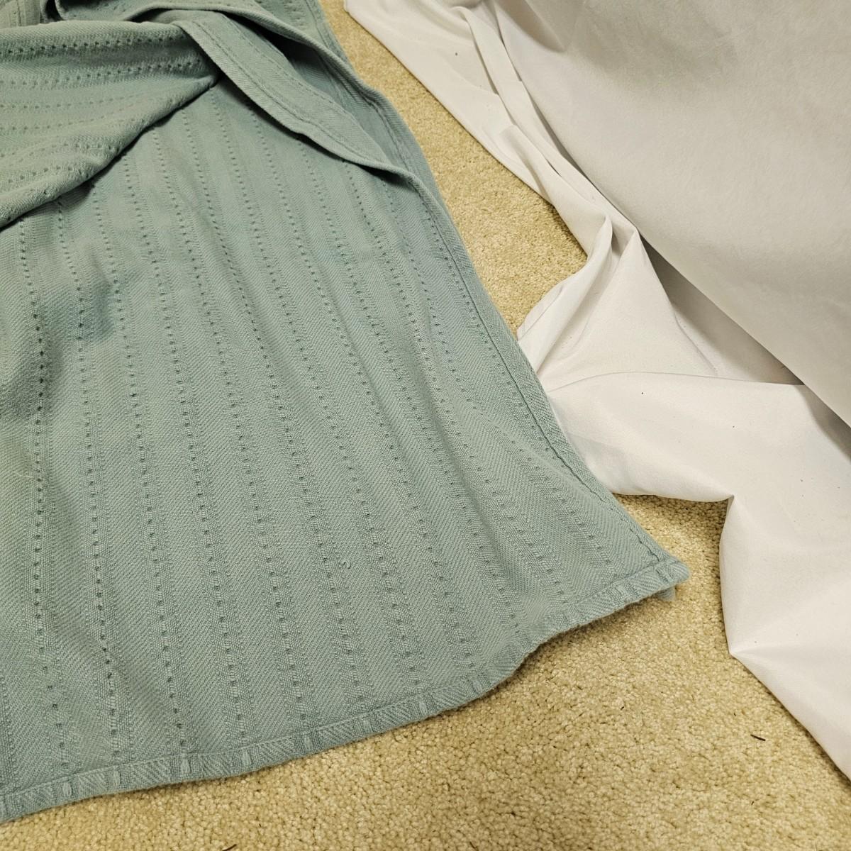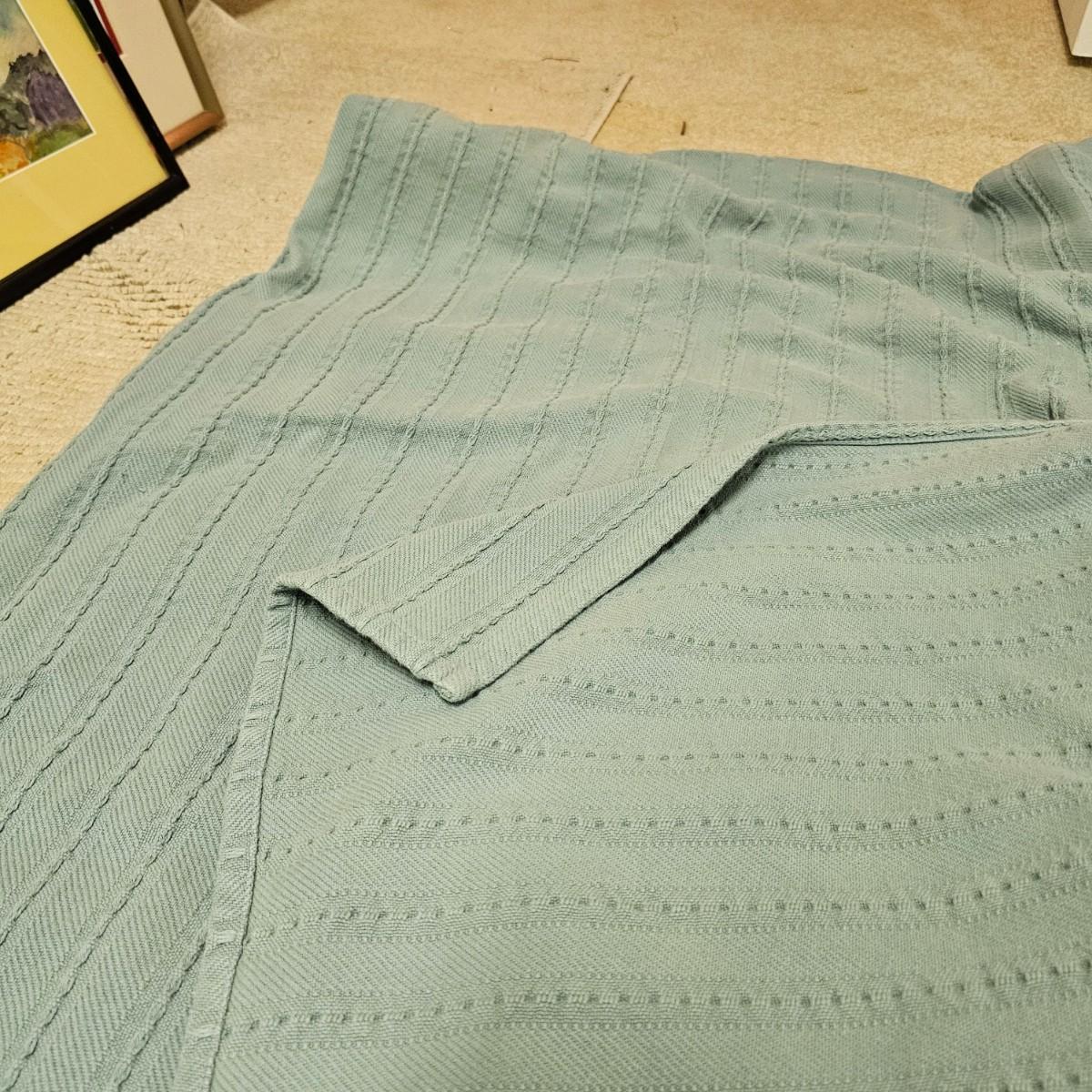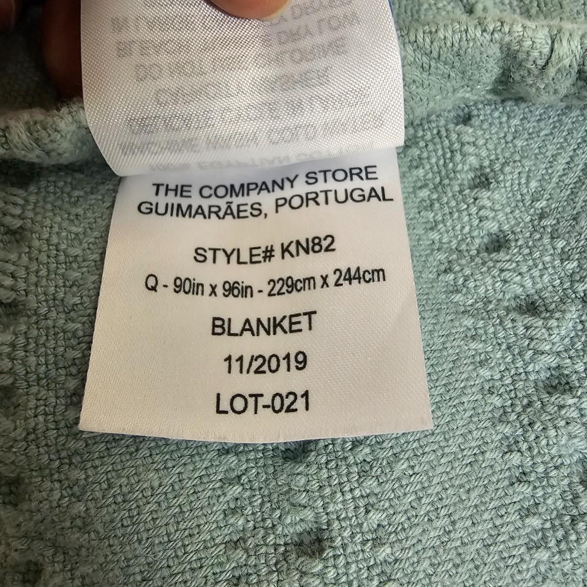 Two soft cotton blankets. Green blanket is 90" x 96" from The Company Store, is made of Egyptian cotton. Cream blanket is by Lands' End, measures 80" x 90", 100% cotton. See photos for details. Shipping available.