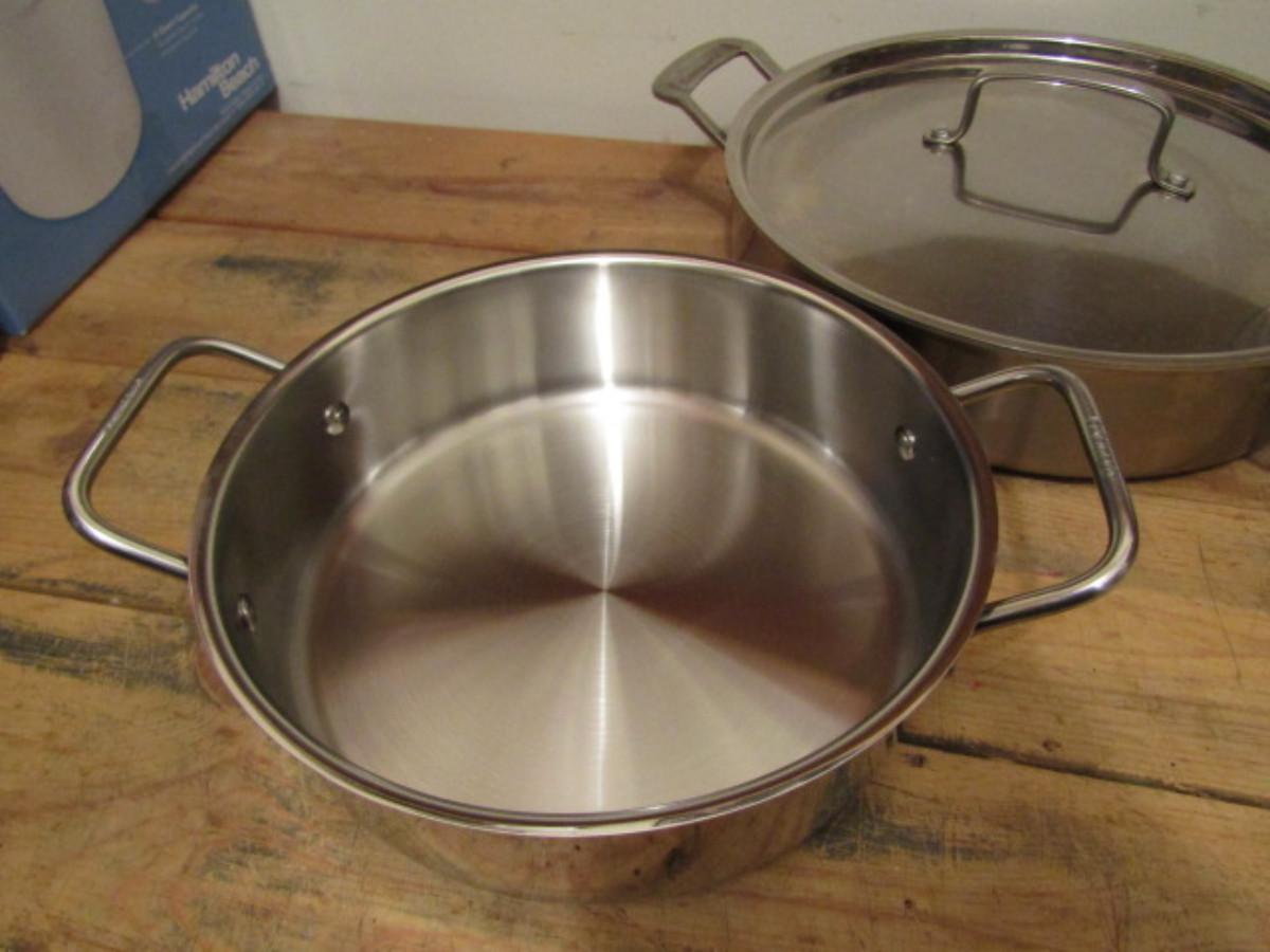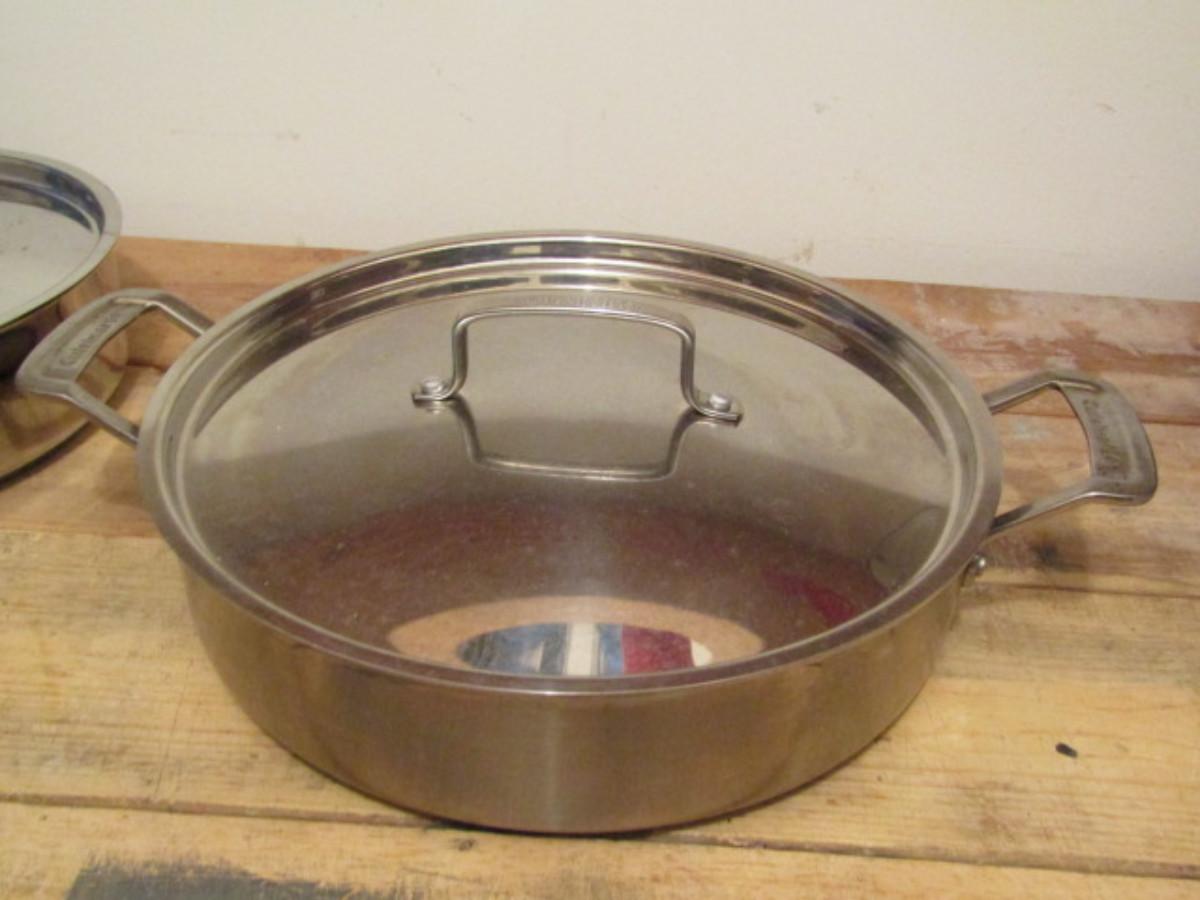 Two Covered Cuisinart Stainless Pans. 3.5 Quart and 5.5 Quart
