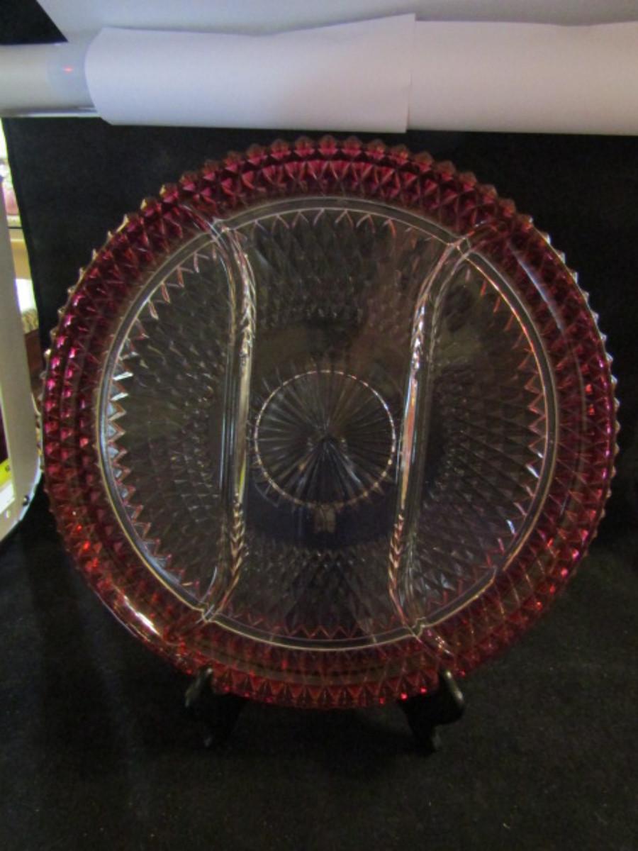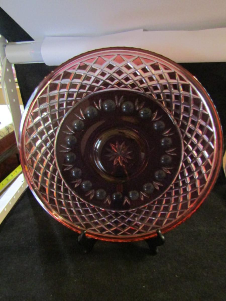 Two Cranberry/Pink Glass Serving Plates (#162)