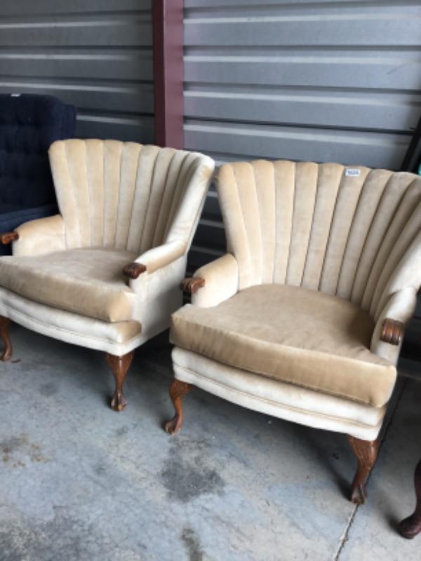 Two cream colored fabric chairs Lot 1025