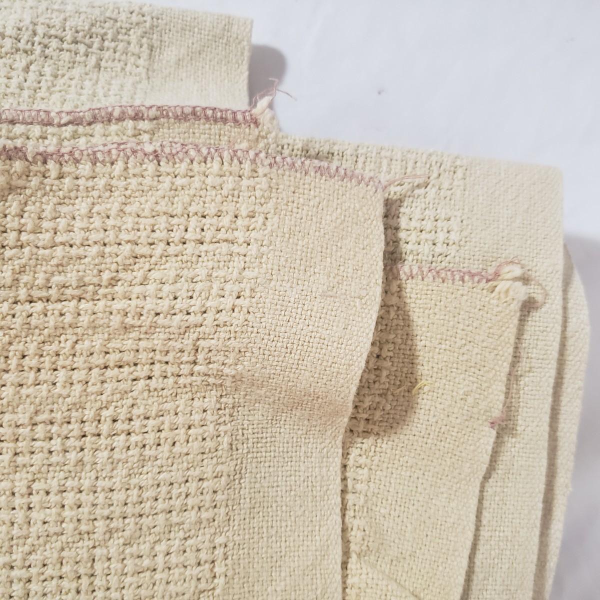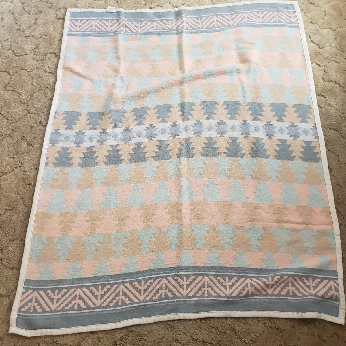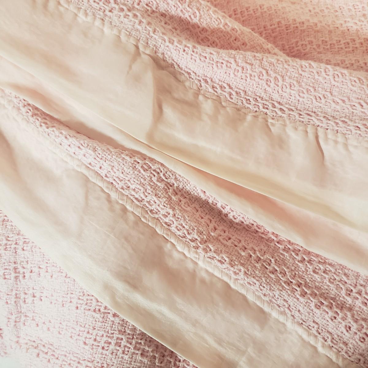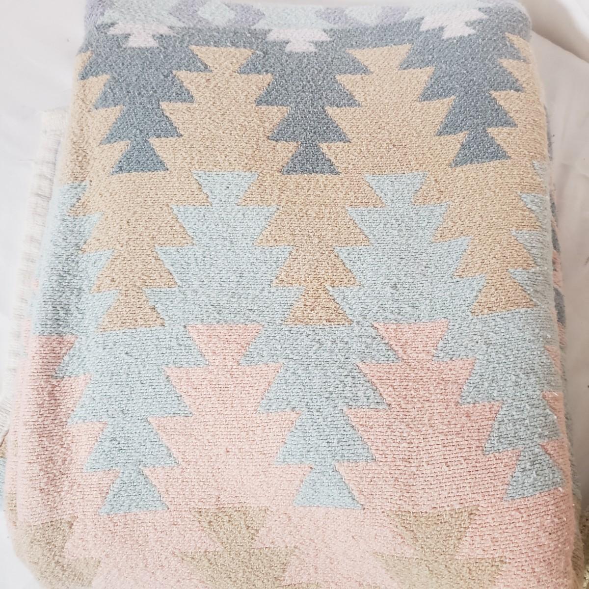 There are four cozy blankets in this lot. The two patterned ones appear to be Crown Craft based on their RN number. They each measure 46" x 40"H. The two solid ones are a pale yellow and pink and made of cotton. They measure 90" x 69"H. All four appear to be cotton weaves.