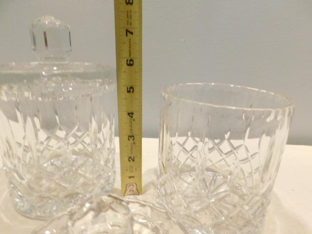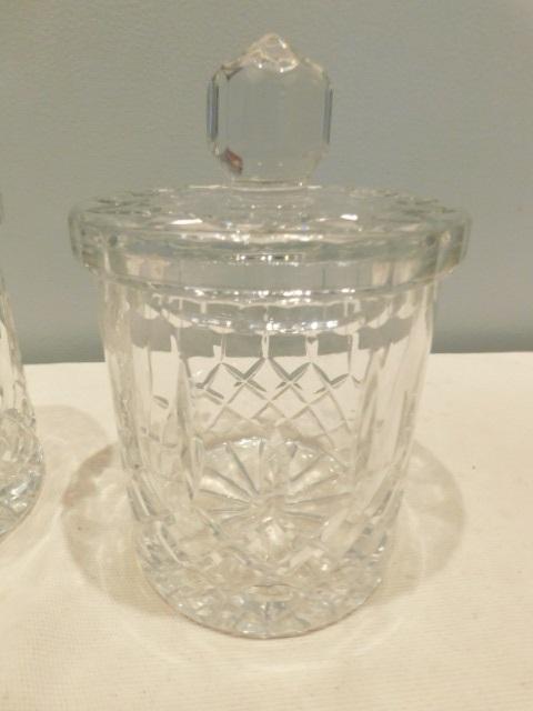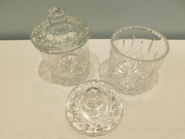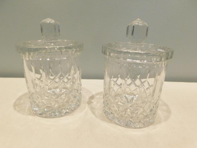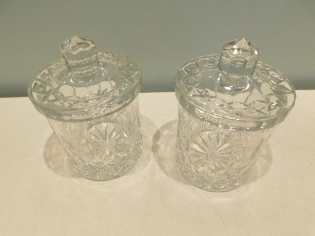 Two Crystal Lidded Biscuit Barrels:  4 1/2" Across, 5" High