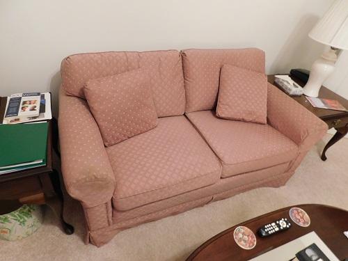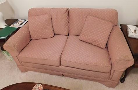 Two Cushion Loveseat with Two Throw Pillows 63" will need cleaning