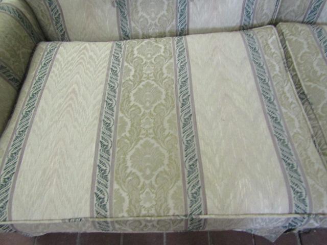 Two Cushion Sofa LOC has a pick as shown will need to be cleaned