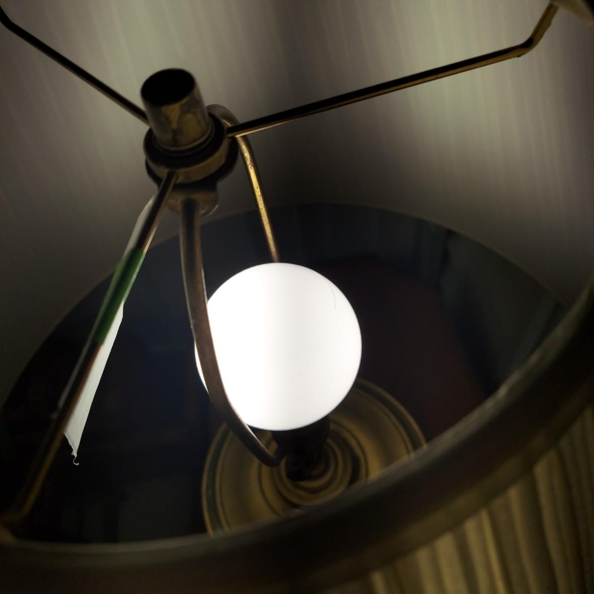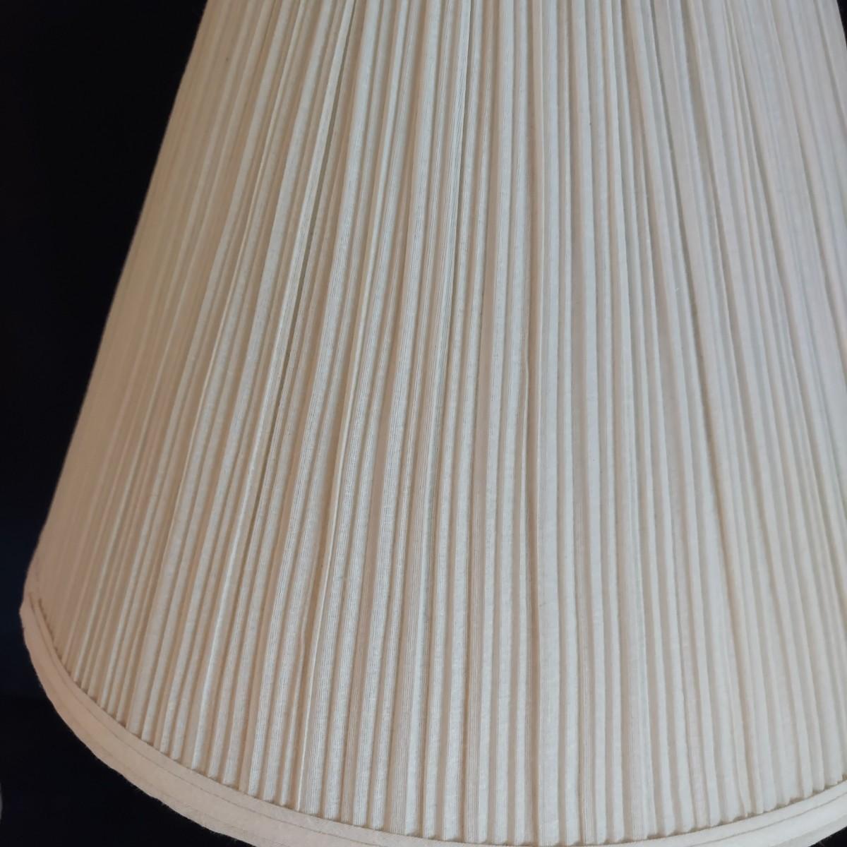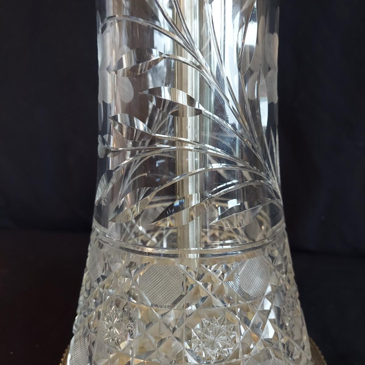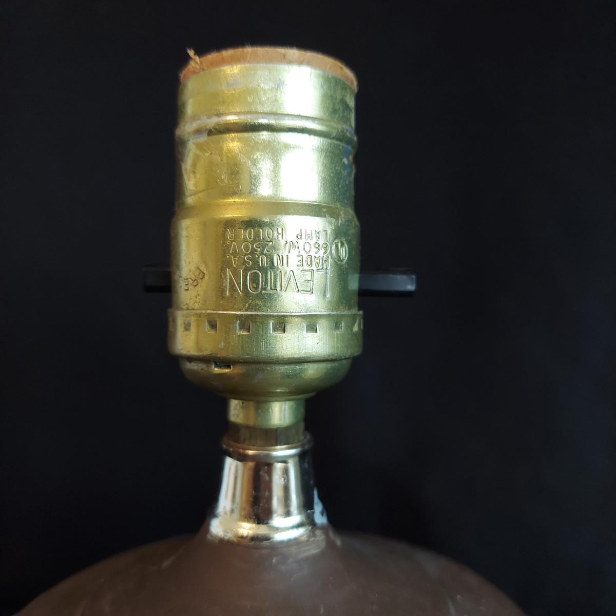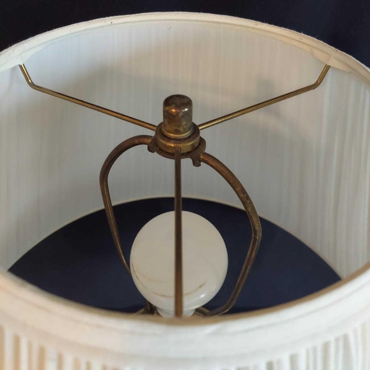 Two lamps with cut glass bodies. Makes a nice ting–could be crystal. Heavy weight. The small lamp has no shade, has a two way switch and measures 6"D x 10.5"H. The largest lamp has a 3 way switch and is 7"D x 31"H with a cloth shade that measures 18"D across. Local Pickup Only