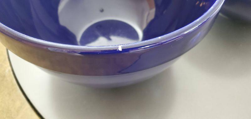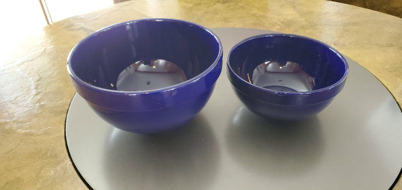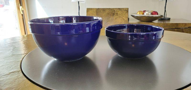 Two Dark Blue Ceramic Mixing Bowls (big: 11.5" x 6.5", little: 9.5"x5")