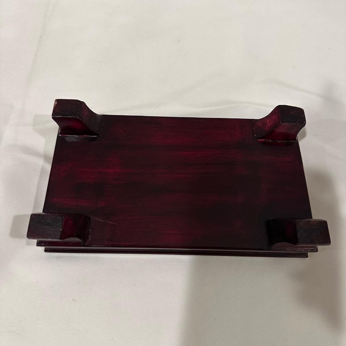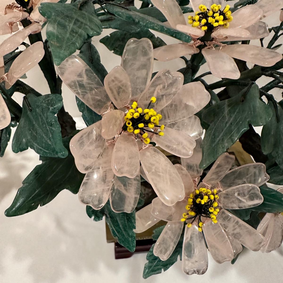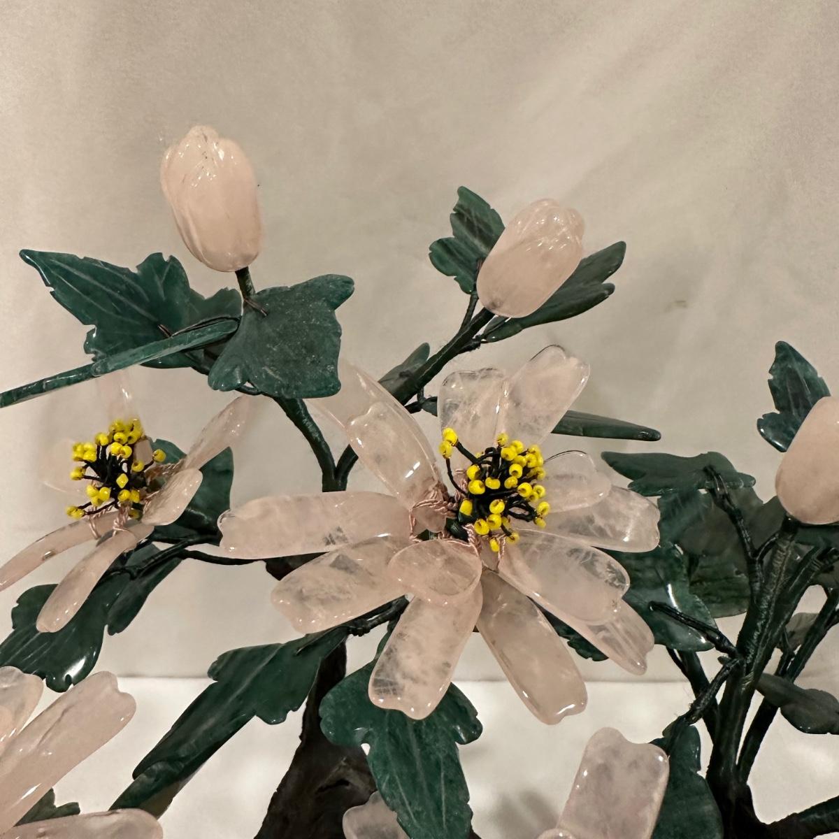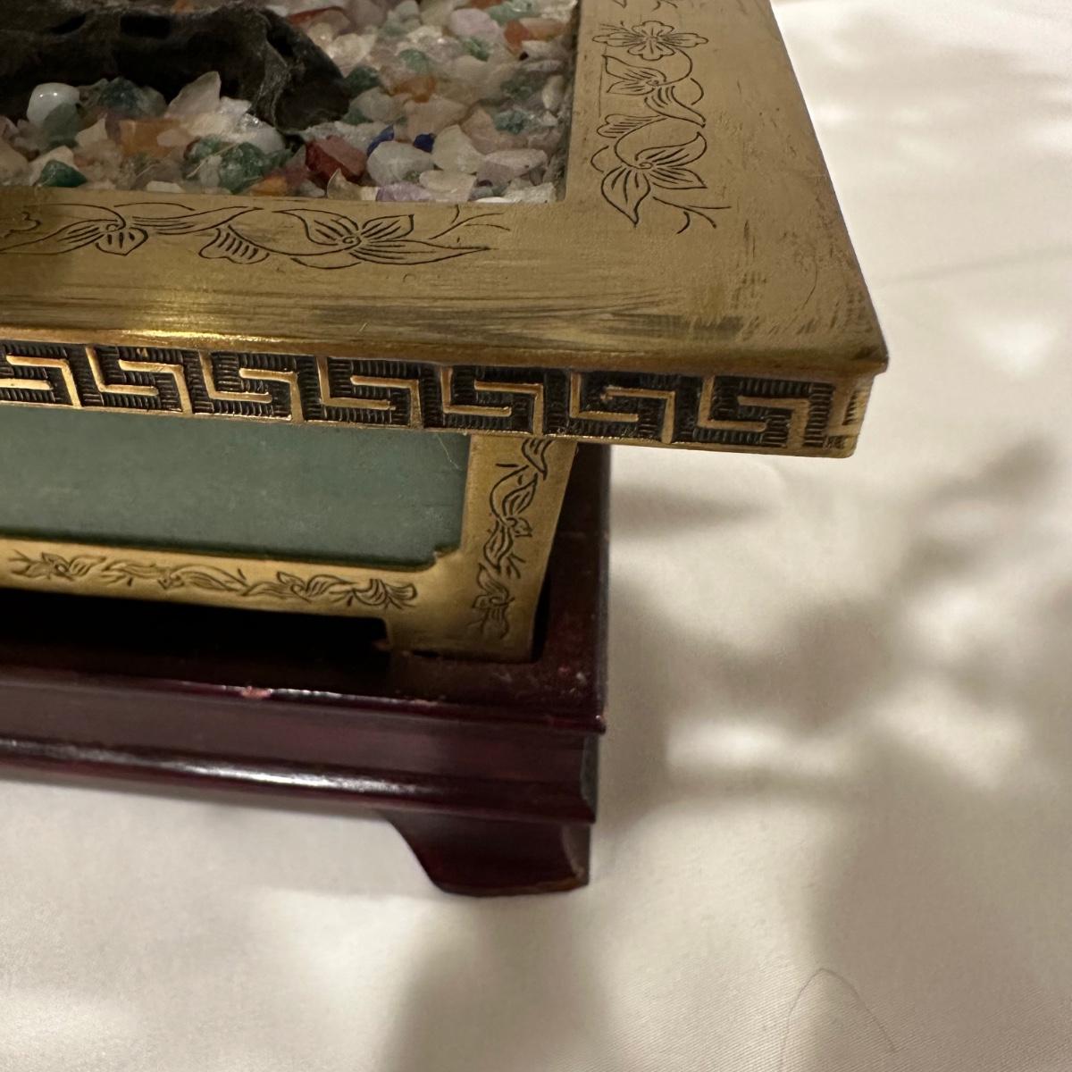 Decorative bonsai trees appear to be made of glass. The large bonsai measures 18” x 12” x 14”H including wooden stand. The smaller bonsai measures 9” x 6” x 10”H and does not include a wooden stand. Shipping available.