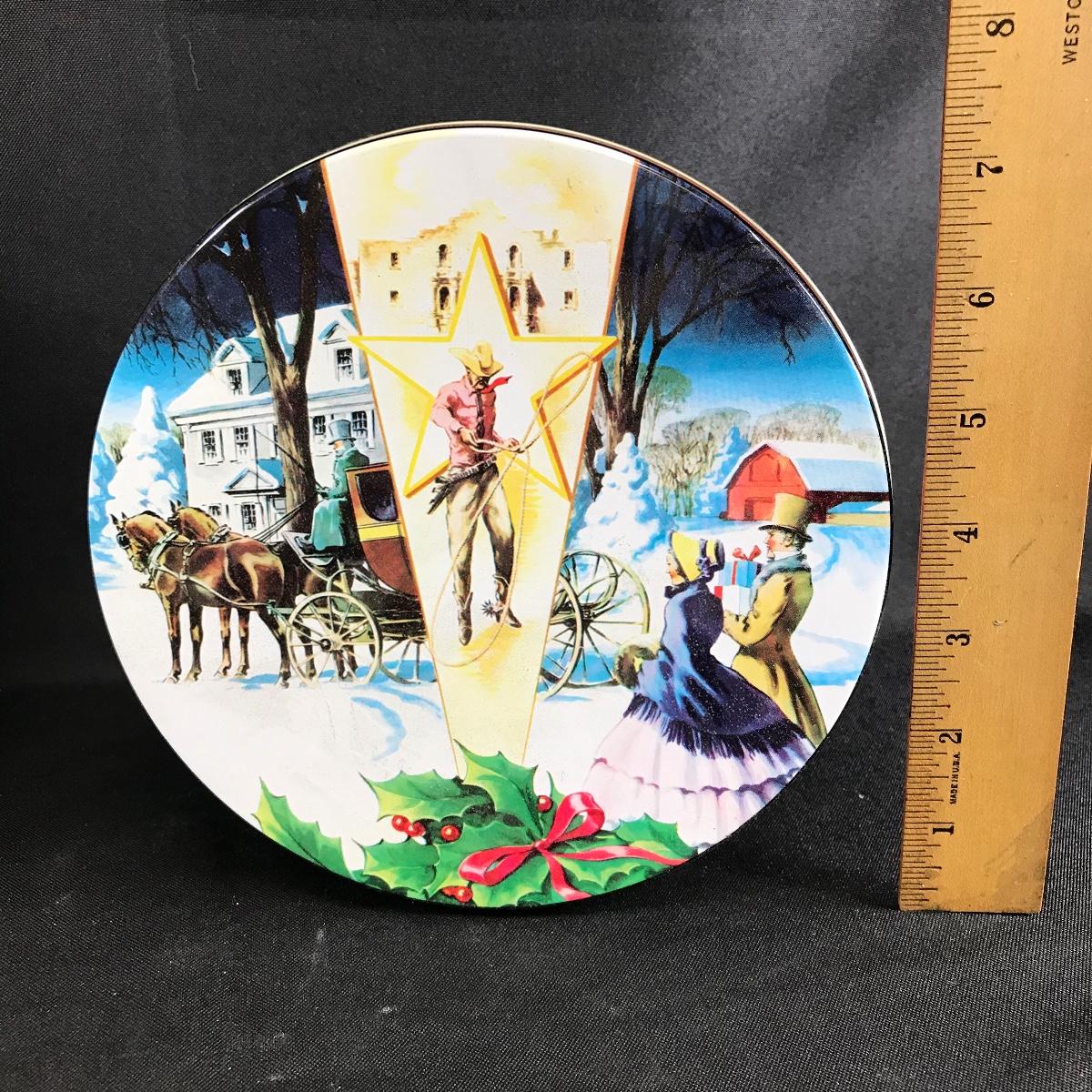 Up for auction are 2 decorative holiday tins. One cylindrical, and one round. See pictures.