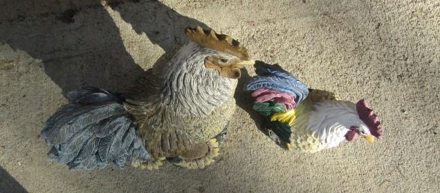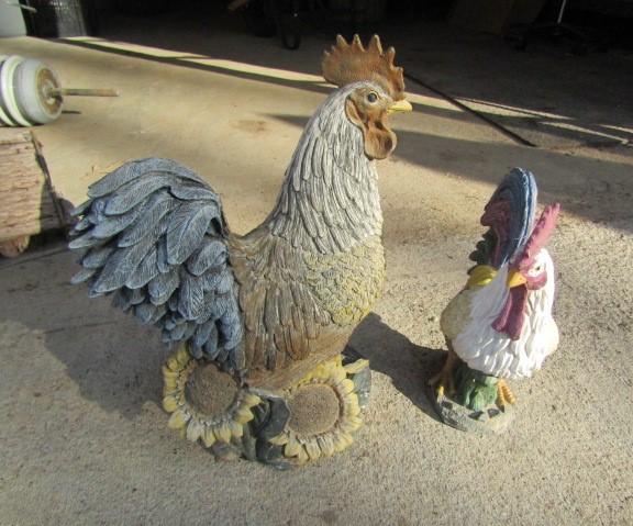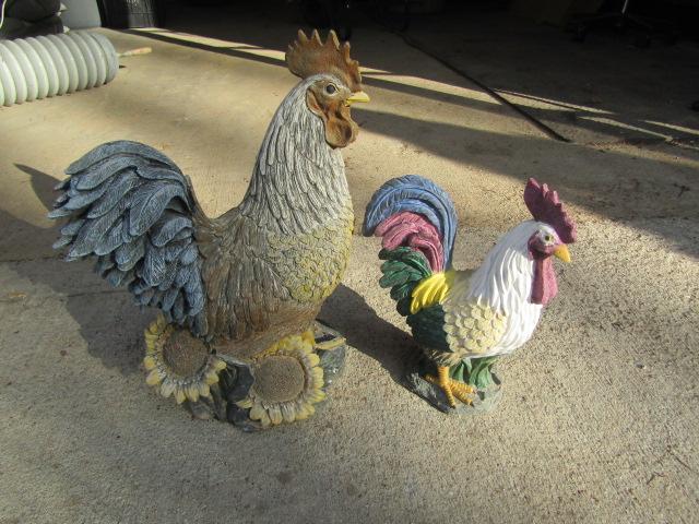 Two Decorative Resin Roosters