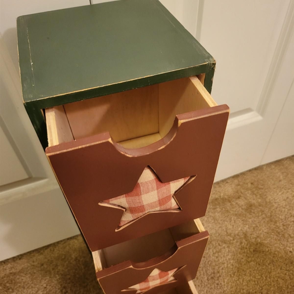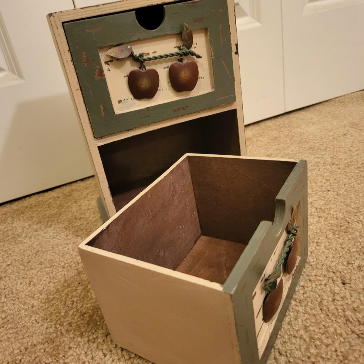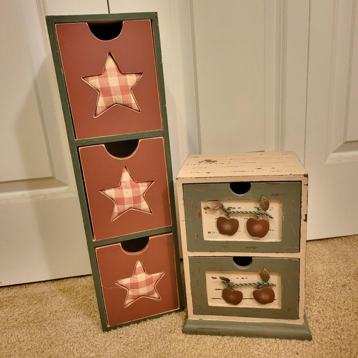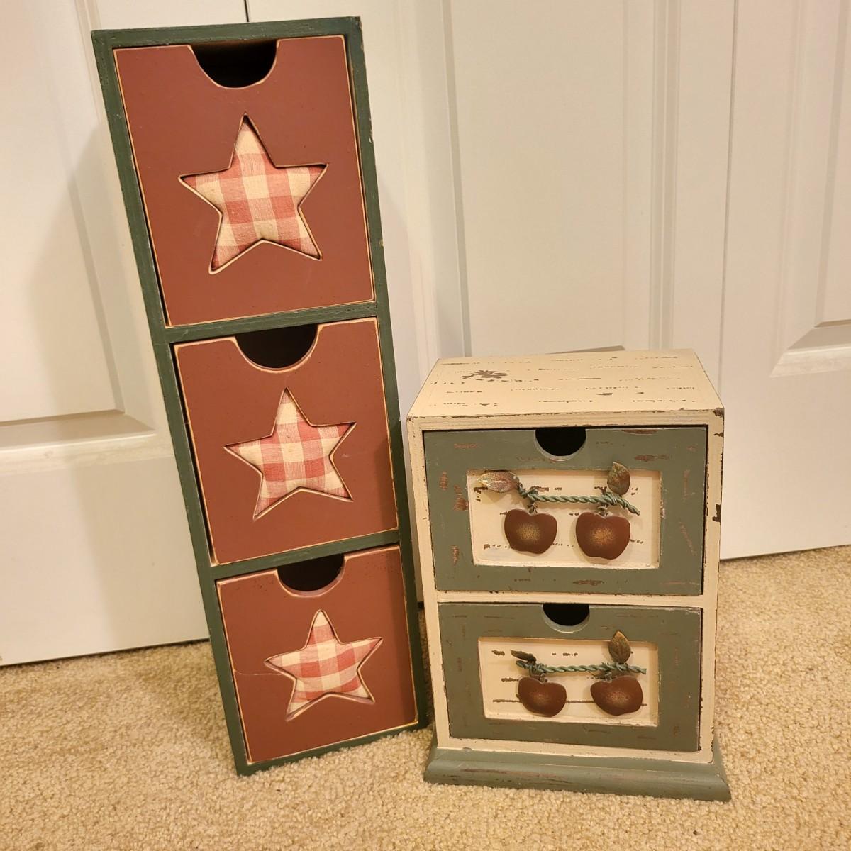 Two Decorative Wood Drawer Storage Boxes