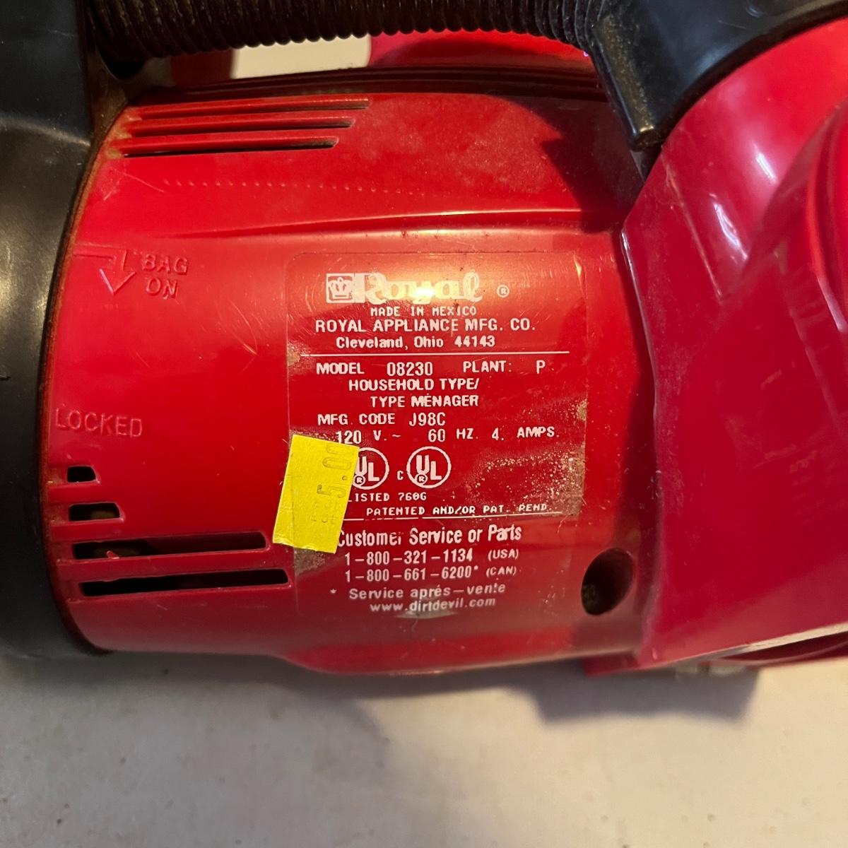 Lot includes two Dirt Devil handheld vacuums. Both vacuums powered on when plugged in. Largest vacuum measures 14” x 6.5” x 9”H.