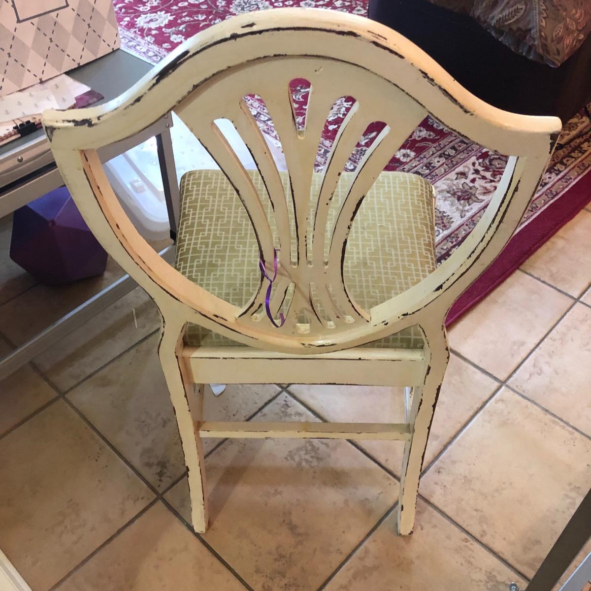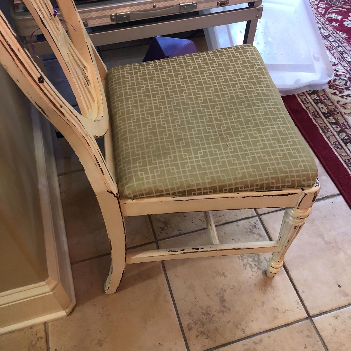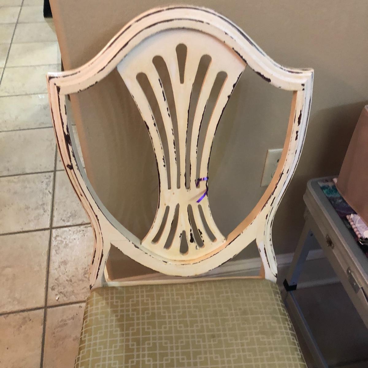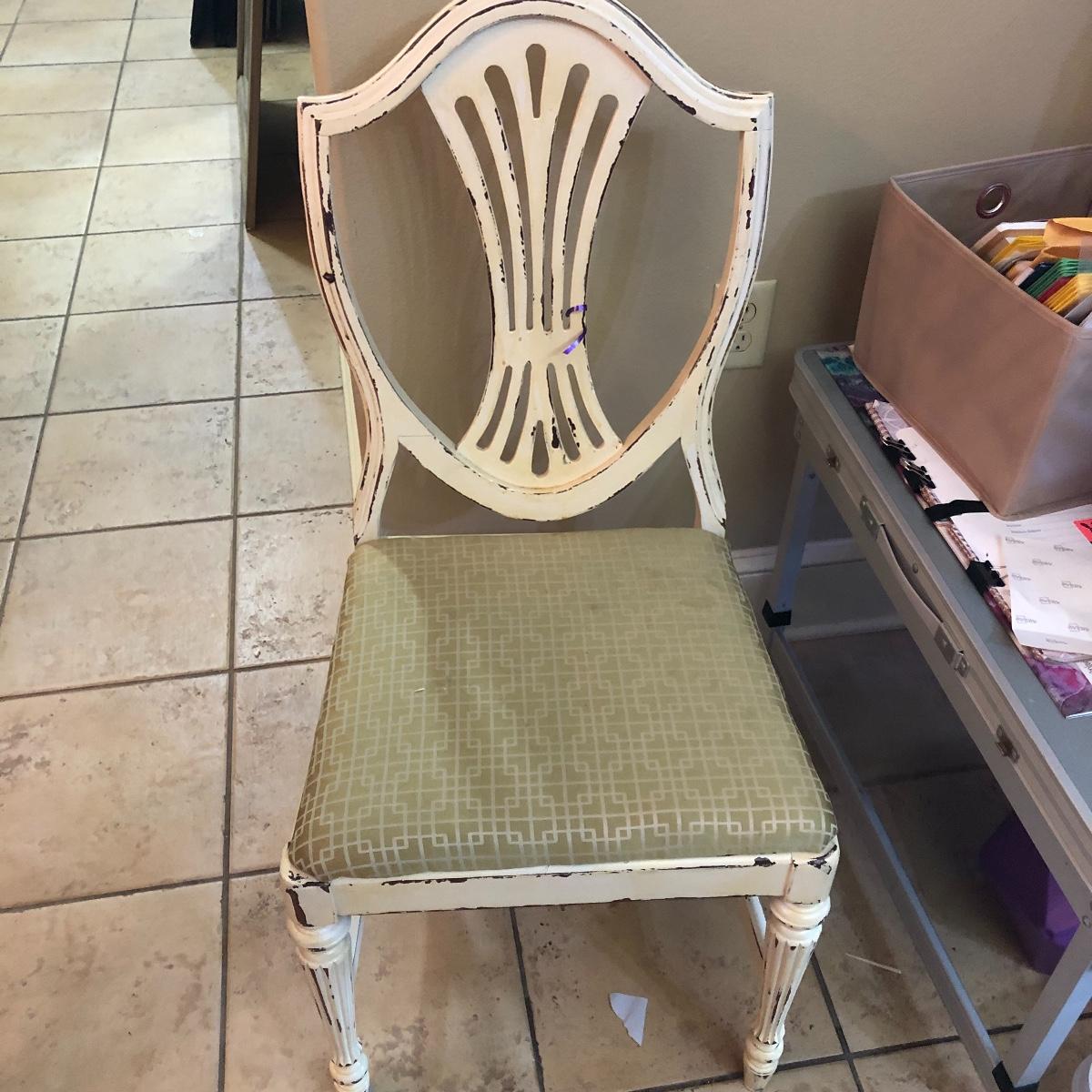 These two chairs were bought recently with the distressed look. The seat is 19” wide and seat is 19” off ground.