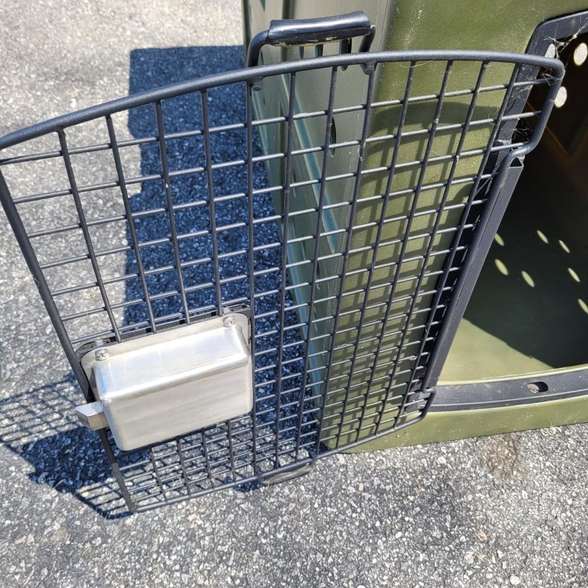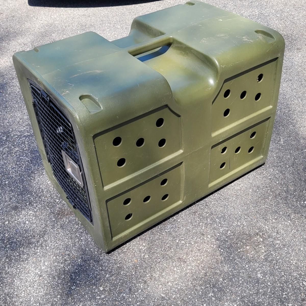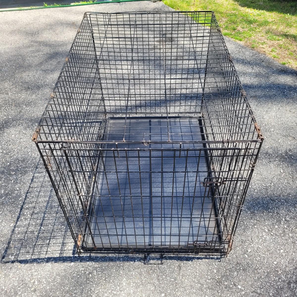 This lot has two dog Kennels. The first is a Dakota 283 G3 Framed Door Dog Kennel designed for pet protection and the second is a generic metal wire kennel. The Dakota brand is made in one solid piece for strength and security and features a stainless-steel door with a secure, lockable paddle latch. Key not included. Metal wire kennel features two locking latches and a removable plastic base for easy cleaning; this kennel shows rust. Green kennel measures 24" x 35" x 27"H. Black wire kennel measures 28" x 42" x 31"H.