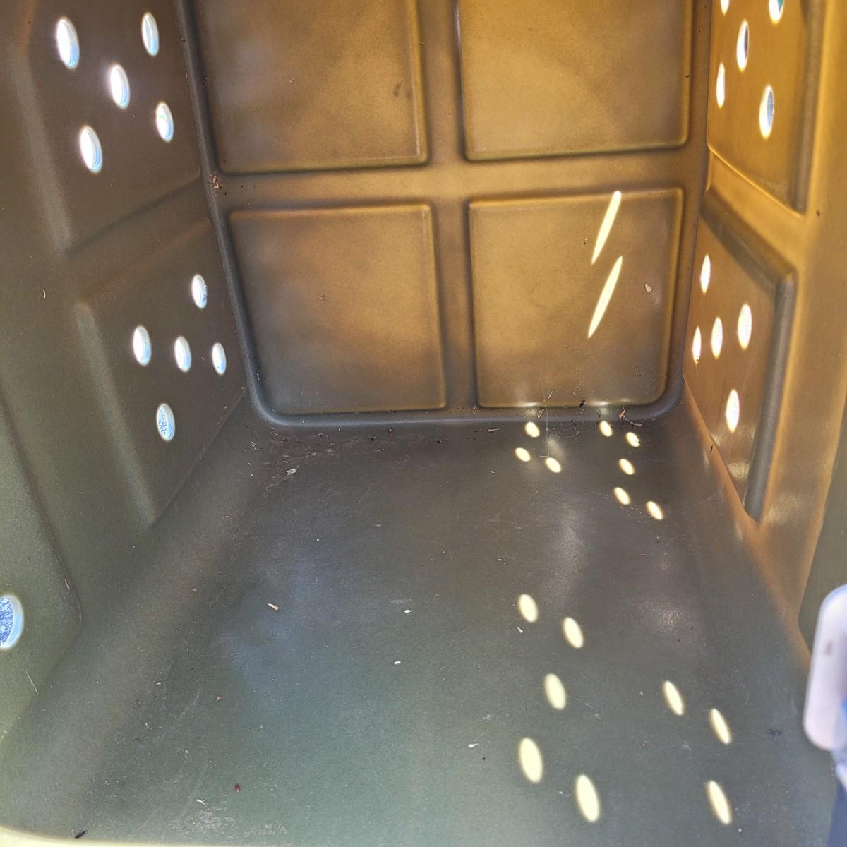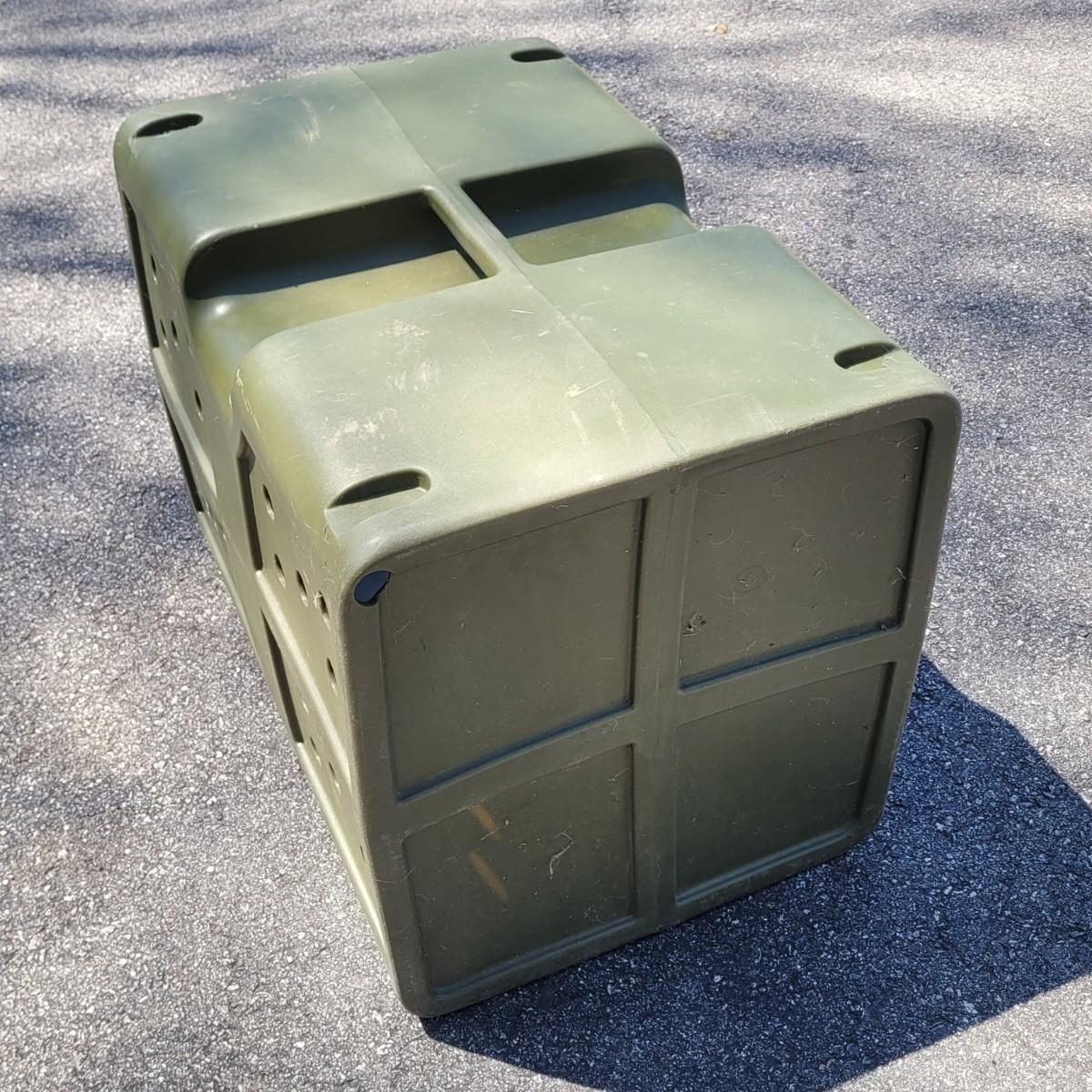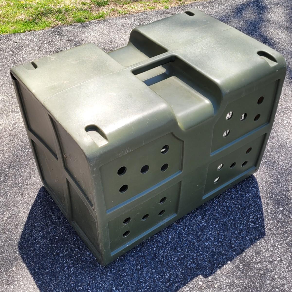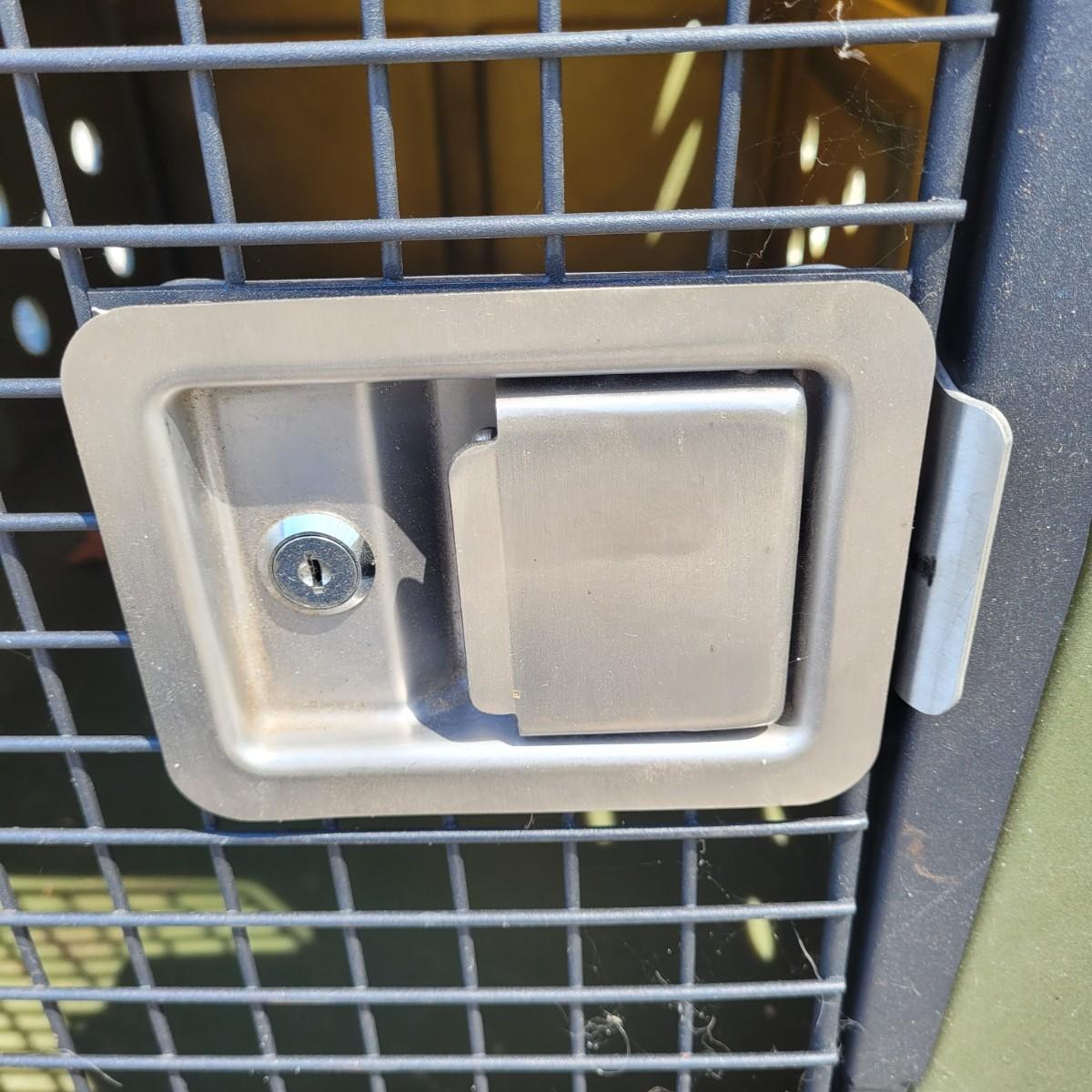 This lot has two dog Kennels. The first is a Dakota 283 G3 Framed Door Dog Kennel designed for pet protection and the second is a generic metal wire kennel. The Dakota brand is made in one solid piece for strength and security and features a stainless-steel door with a secure, lockable paddle latch. Key not included. Metal wire kennel features two locking latches and a removable plastic base for easy cleaning; this kennel shows rust. Green kennel measures 24" x 35" x 27"H. Black wire kennel measures 28" x 42" x 31"H.